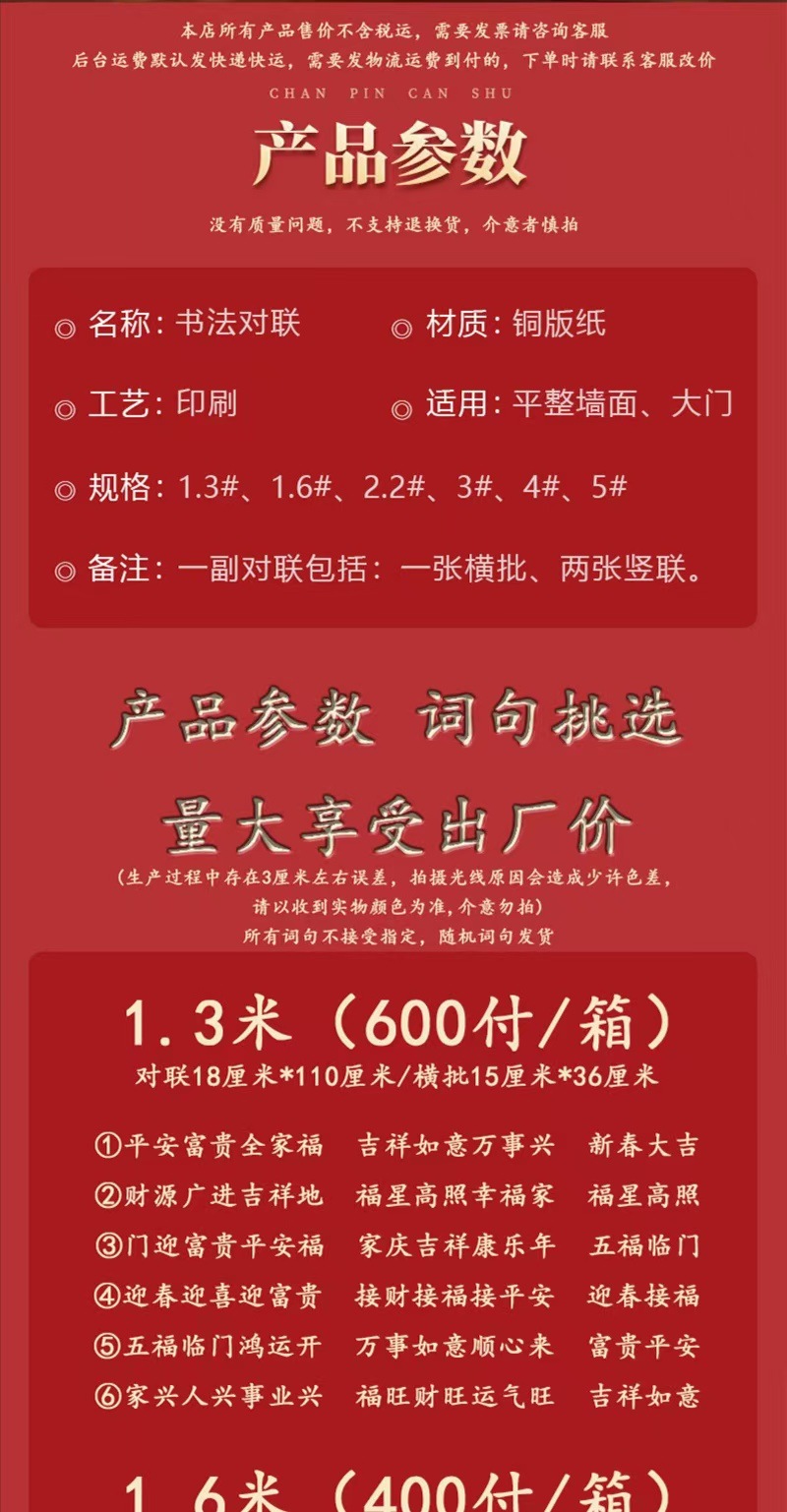 盒装带背胶2026新款书法对联农村大门红纸黑字春联年货批发代发