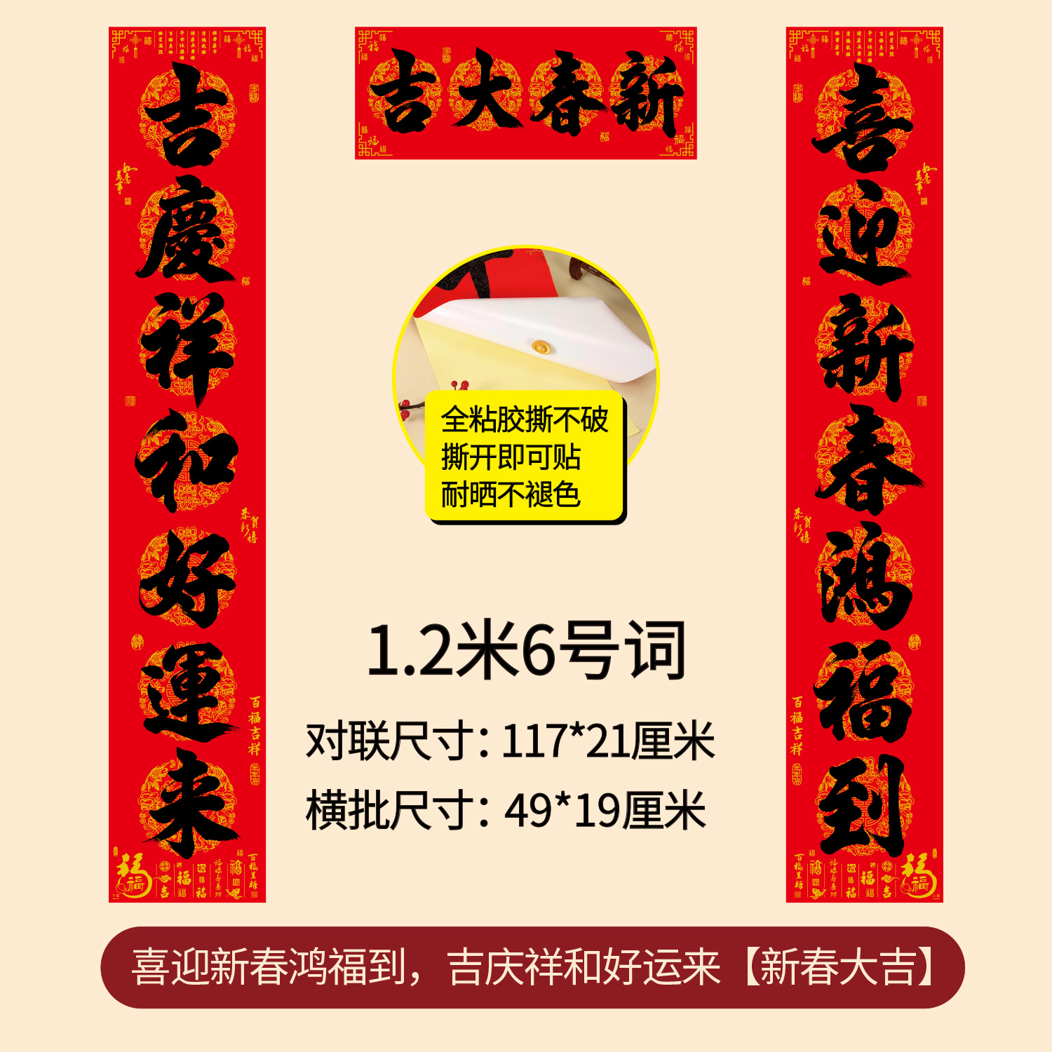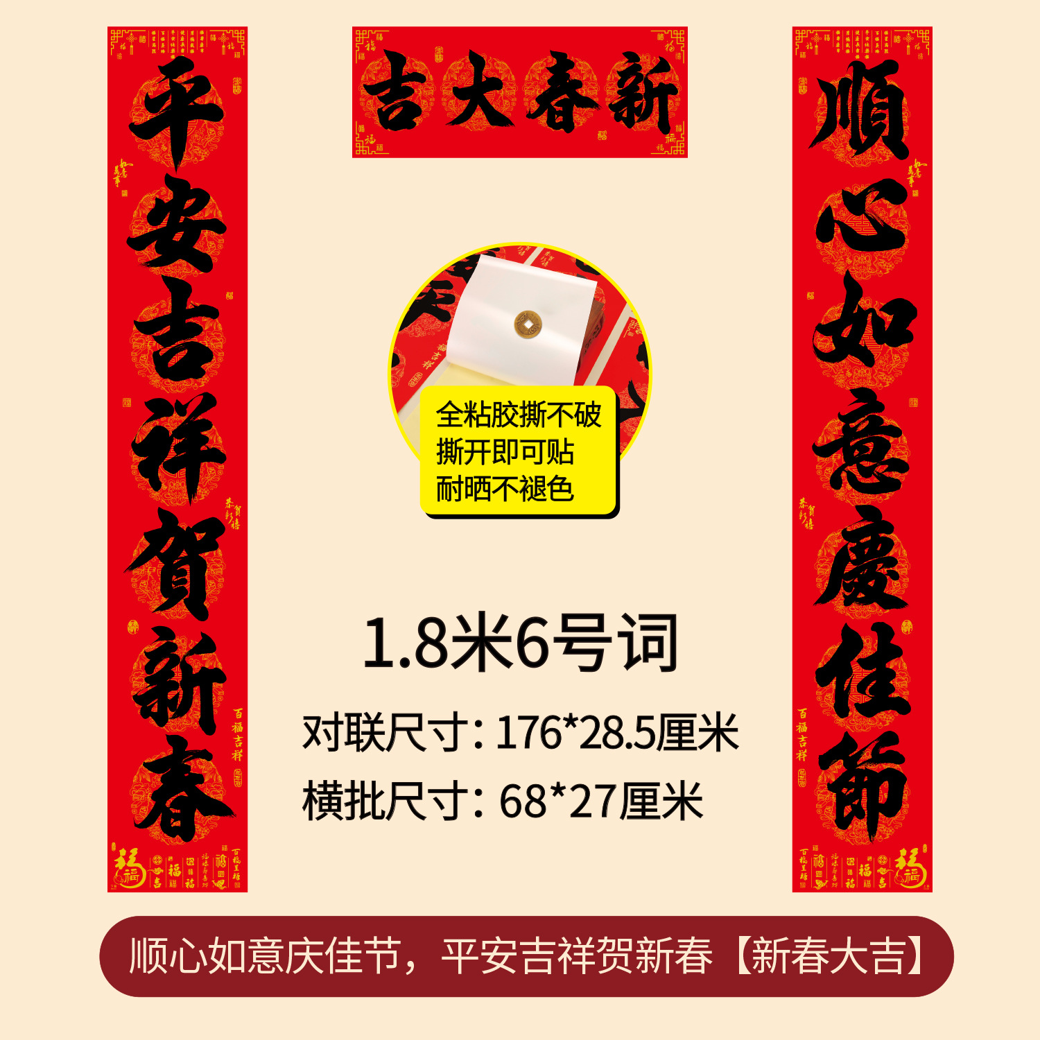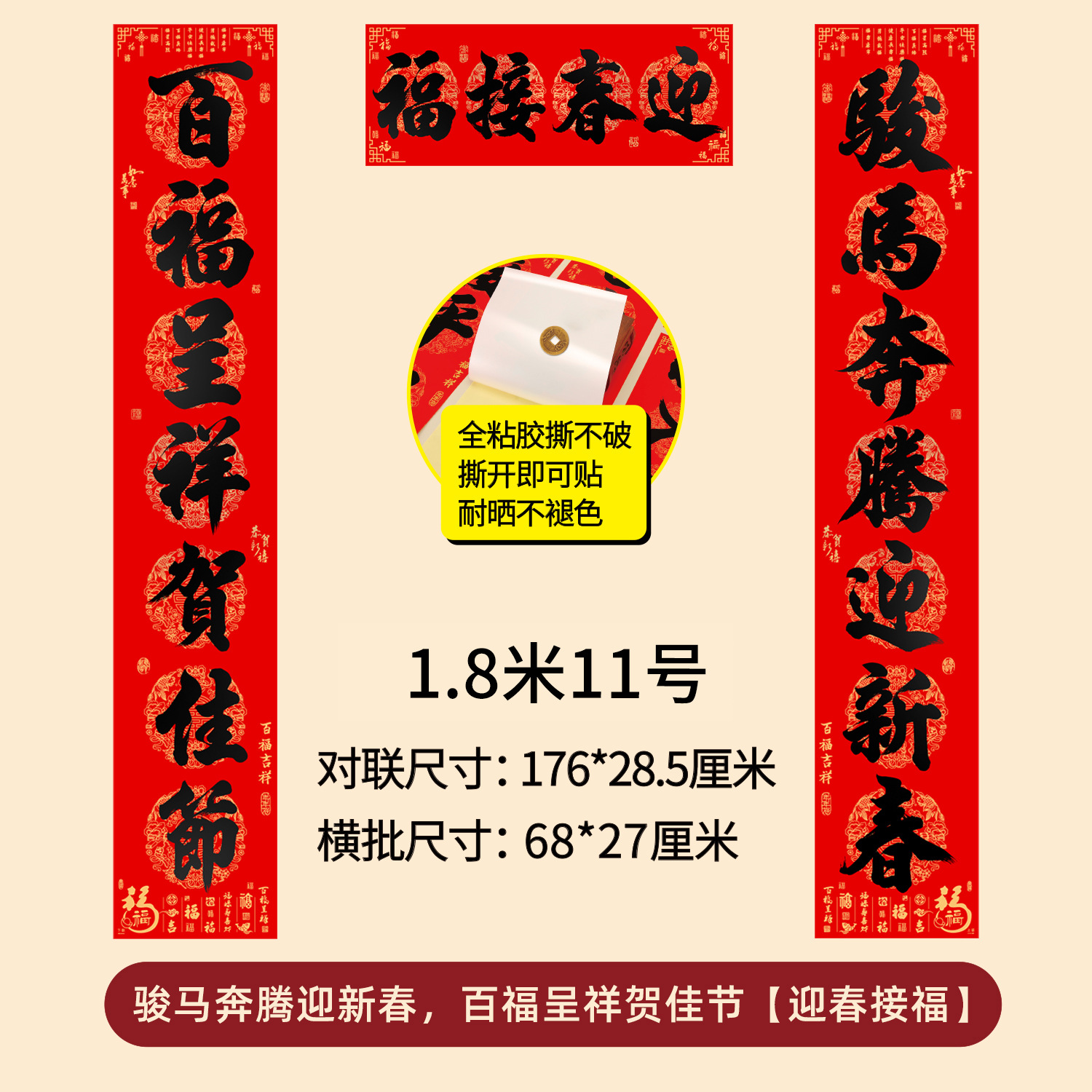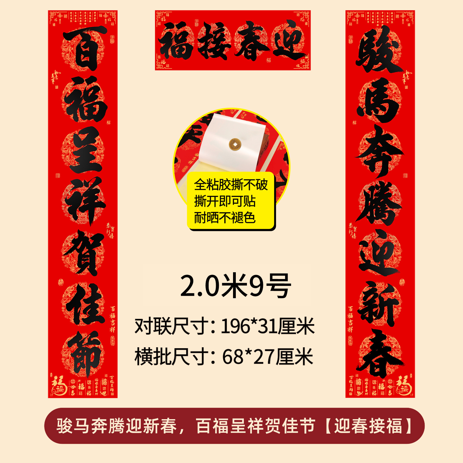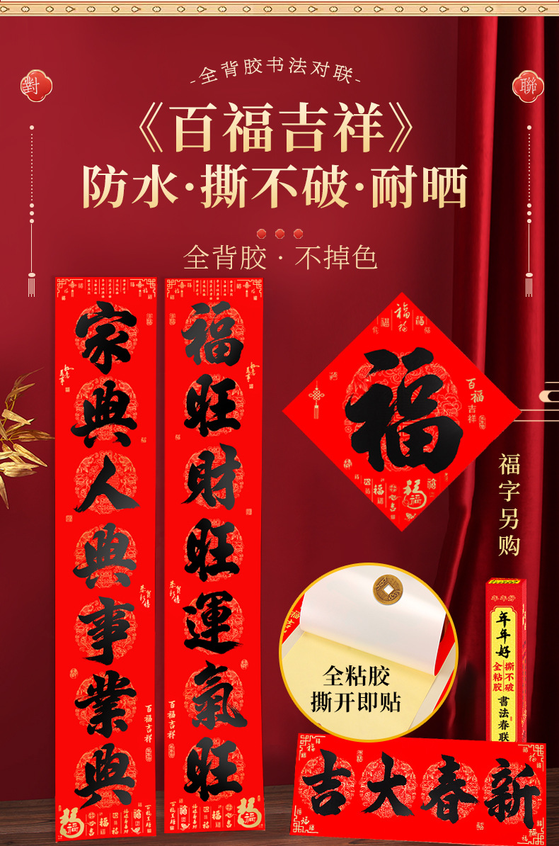 对联2026年年好自粘对联全背胶防水撕不破耐晒公司礼品春联批货