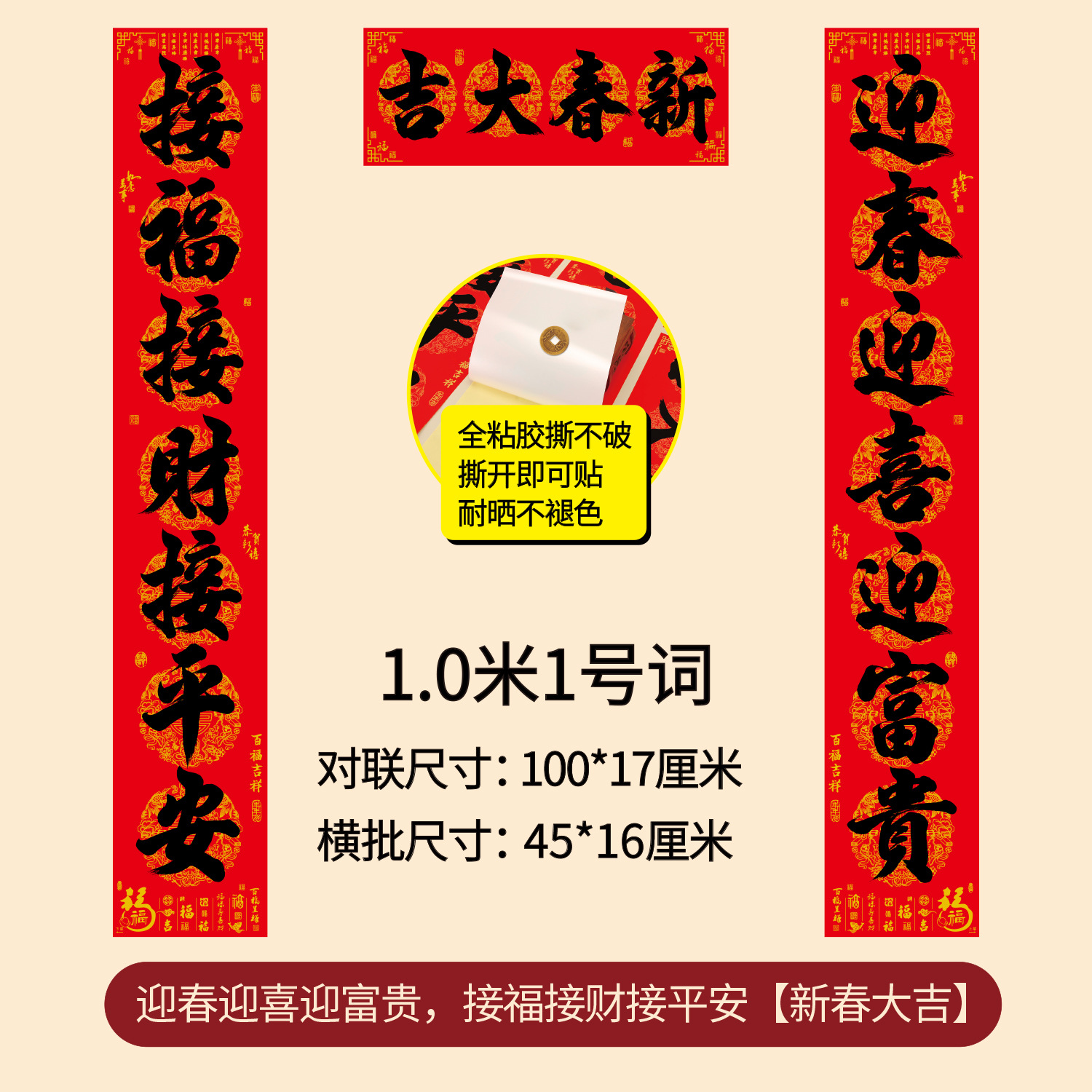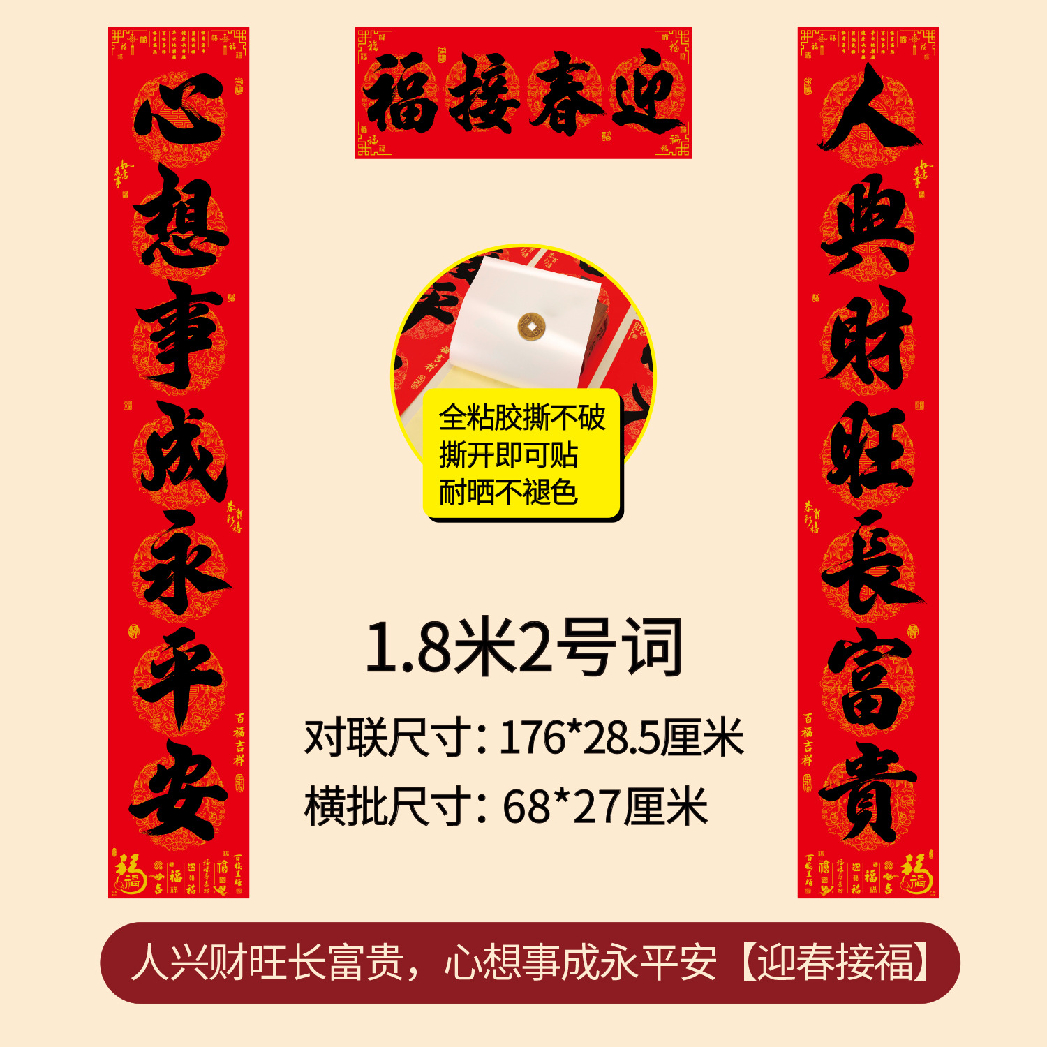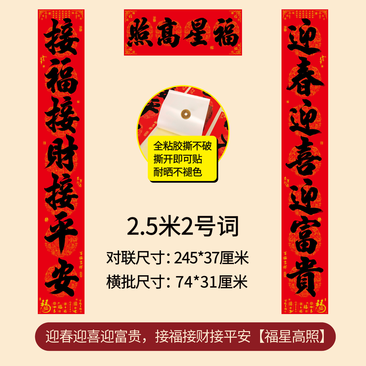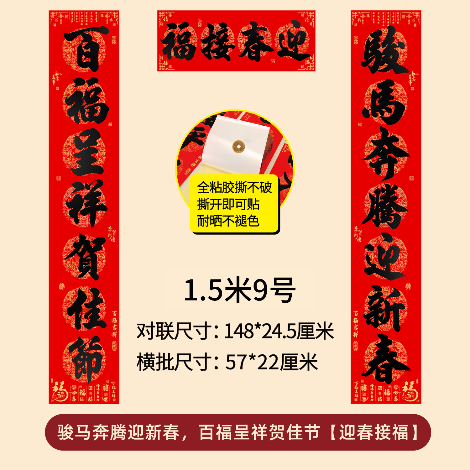 对联2026年年好自粘对联全背胶防水撕不破耐晒公司礼品春联批货