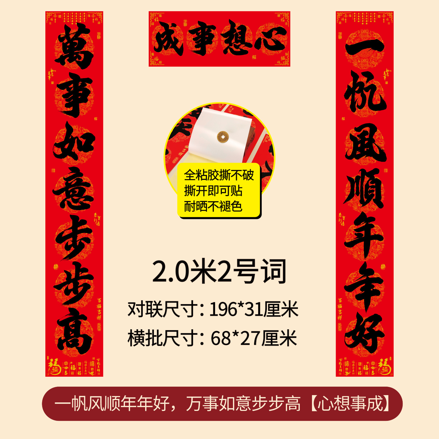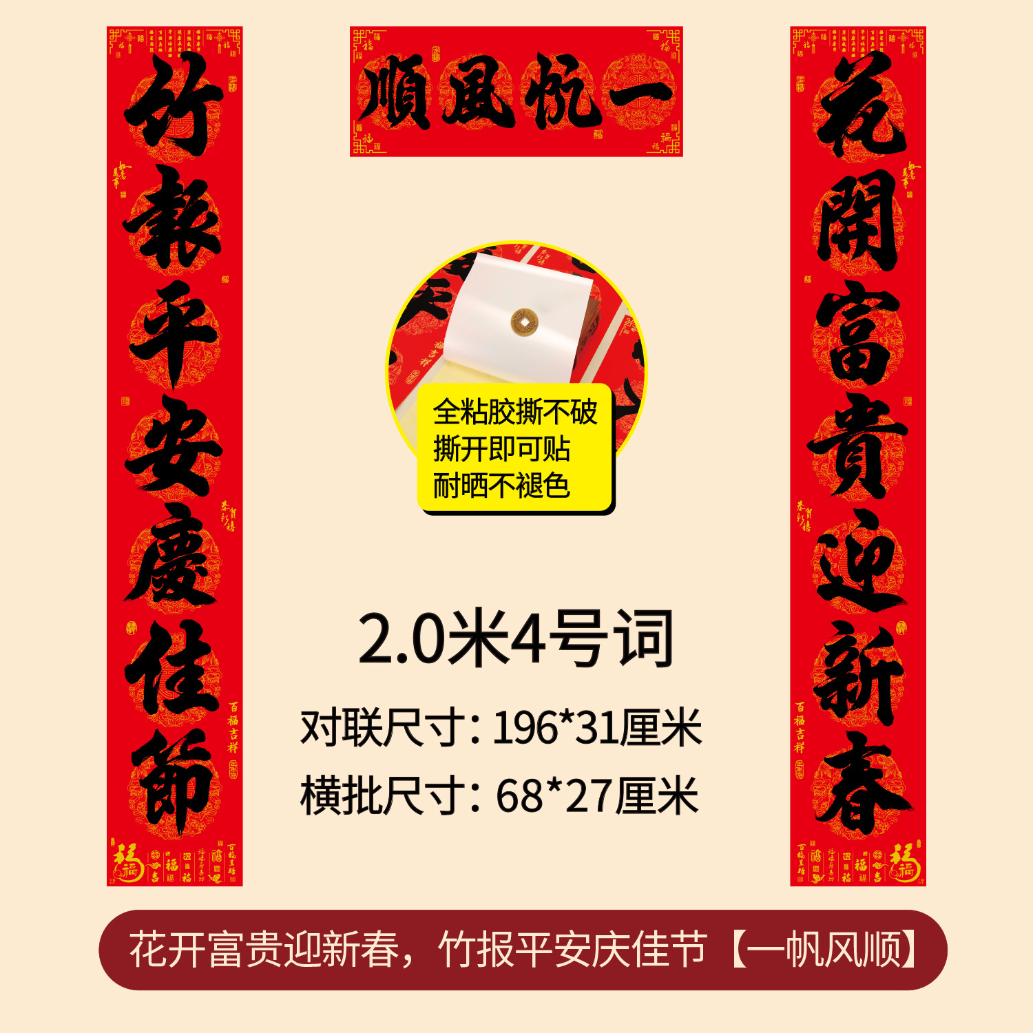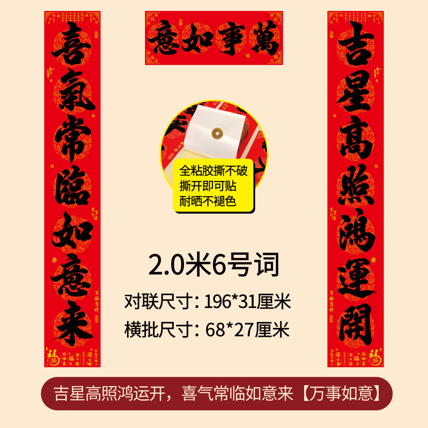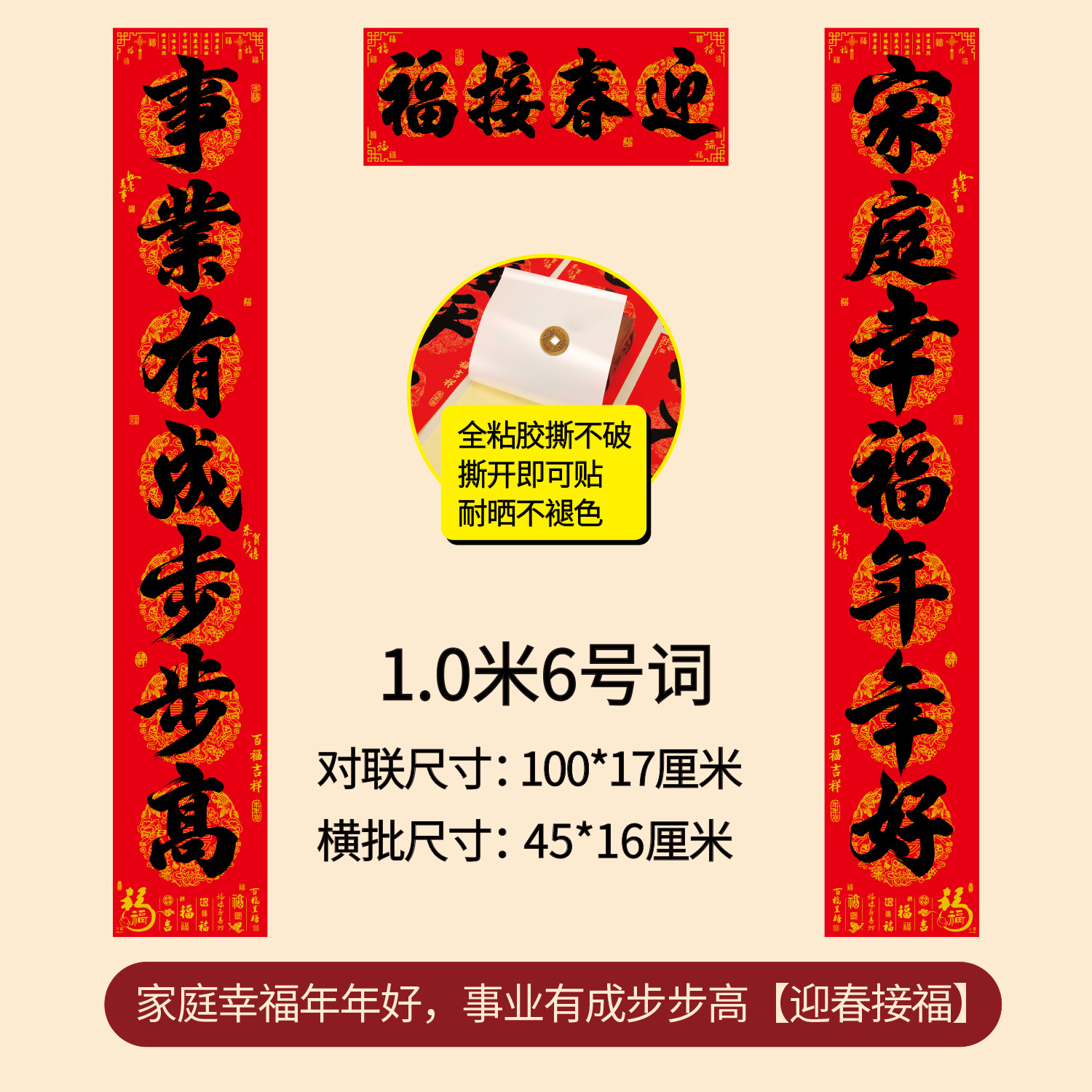 对联2026年年好自粘对联全背胶防水撕不破耐晒公司礼品春联批货