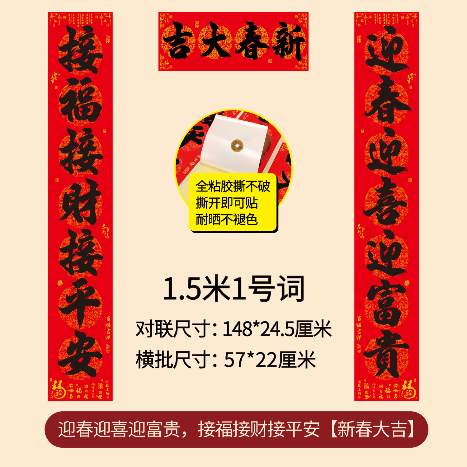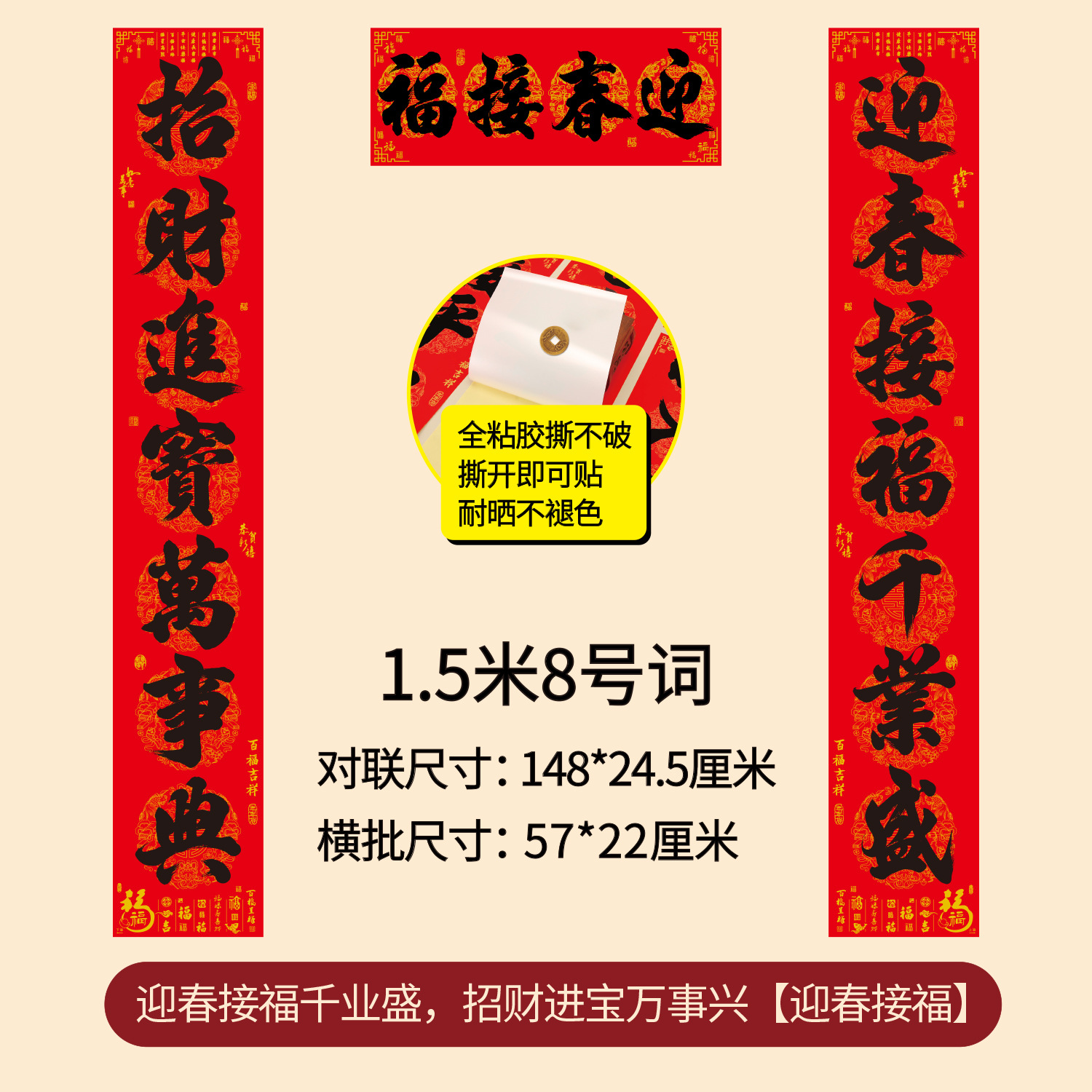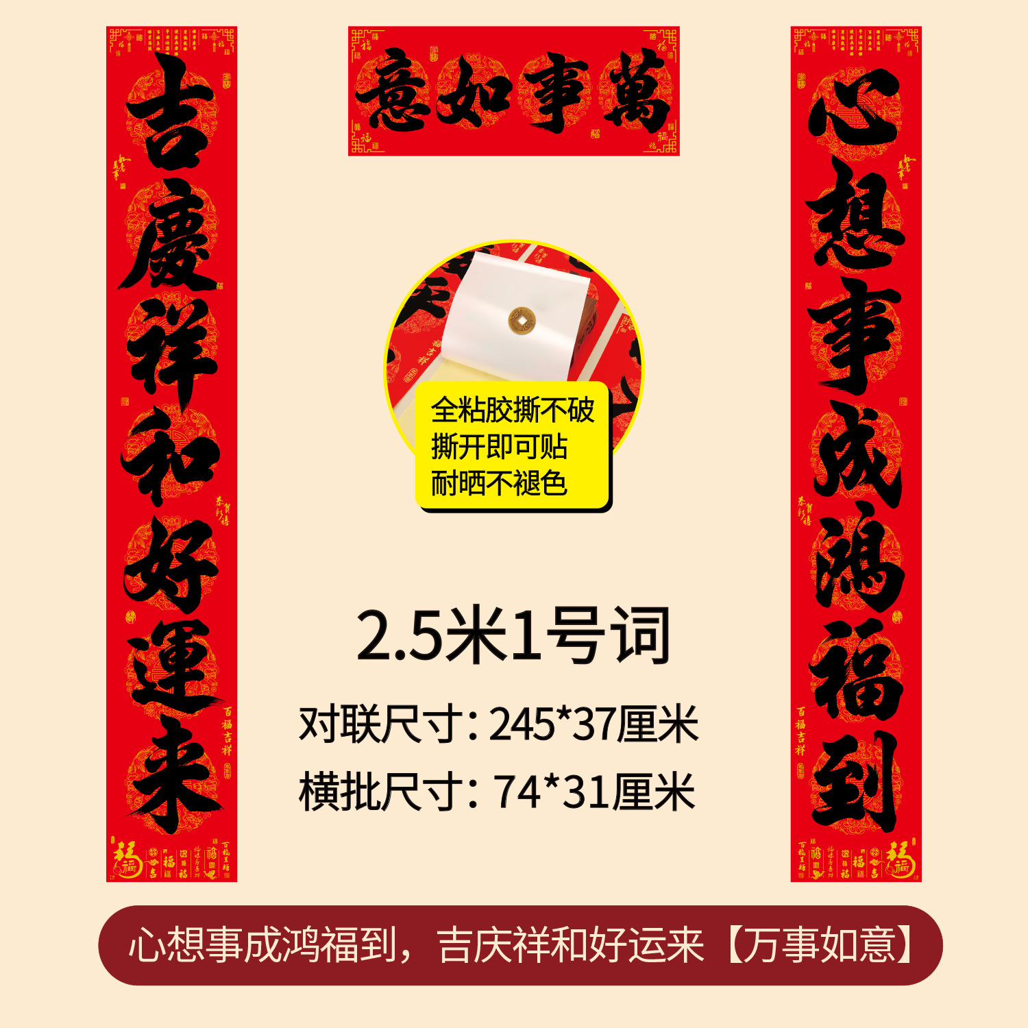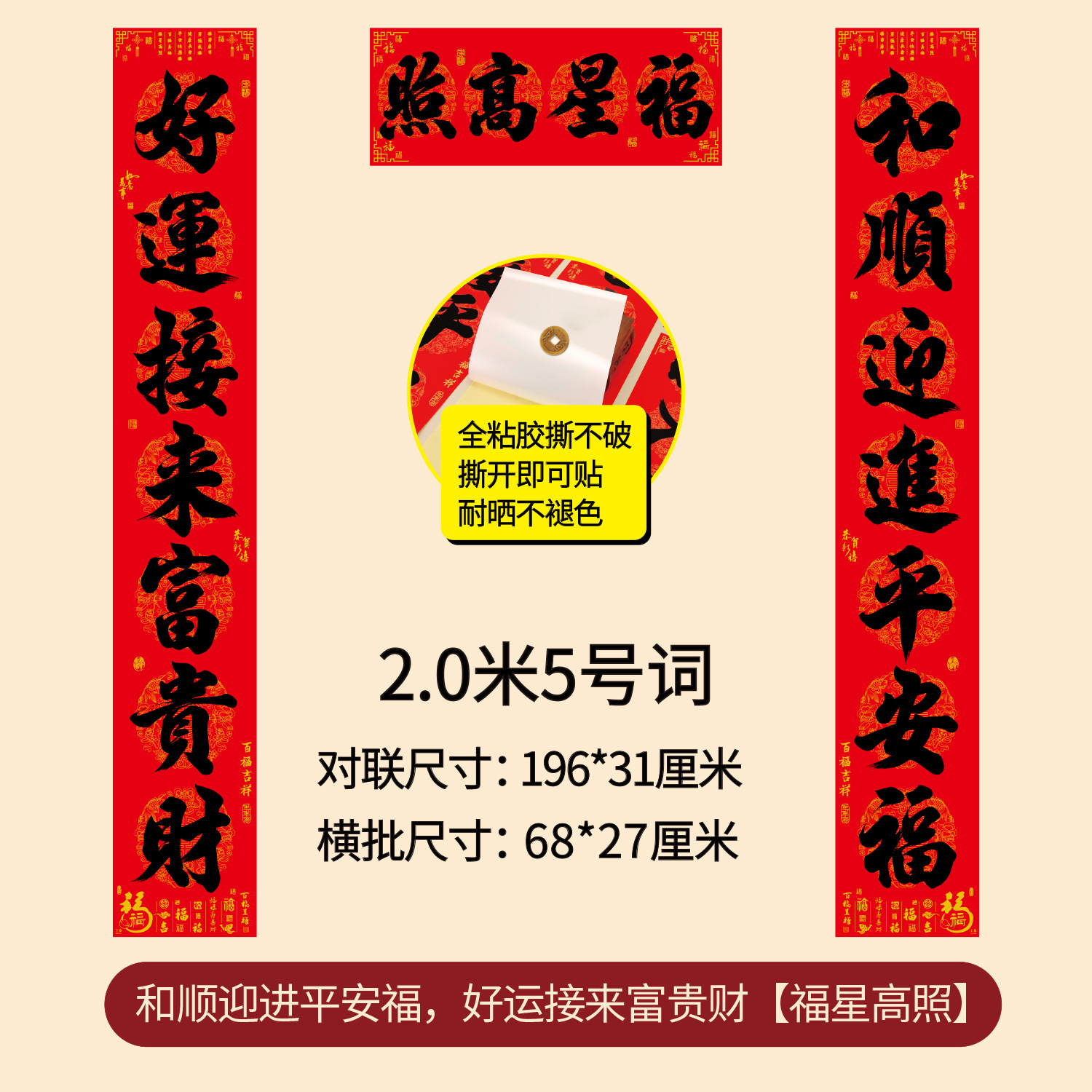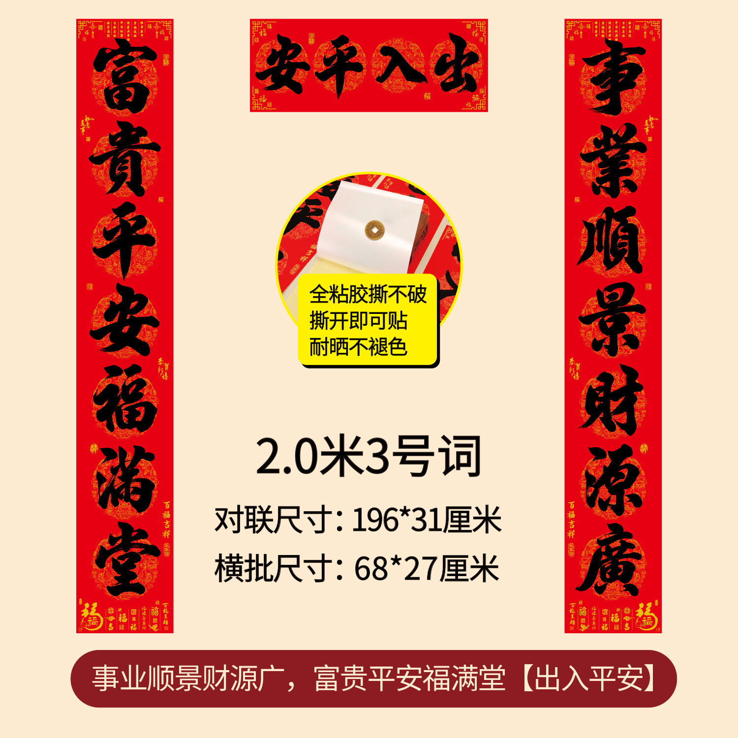 对联2026年年好自粘对联全背胶防水撕不破耐晒公司礼品春联批货