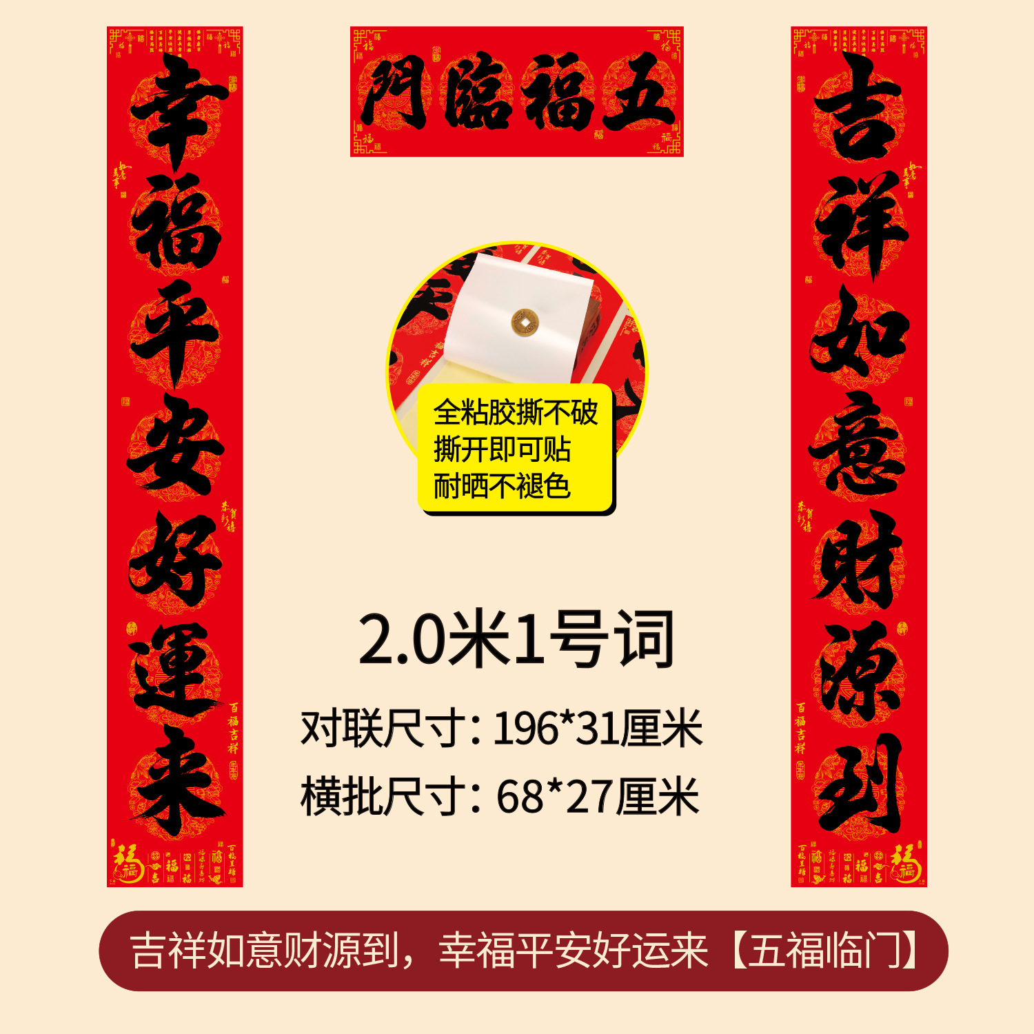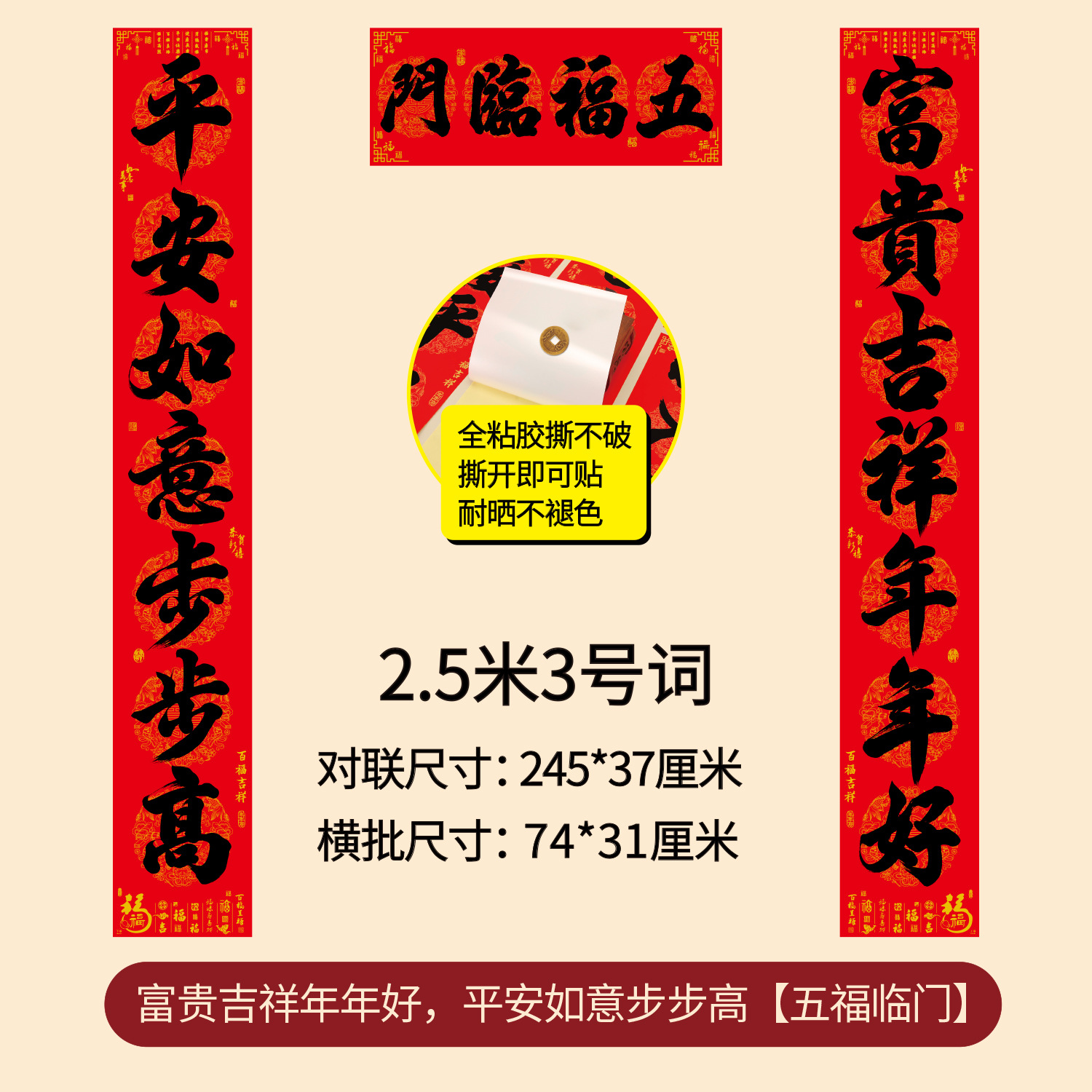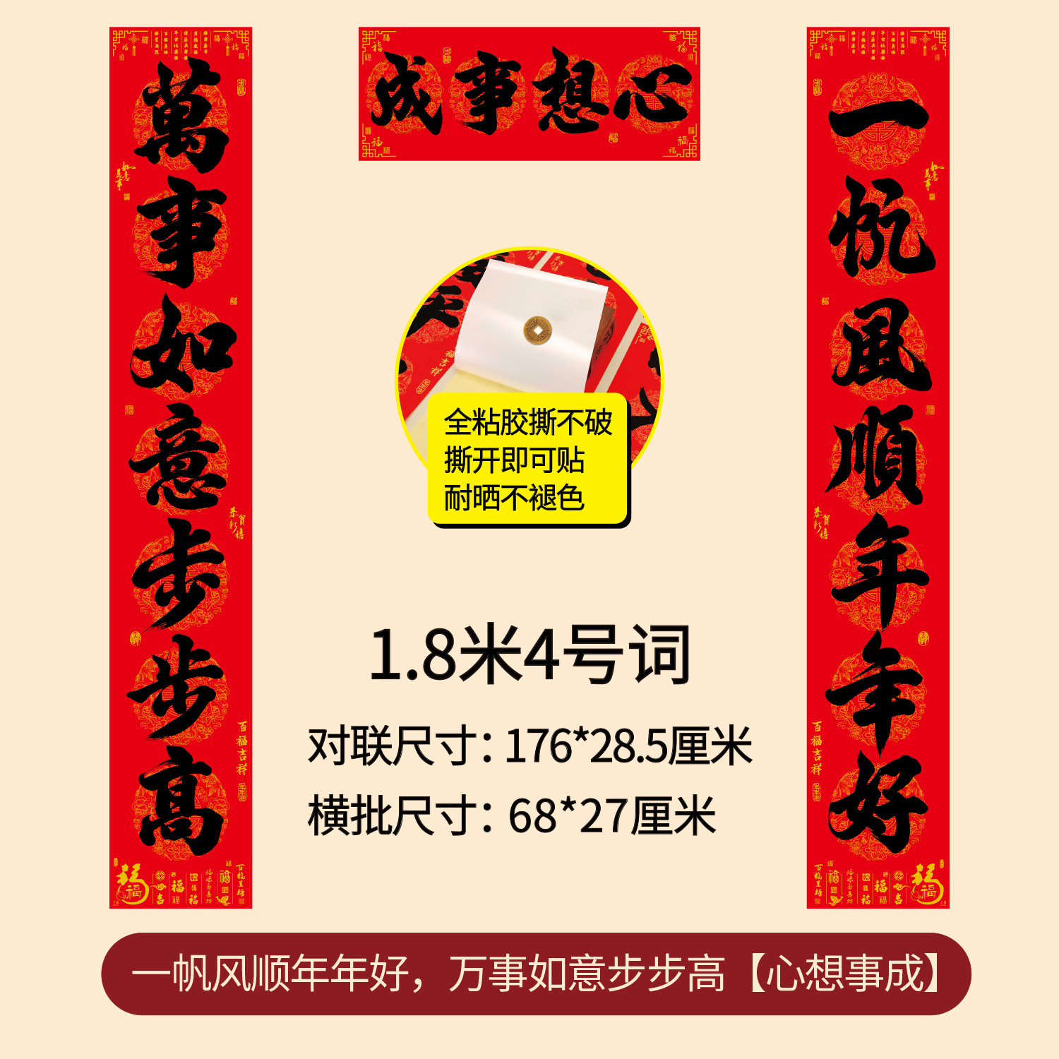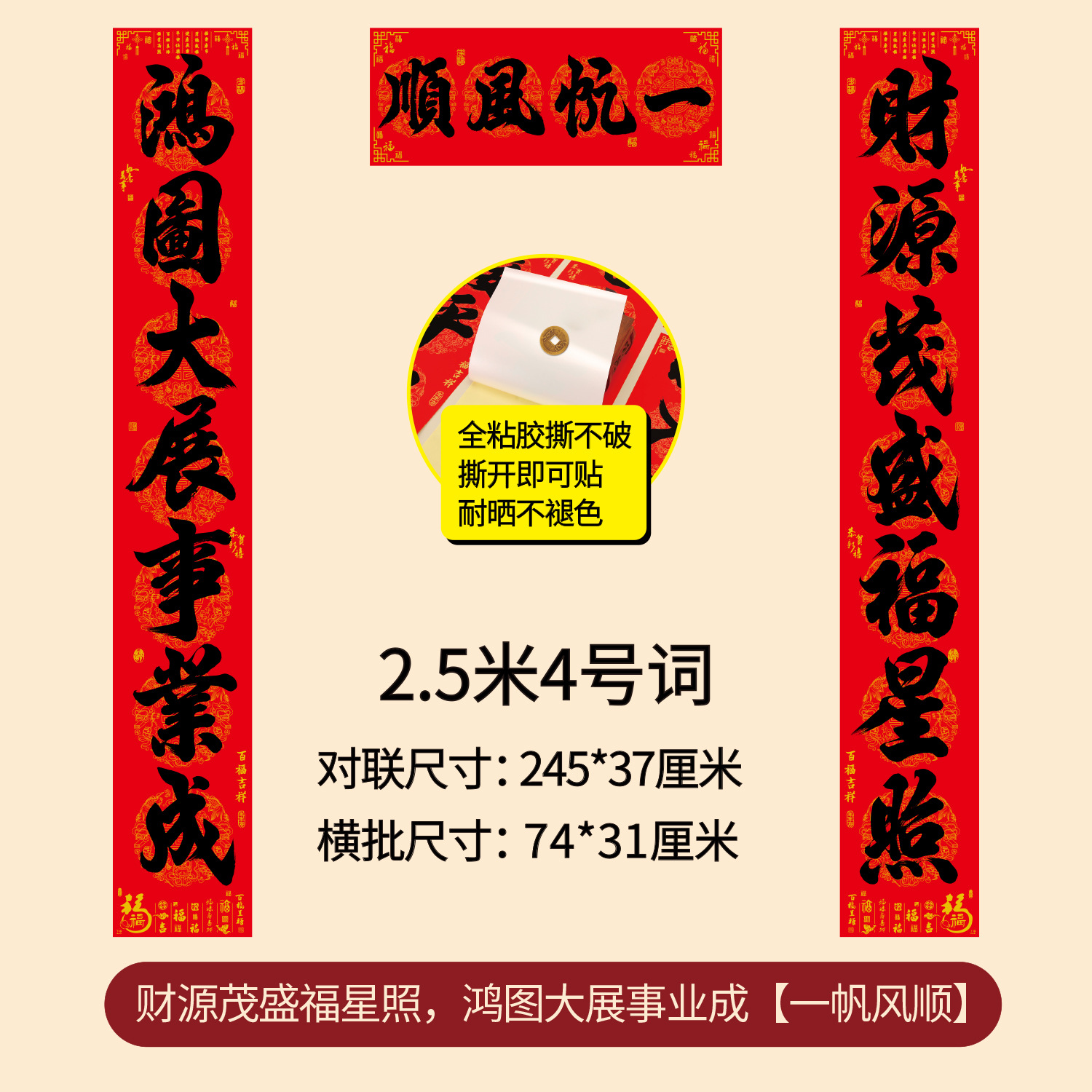 对联2026年年好自粘对联全背胶防水撕不破耐晒公司礼品春联批货
