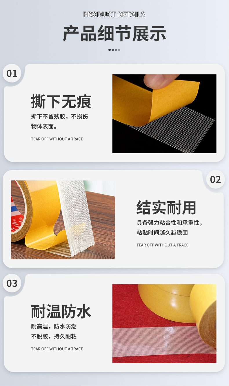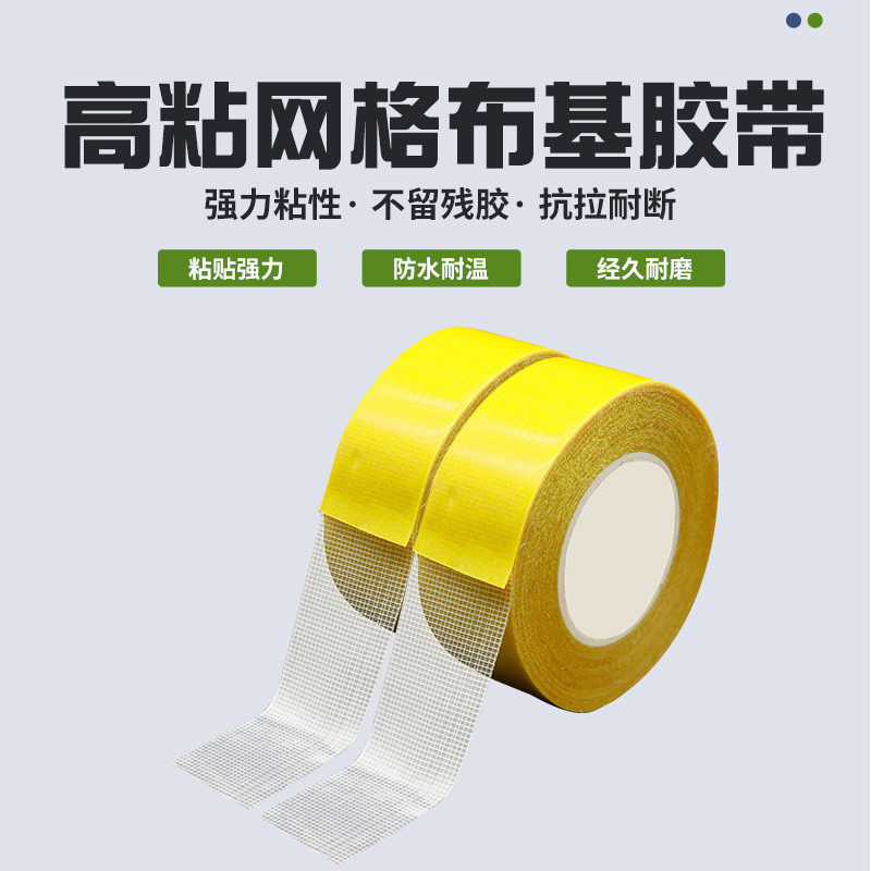 网格双面胶防水耐磨网格布基双面春联胶带网格纤维胶带无痕地毯胶