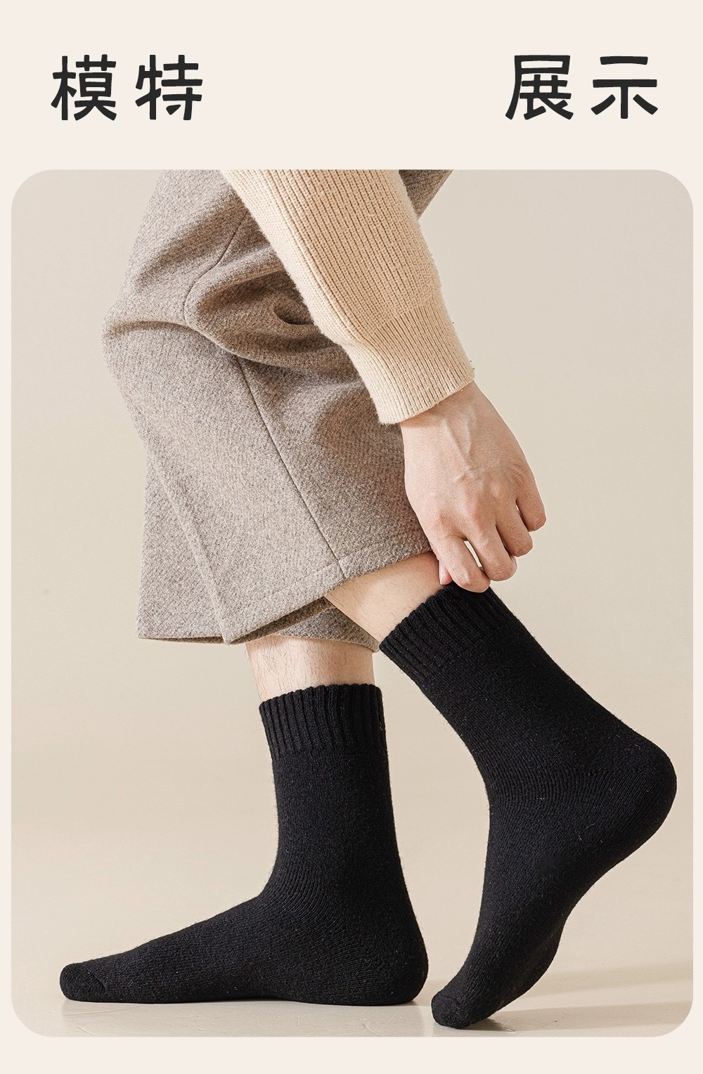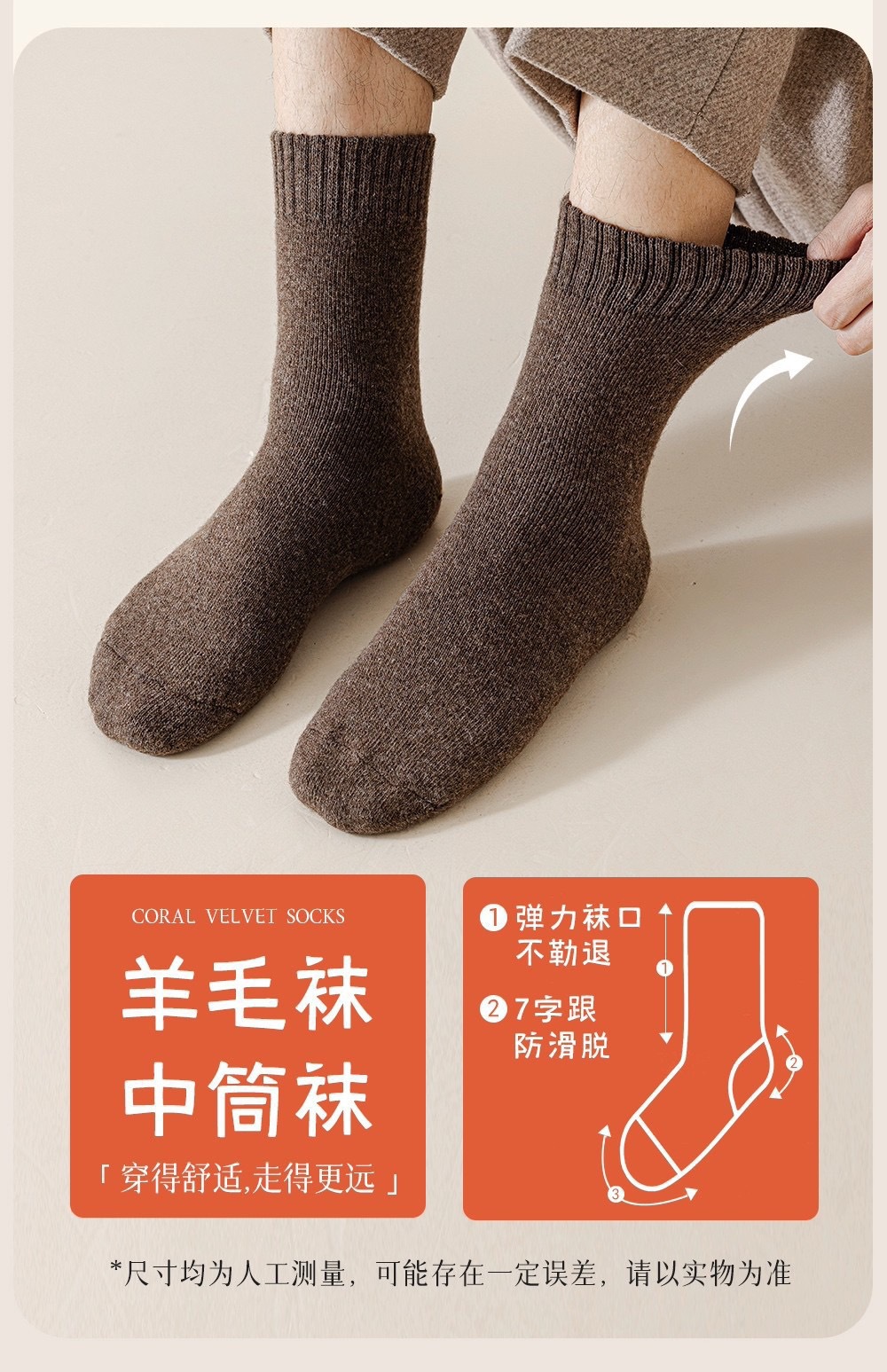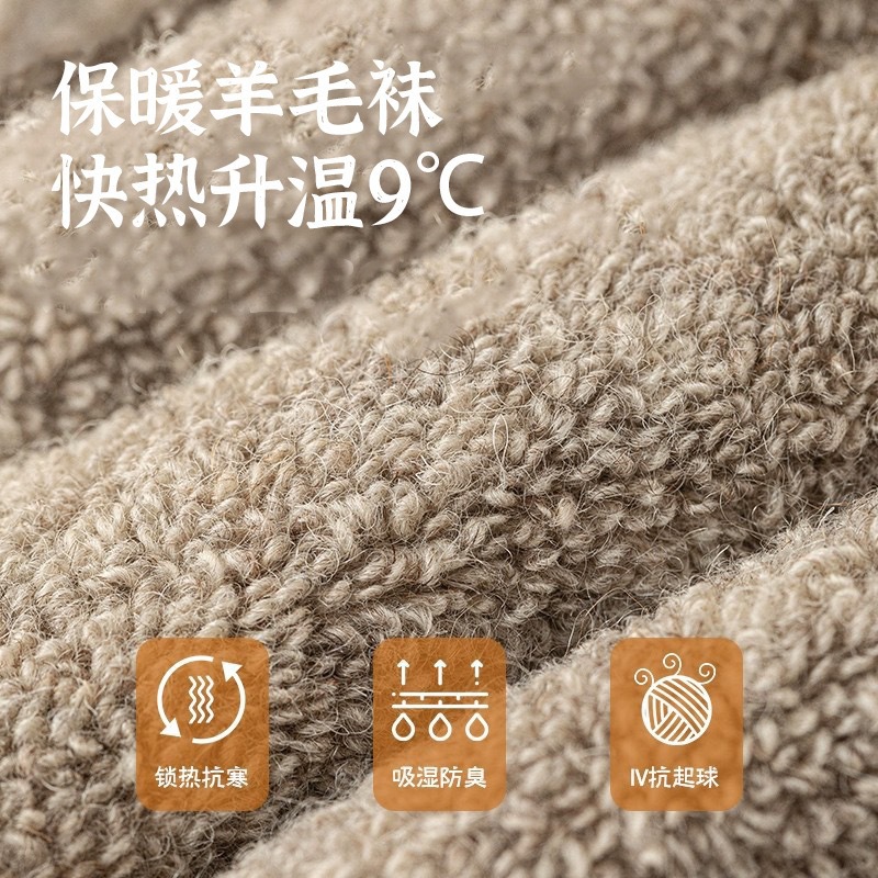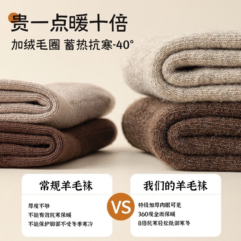 美利奴羊毛袜子男女秋冬季保暖男士中筒袜加绒加厚款东北羊绒长袜