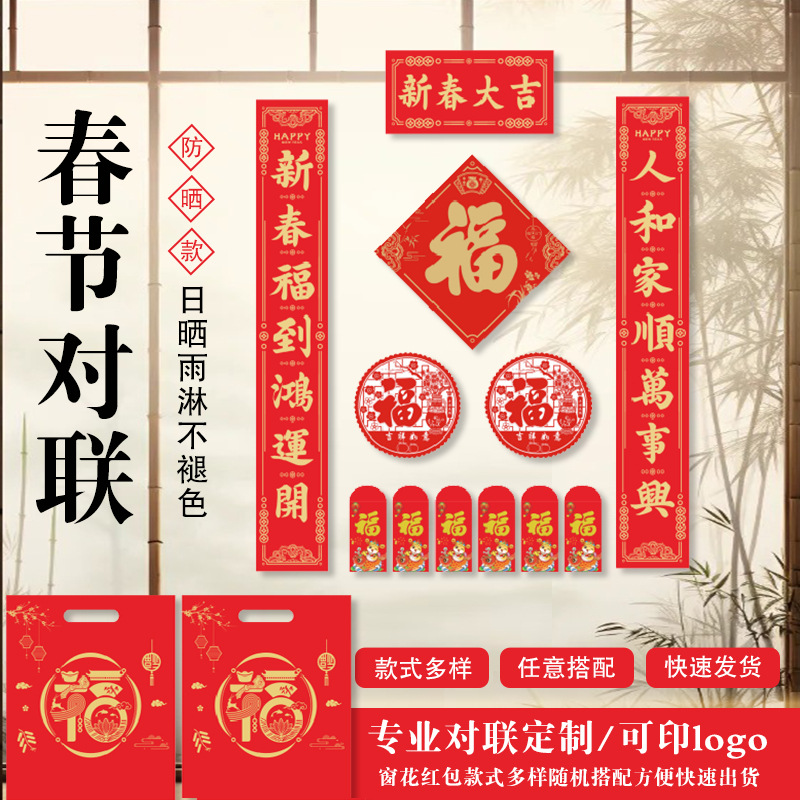 2026年春节烫金对联批发马年春联大礼包现货银行对联定制印logo