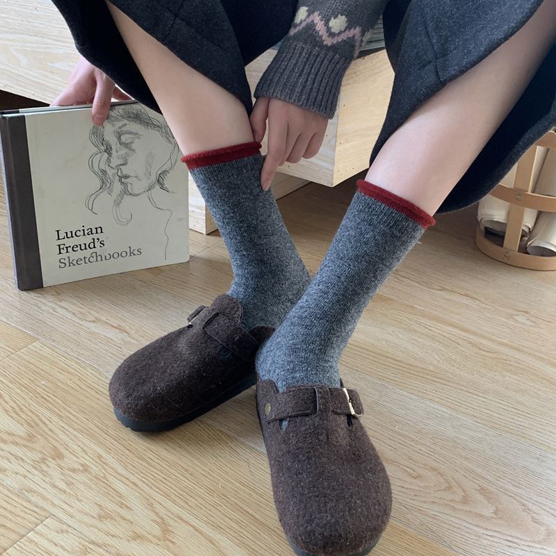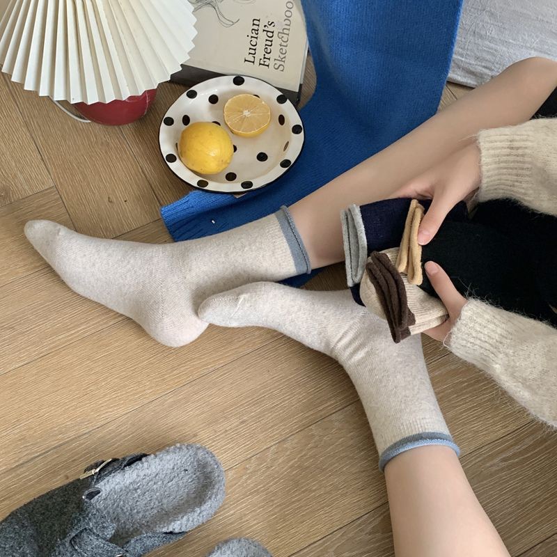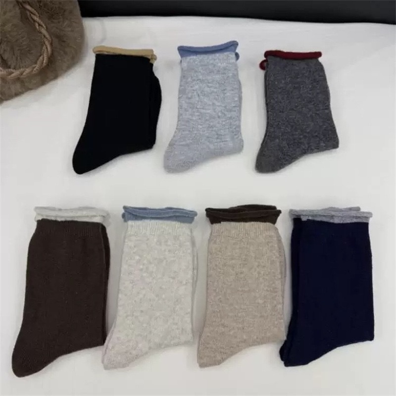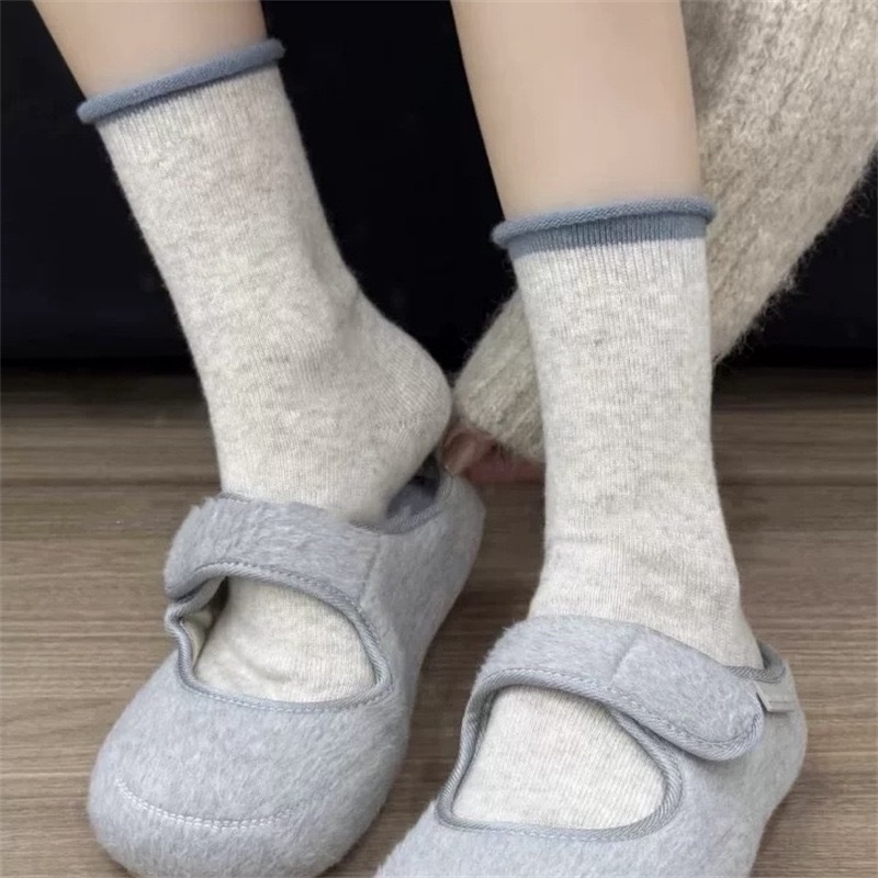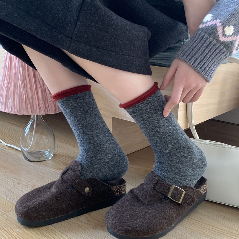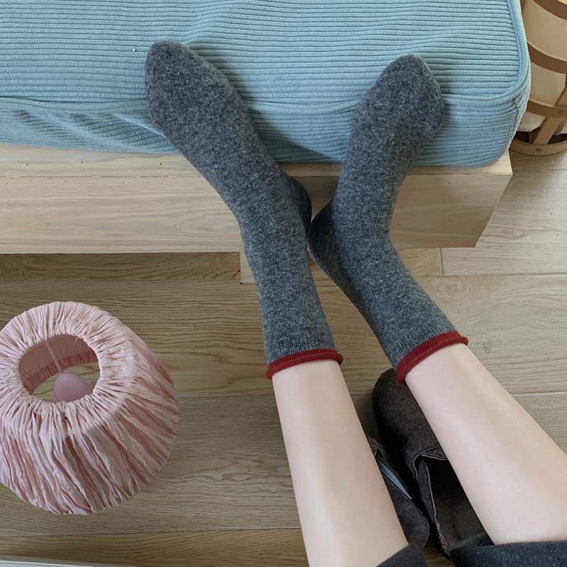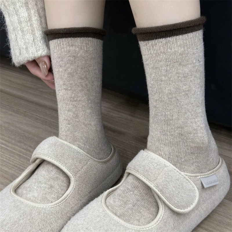 慵懒风秋冬袜子女中筒韩系卷边撞色堆堆袜软糯保暖羊毛袜诸暨袜业