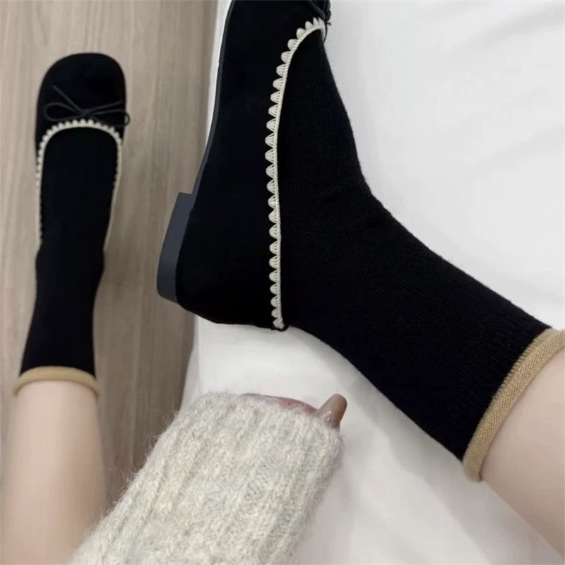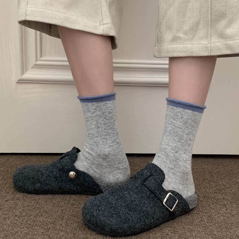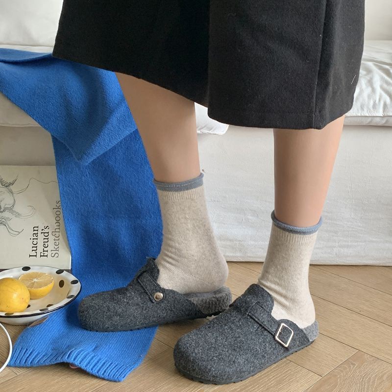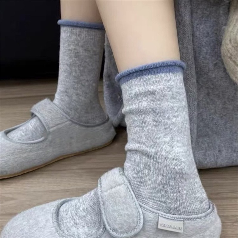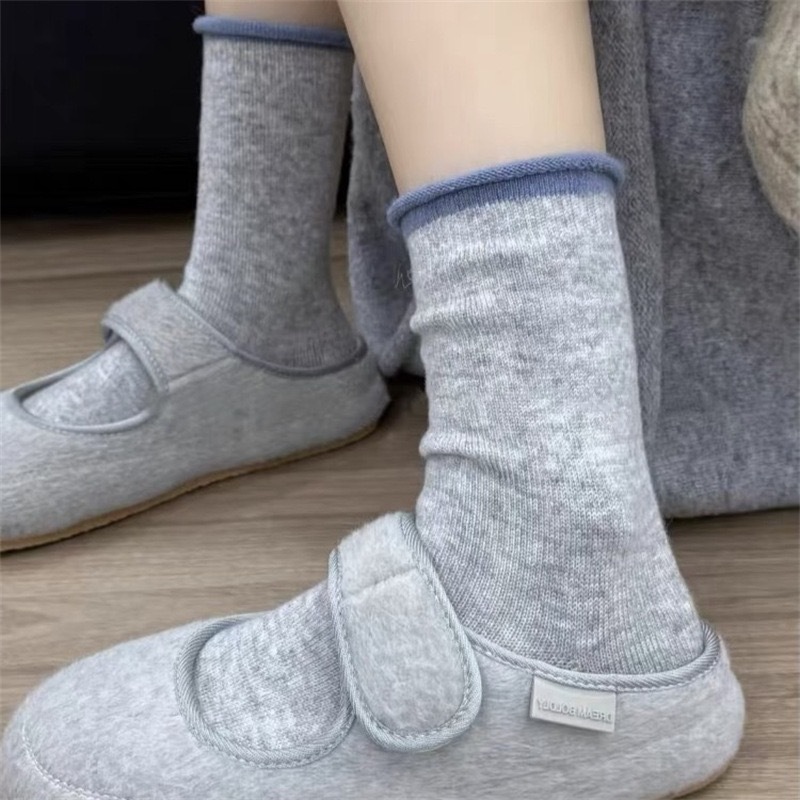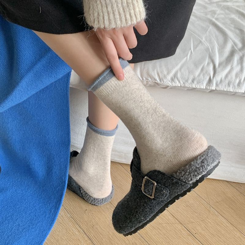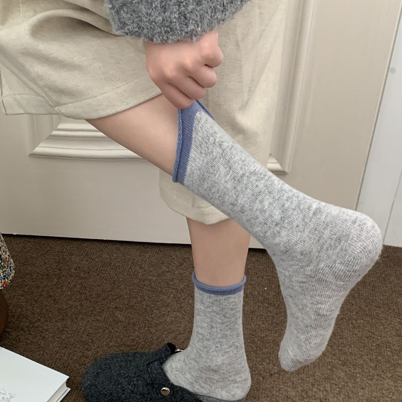 慵懒风秋冬袜子女中筒韩系卷边撞色堆堆袜软糯保暖羊毛袜诸暨袜业