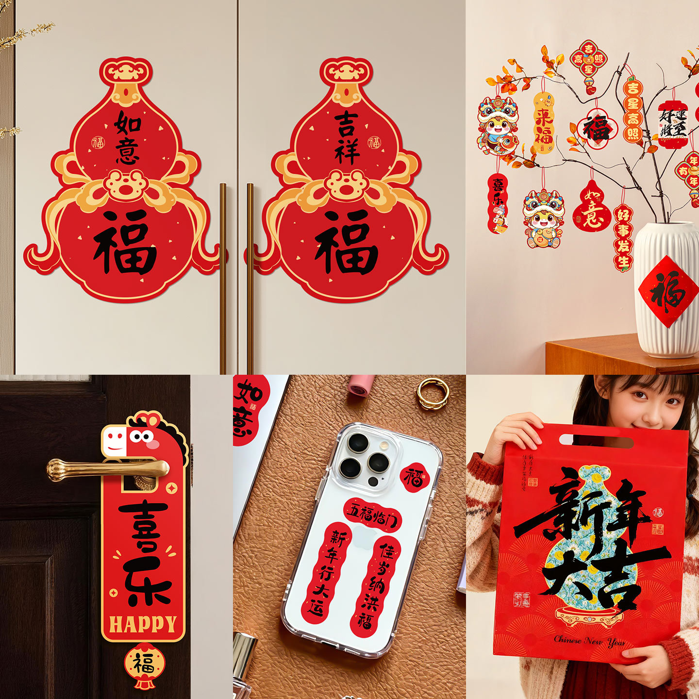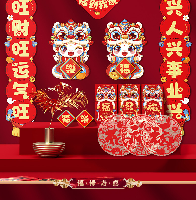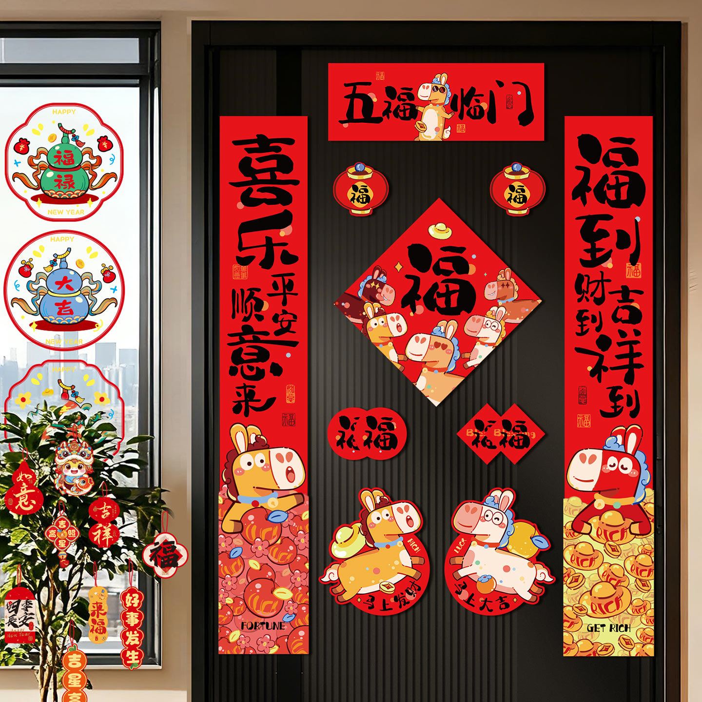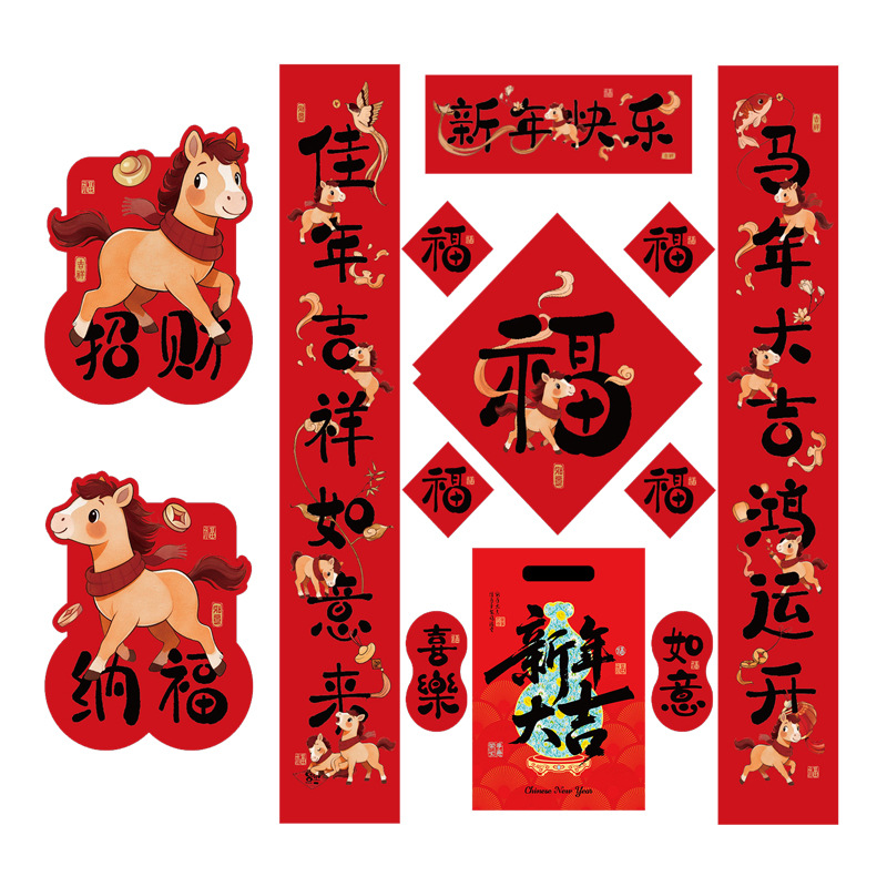 过年对联大礼包新年装饰春联马年纸质对联红包福字套餐