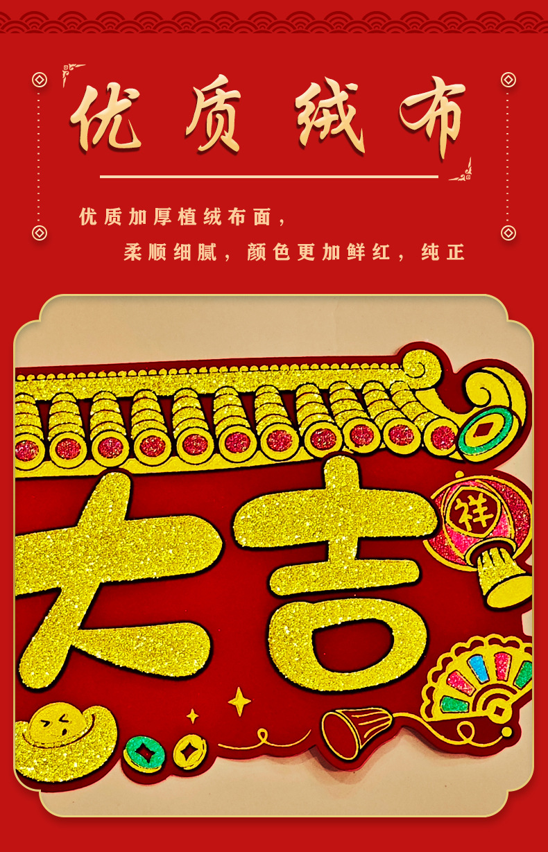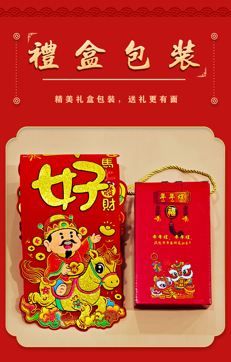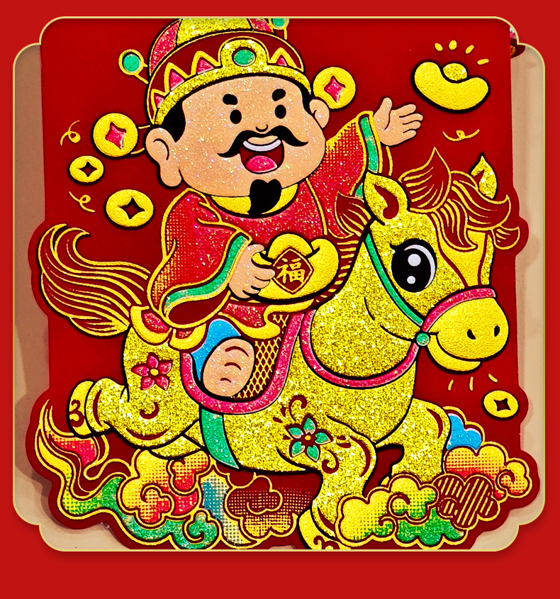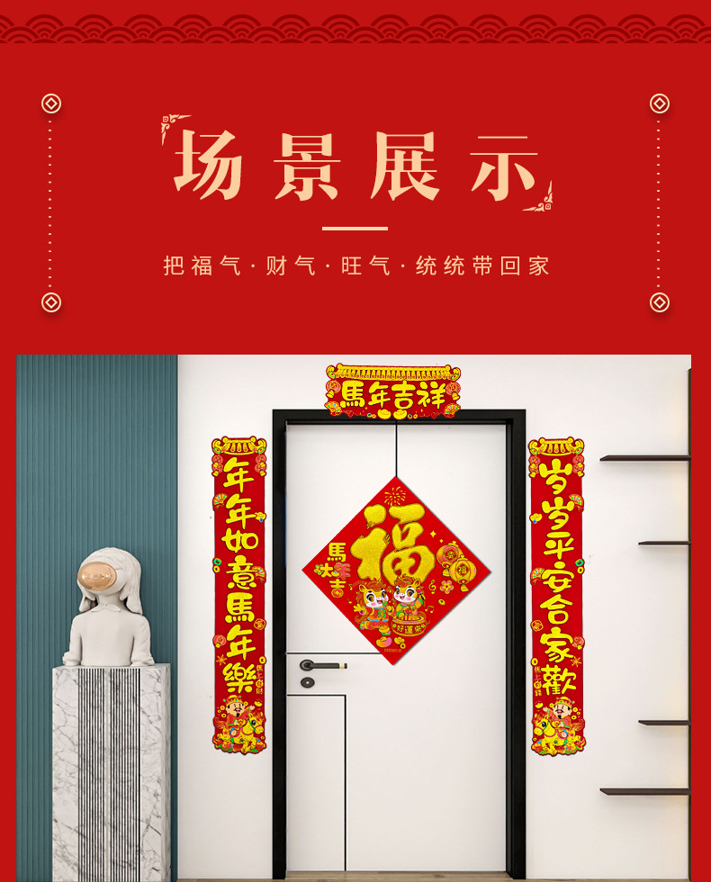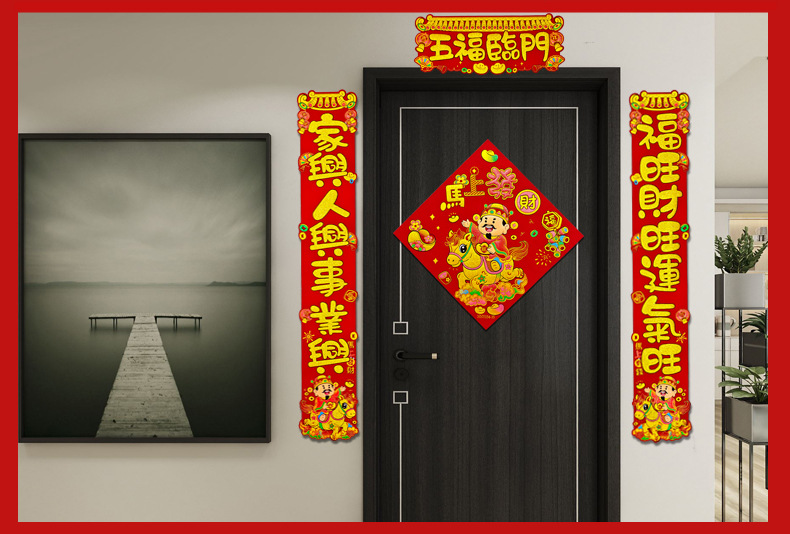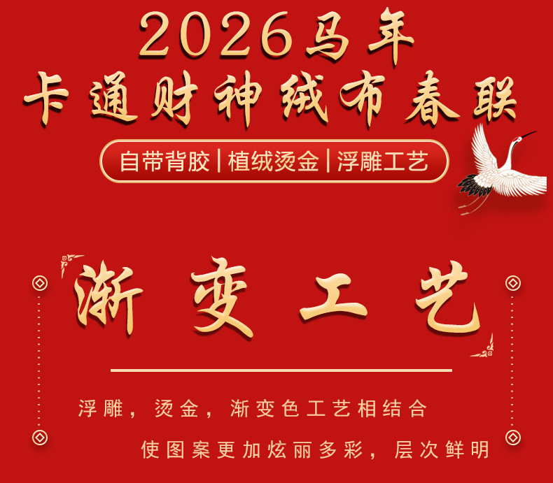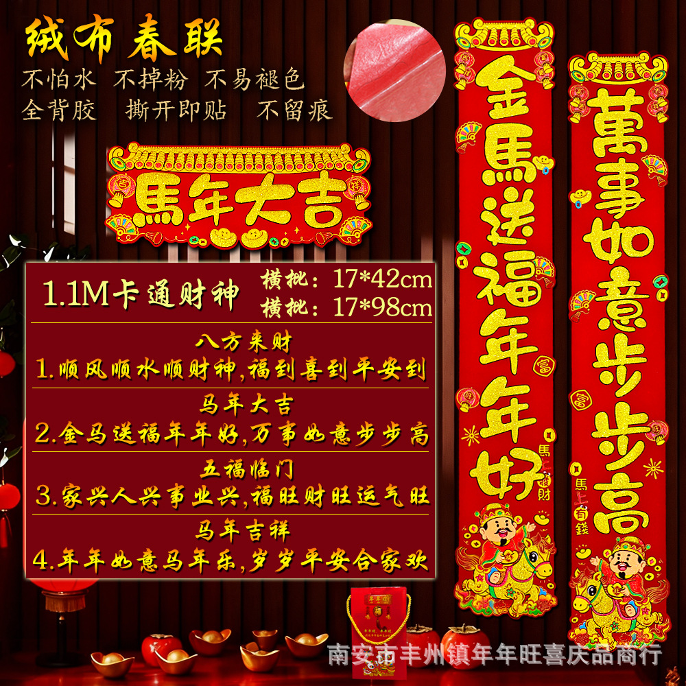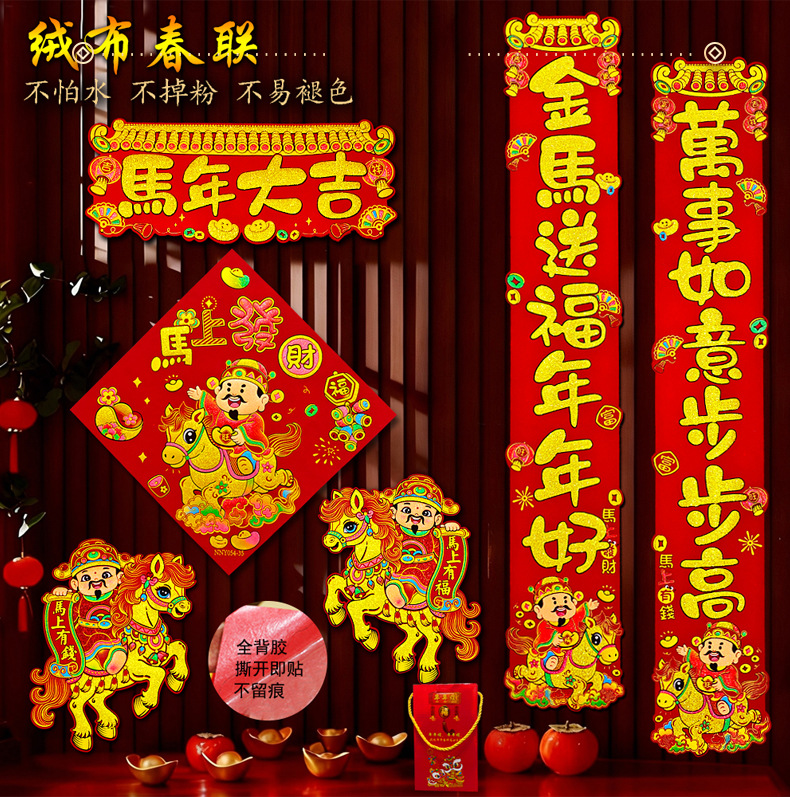 2026马年新款新年对联装饰创意卡通财神绒布自粘春联春节用品礼盒