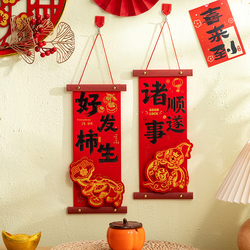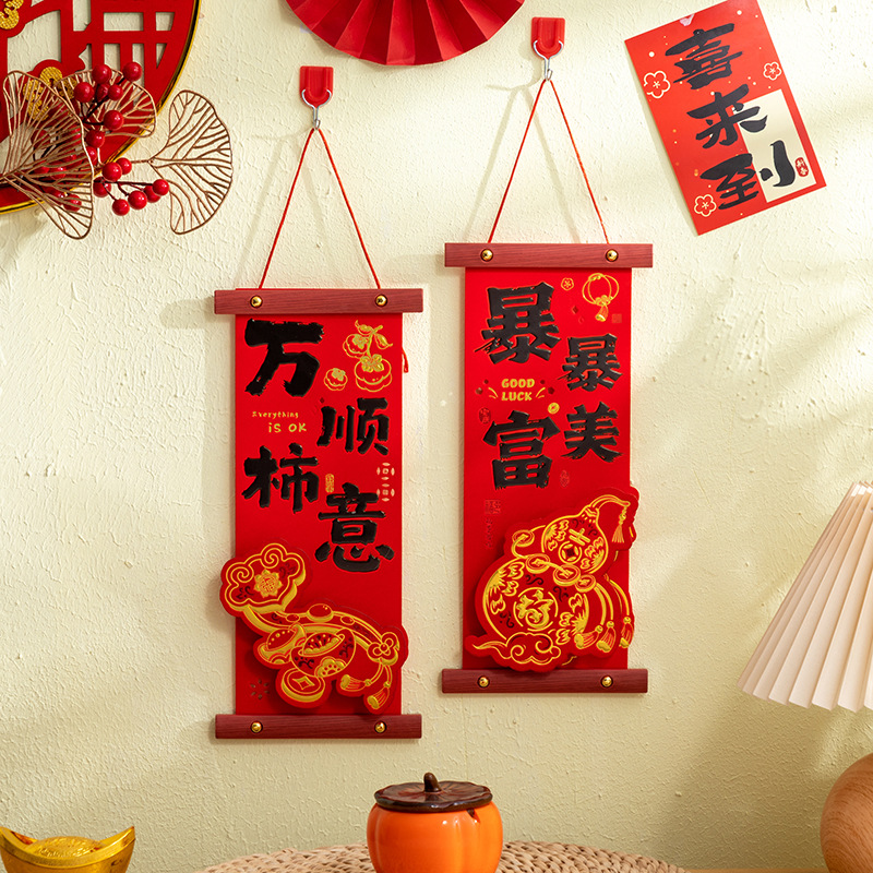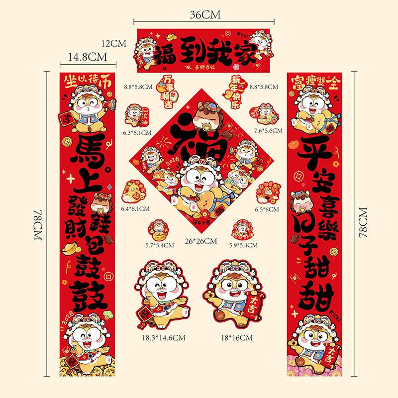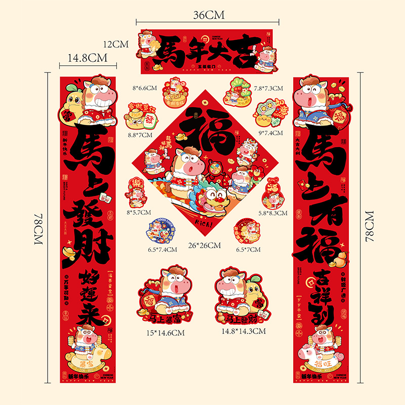 2026小对联马年春联绒布过年春节家用福字贴挥春入户门挂装饰植绒