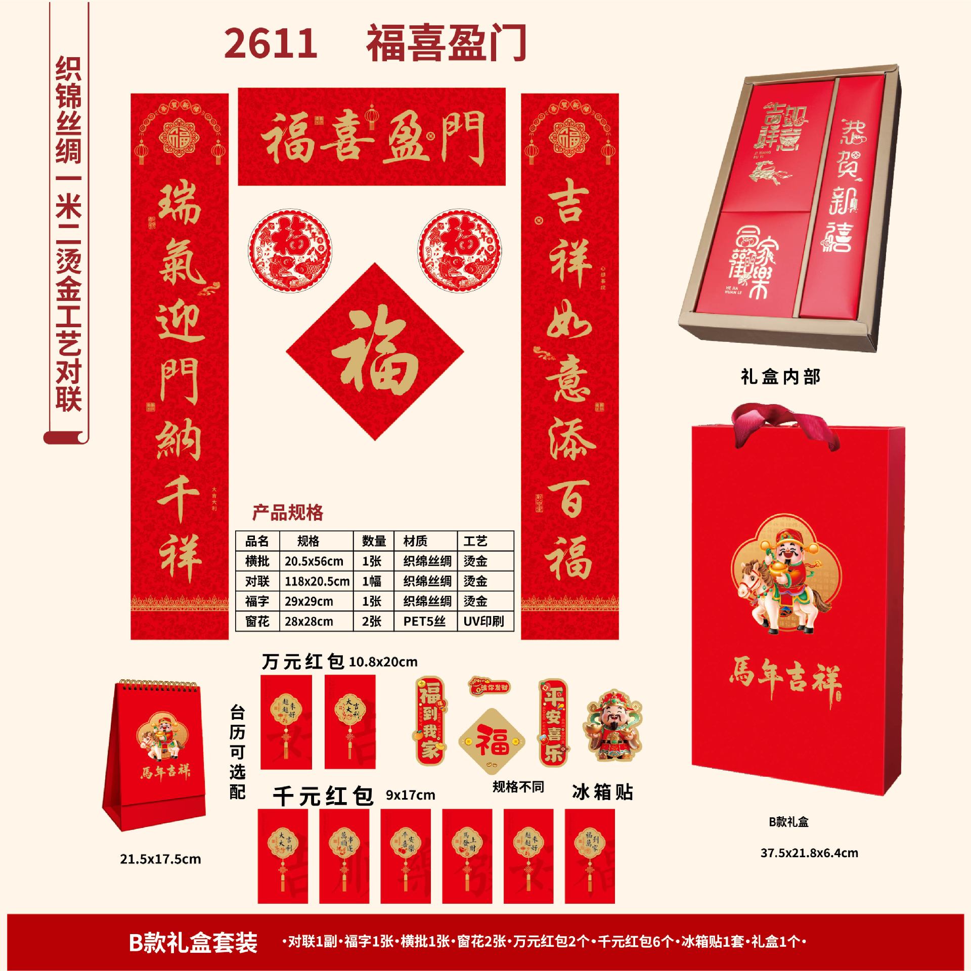马年春联加logo对联礼包新年创意龙纹丝绸烫金特种纸台历对联套装