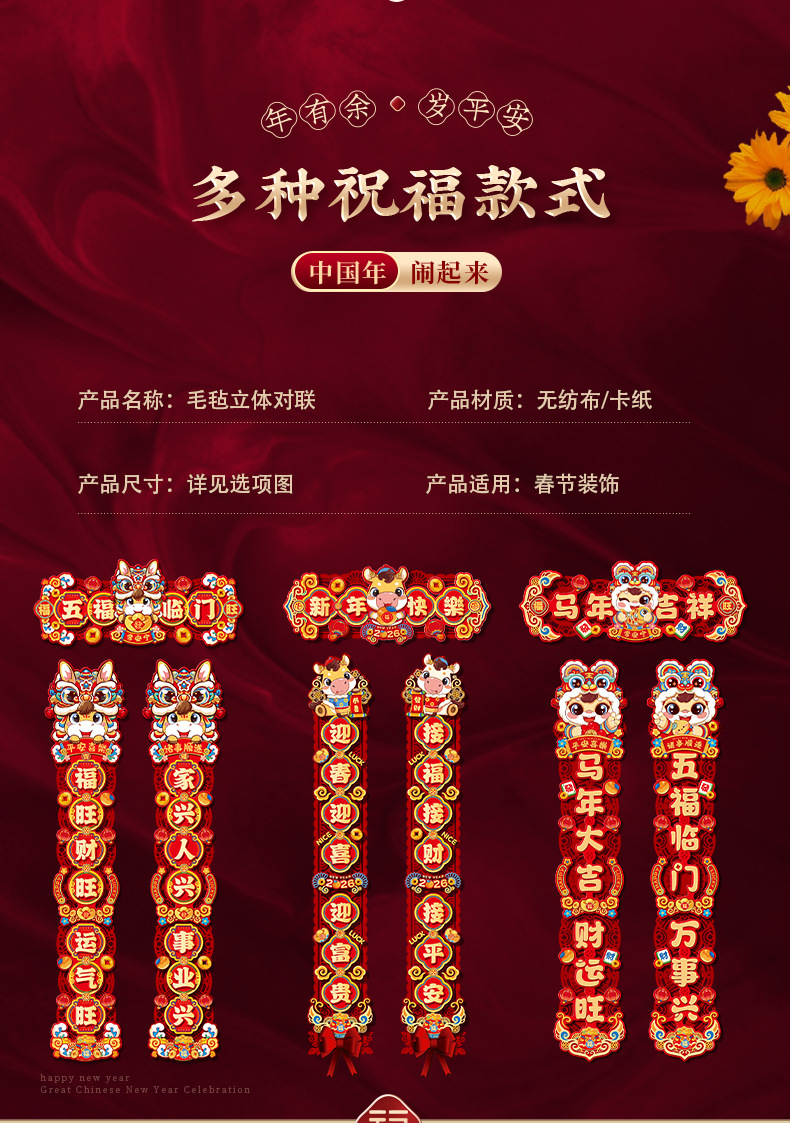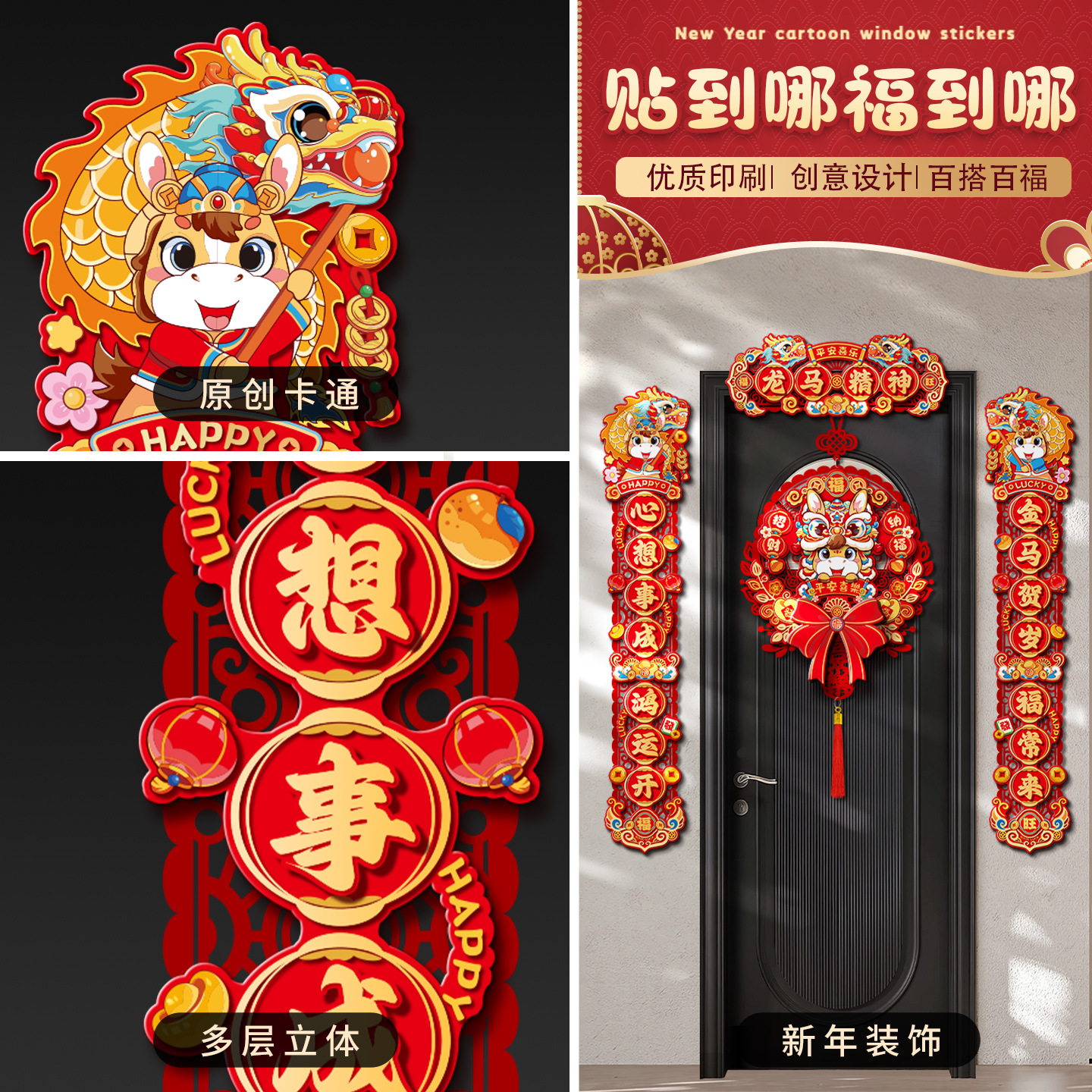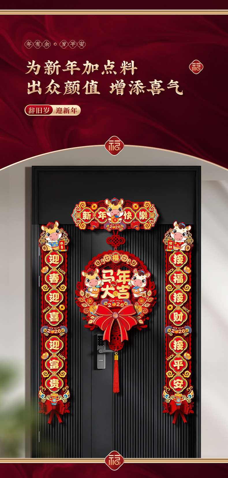 2026马年新款磁吸对联新年春节家用春联大门布置福字过年装饰用品