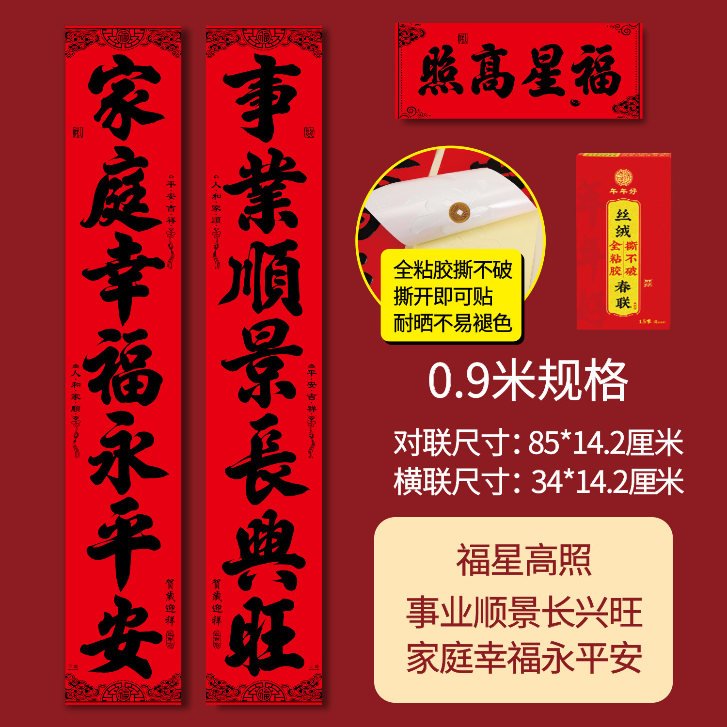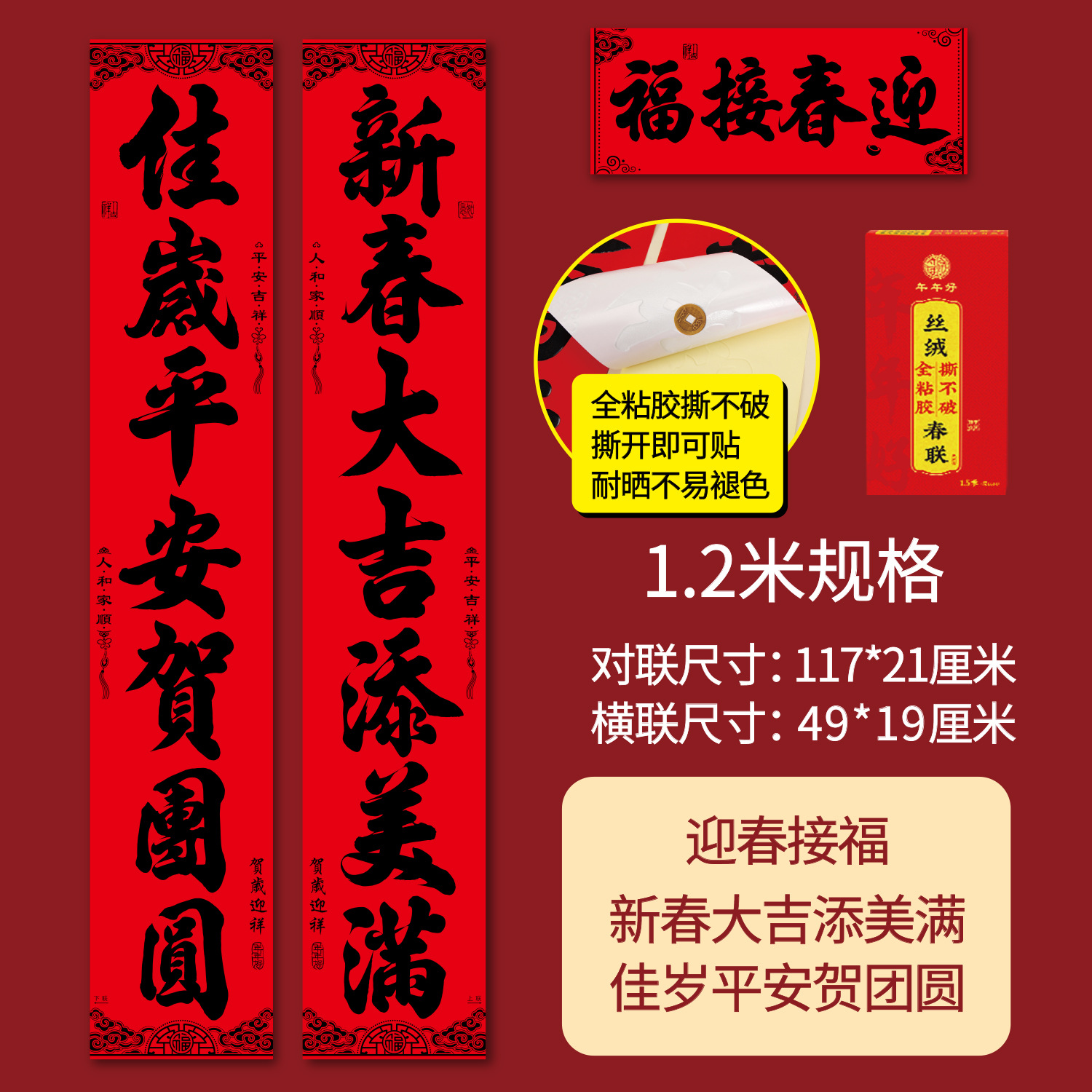 对联2026马年春联丝绒背胶对联年年好批货烫金黑字对联农村大门