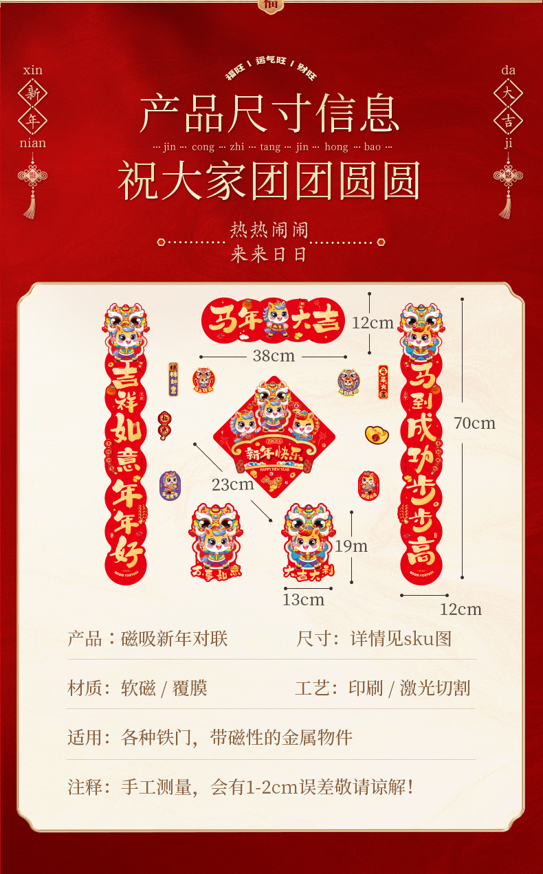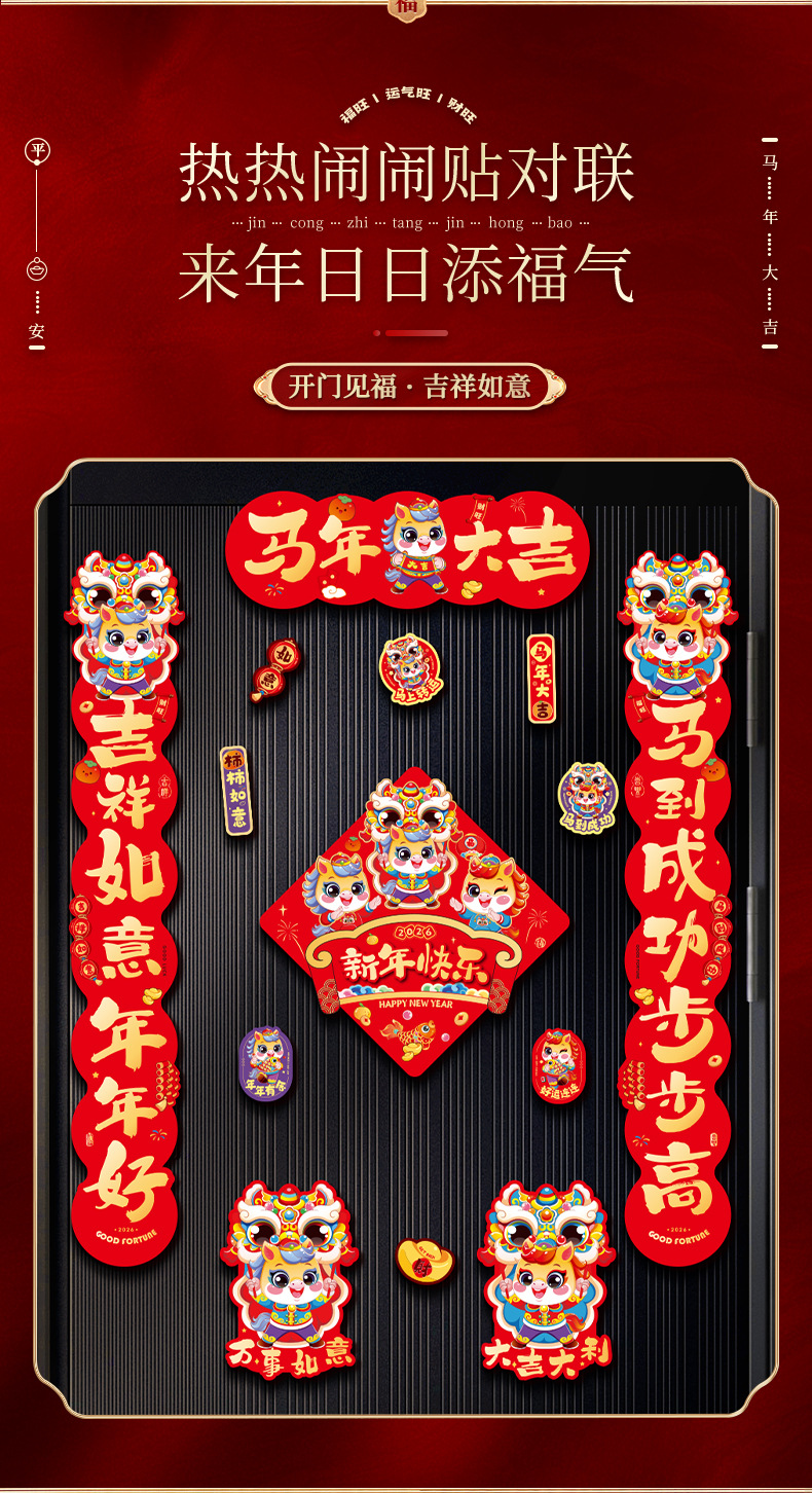 磁吸对联2026马年新款春联新春春节福字门联新年过年大门氛围布置