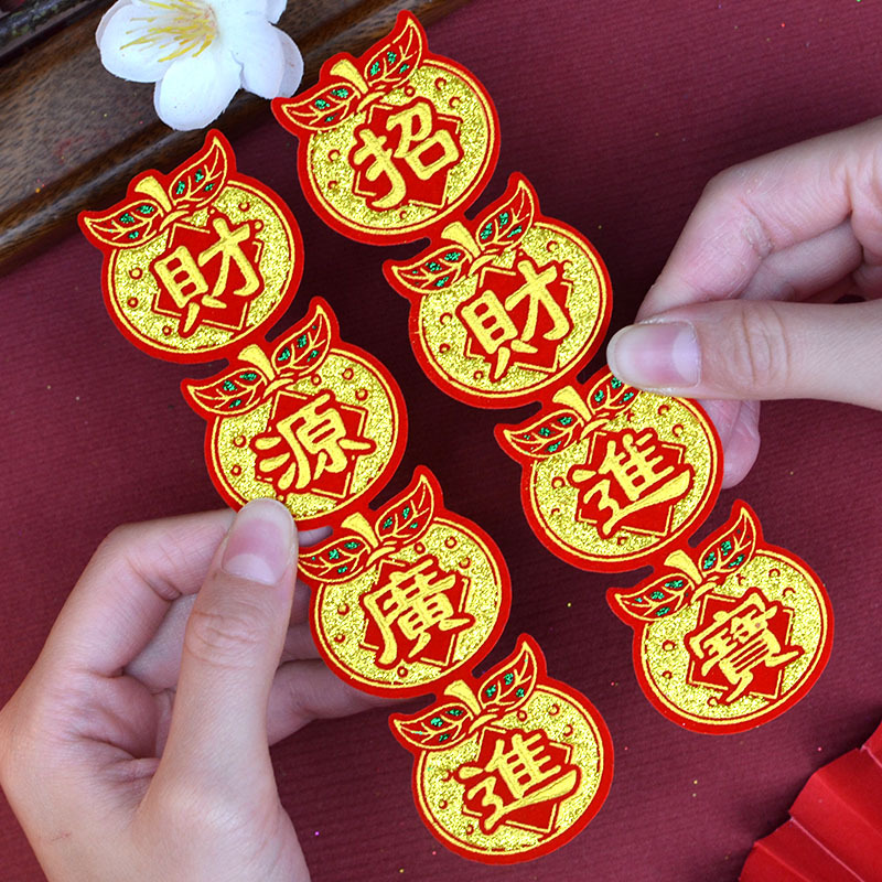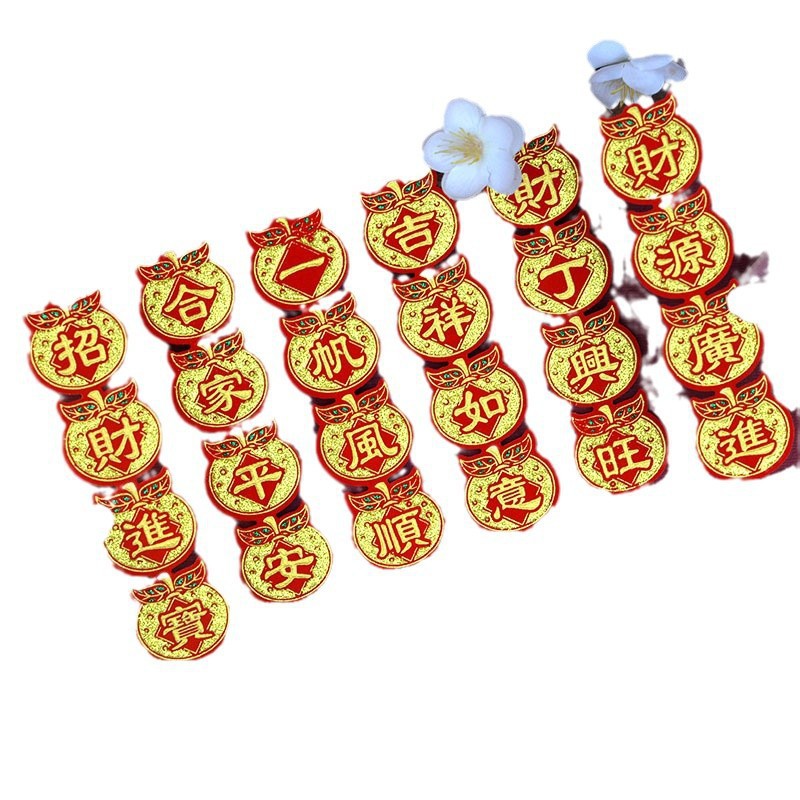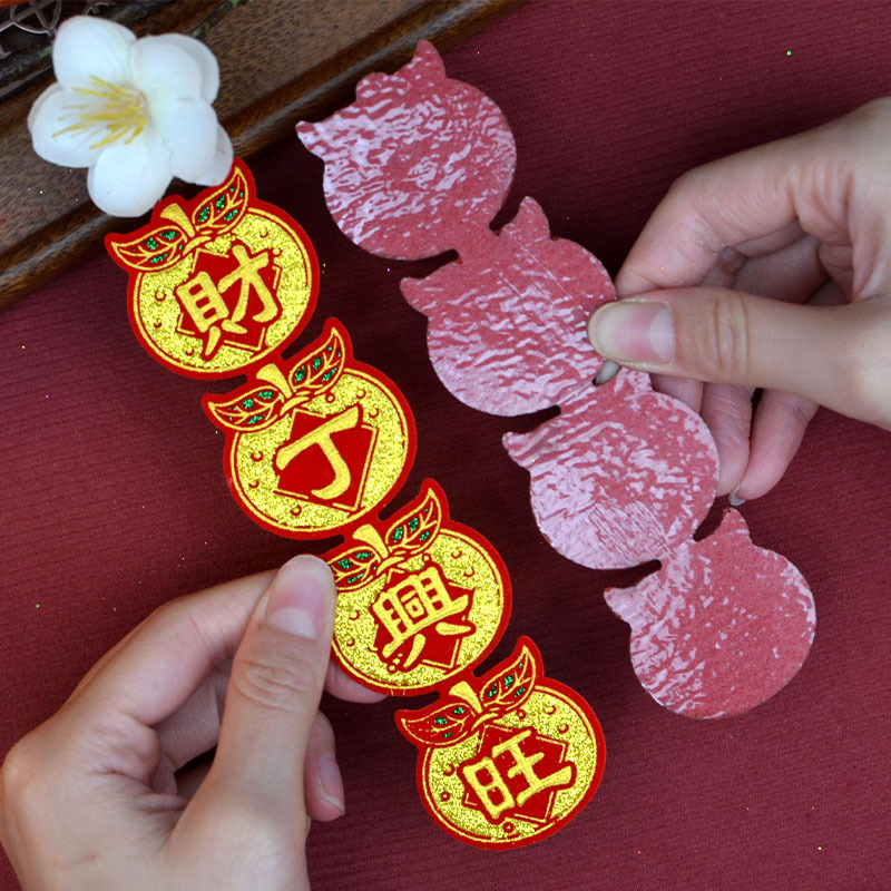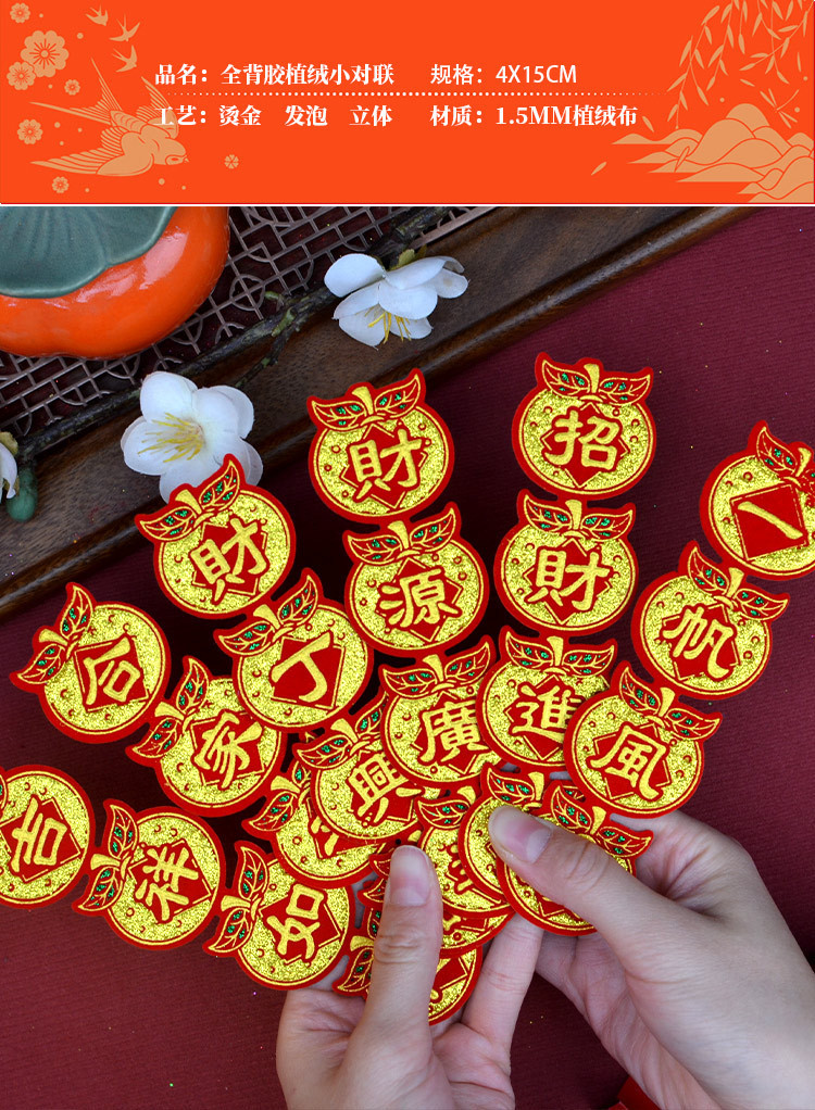 新款桔子四字联迷你款小号对联4X15CM财丁兴旺合家平安潮汕折塔用