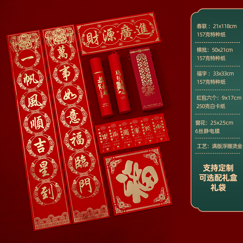 2026马年春节对联套装礼盒春联大礼包定做广告烫金对联定制加LOGO