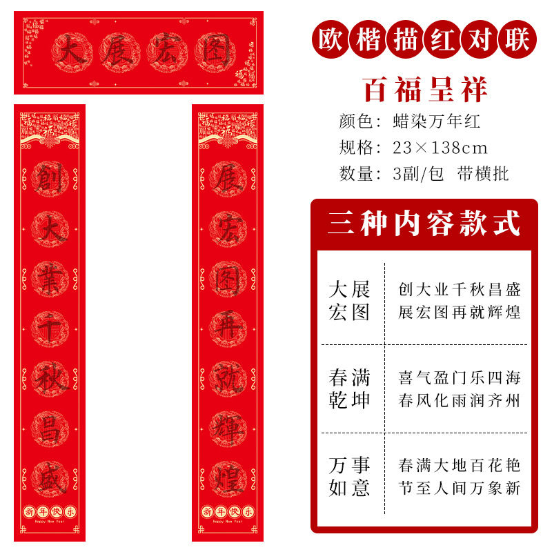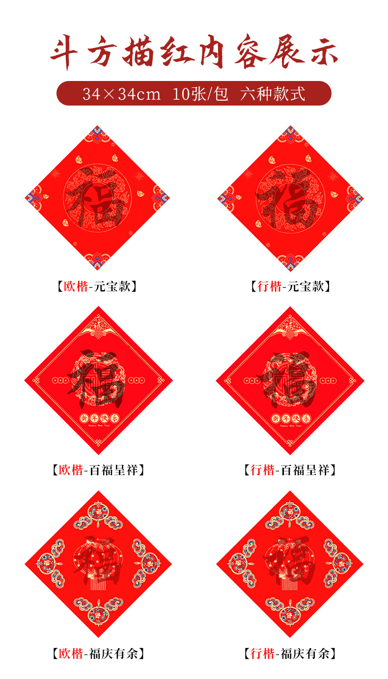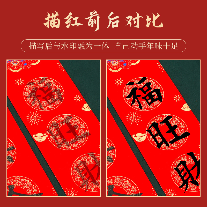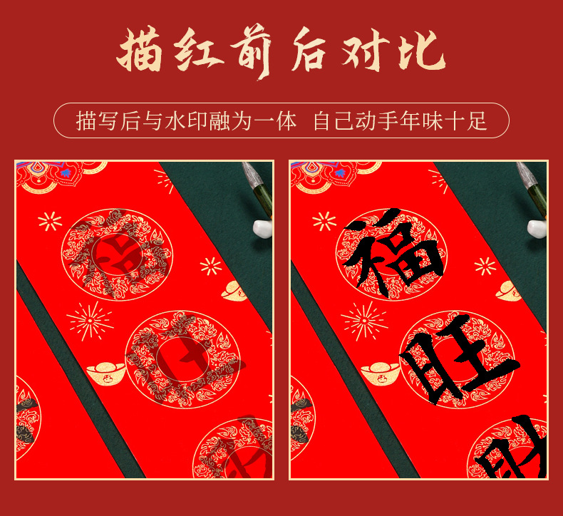 宣纸描红万年红对联蜡染福字斗方挥春手写书法欧楷行楷对联纸批发