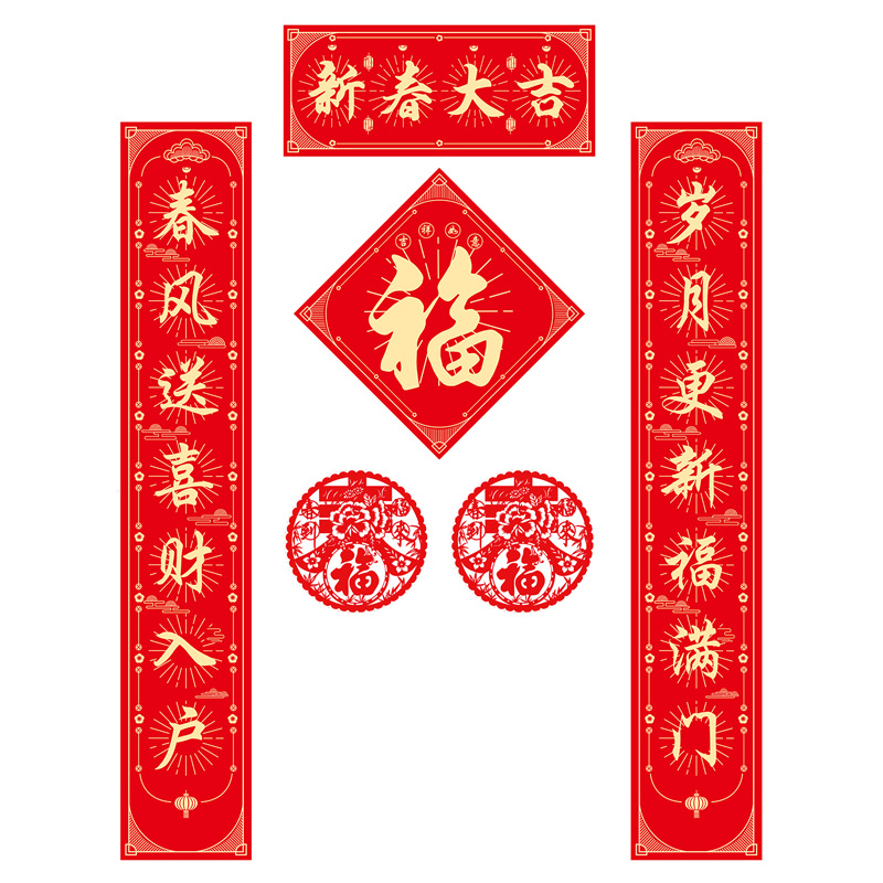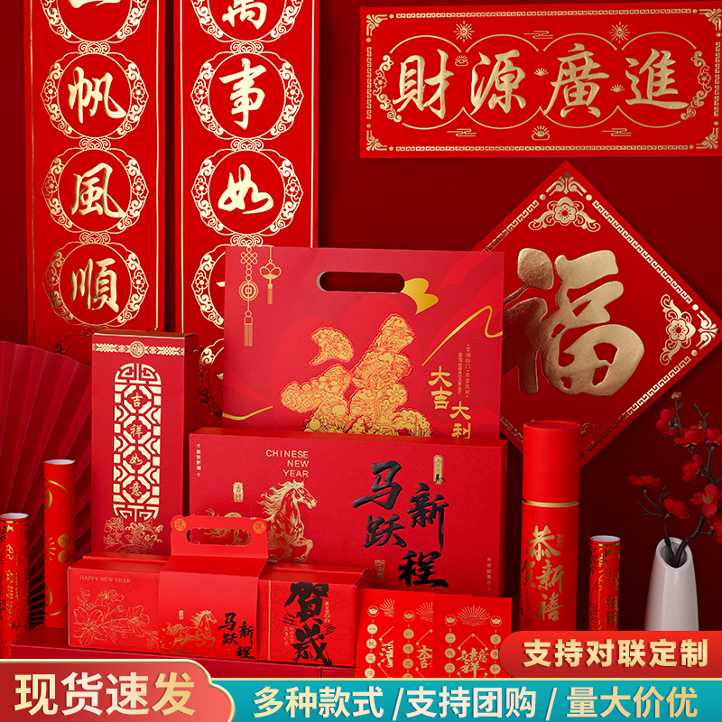 马年对联大礼包定制植绒对联红包福字丝绸春联礼盒定做企业印LOGO