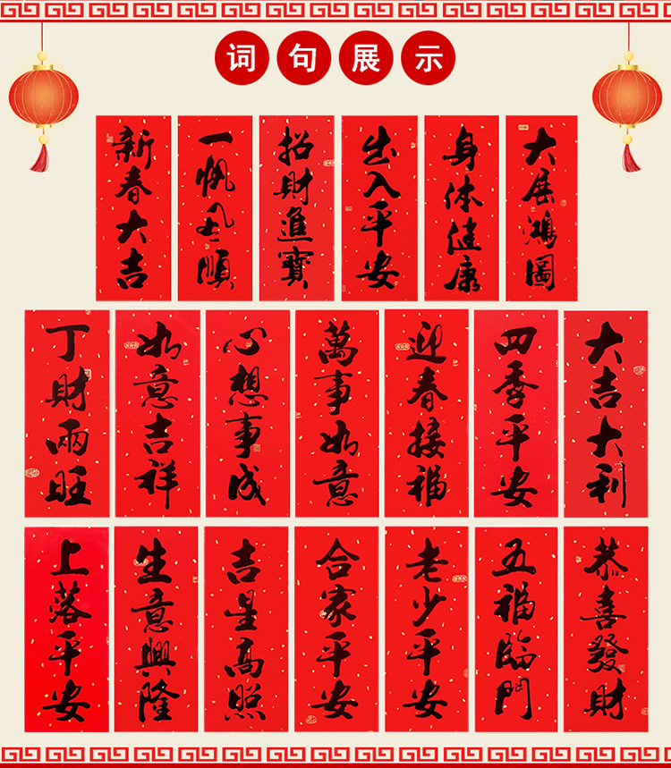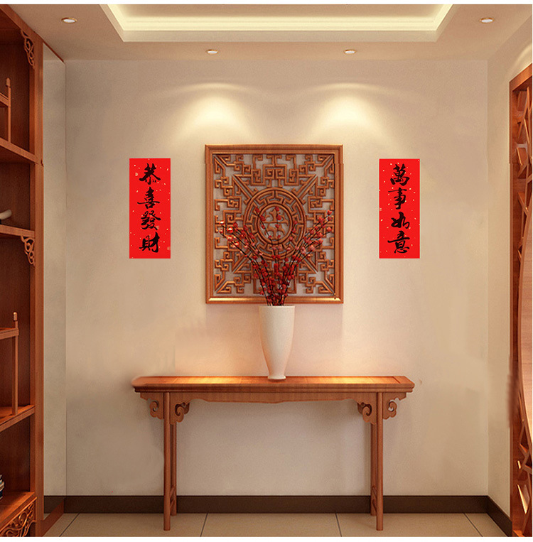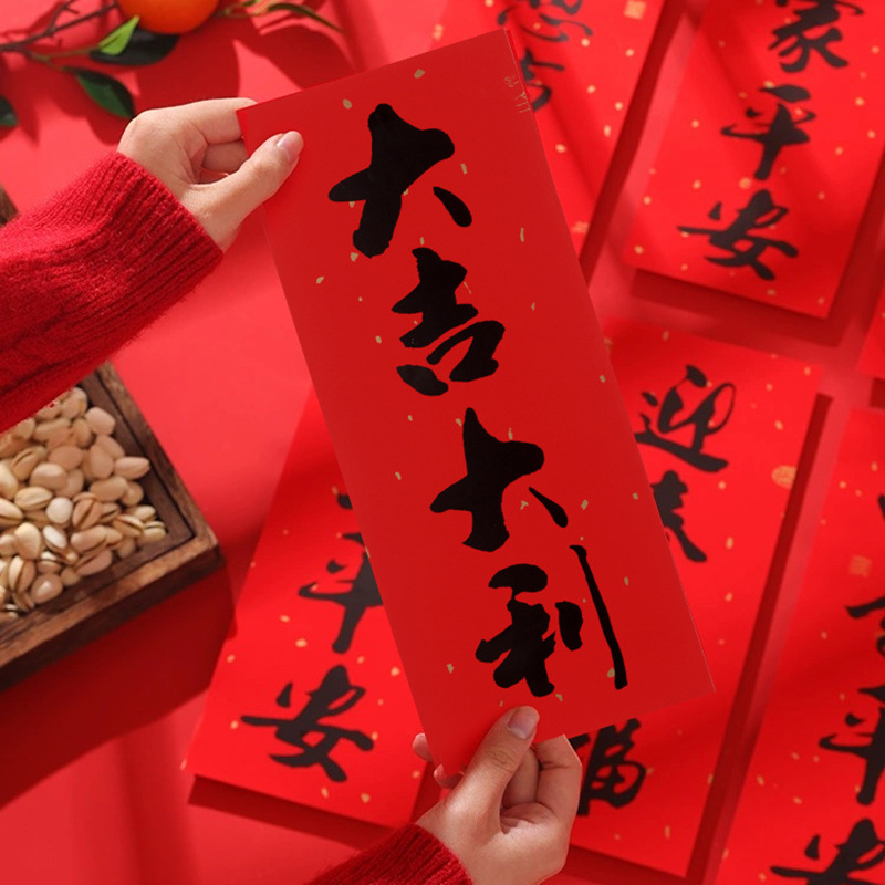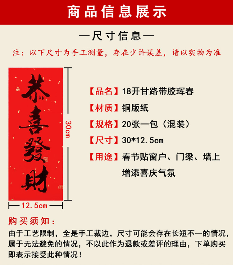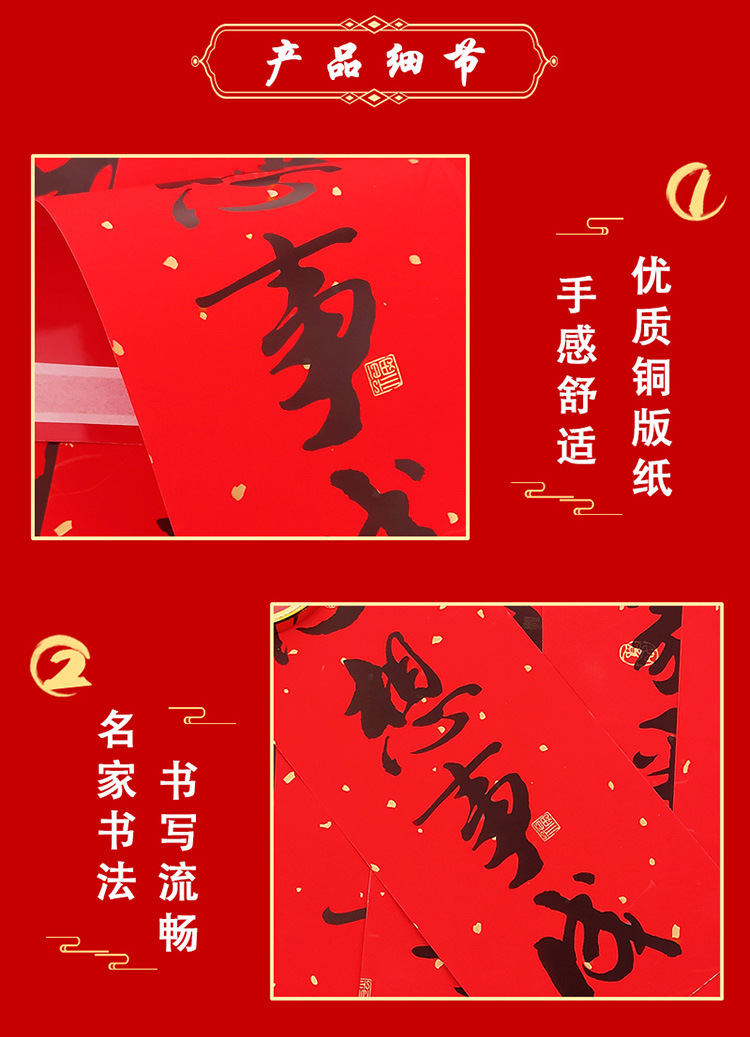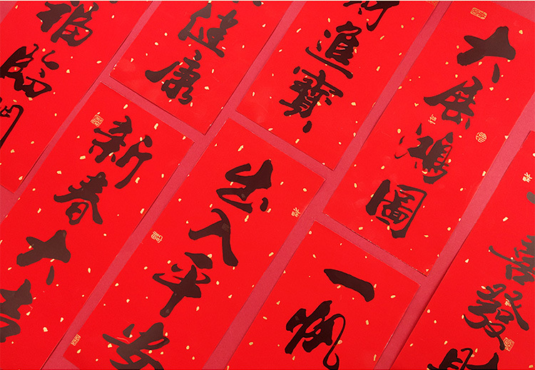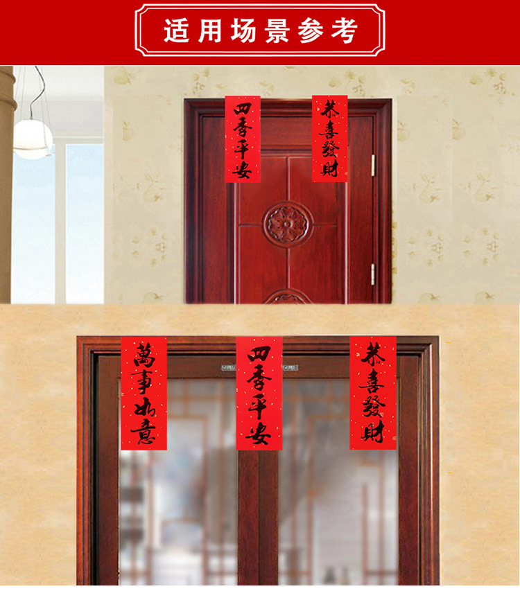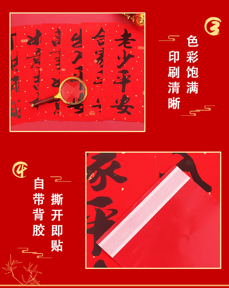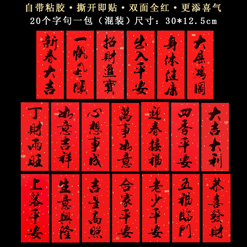 背胶四字小对联门头挥春贴纸自粘新款黑字不褪色珲春利是春条门贴