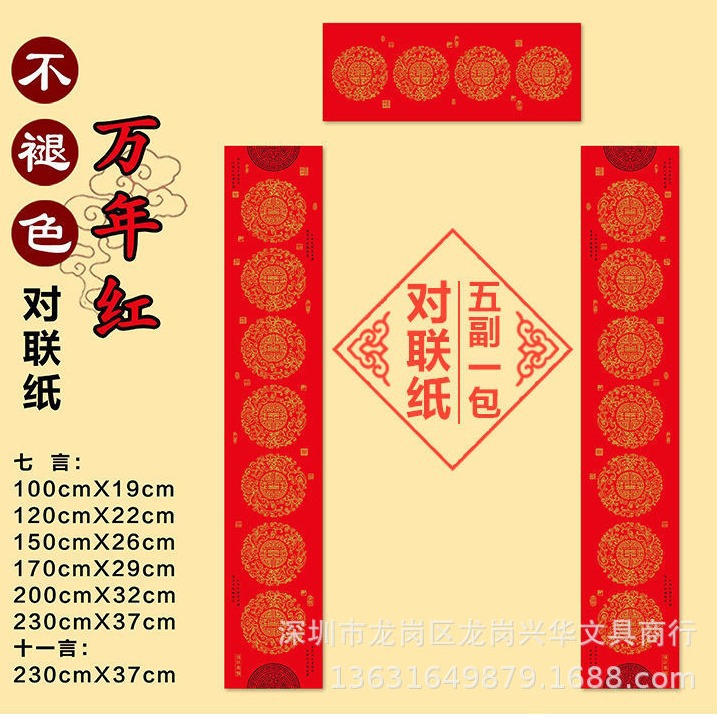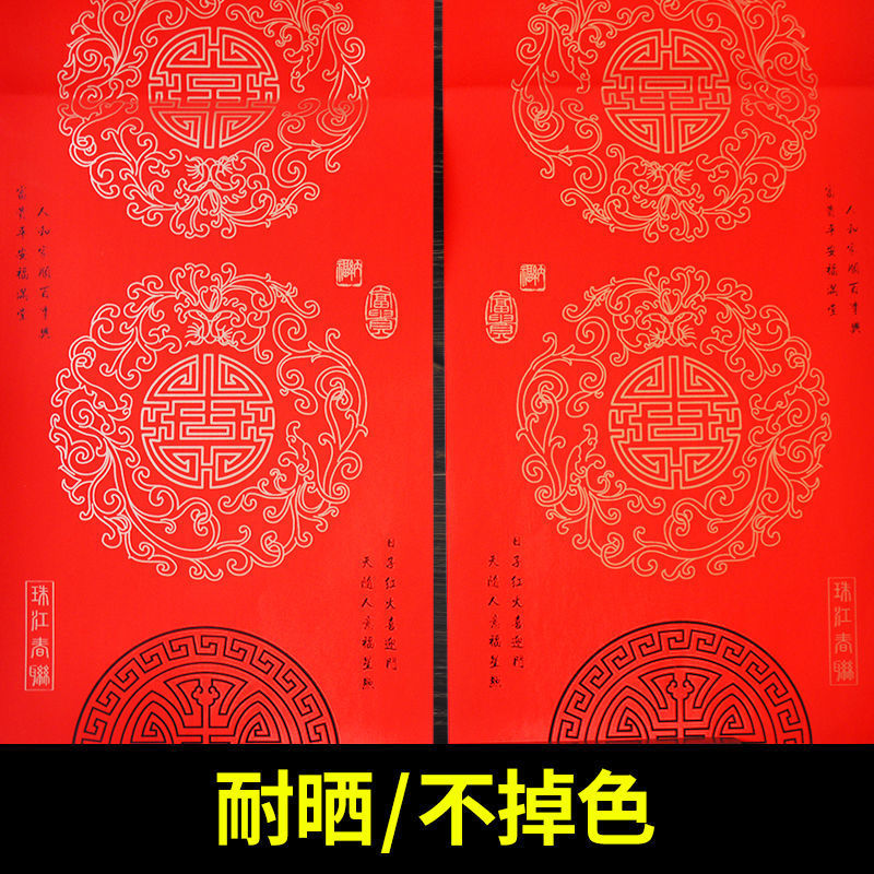 珠江春联纸经典瓦当铜版纸加厚不褪色万年红对联纸高档手写红纸