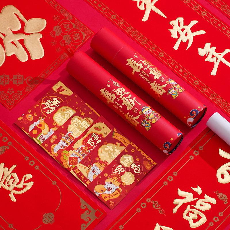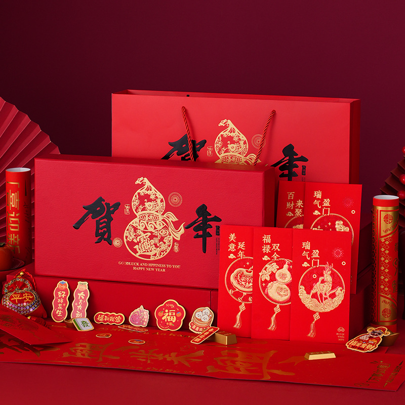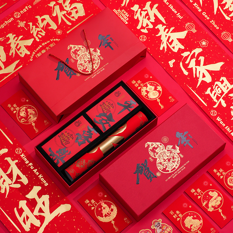 2025烫金植绒对联定制丝绸春联定做福字大礼包礼盒套装批发印logo