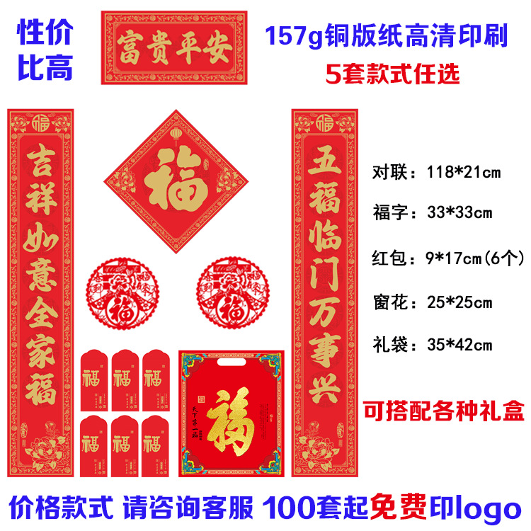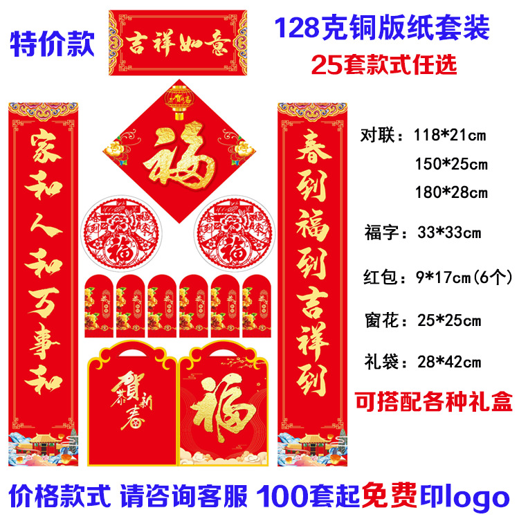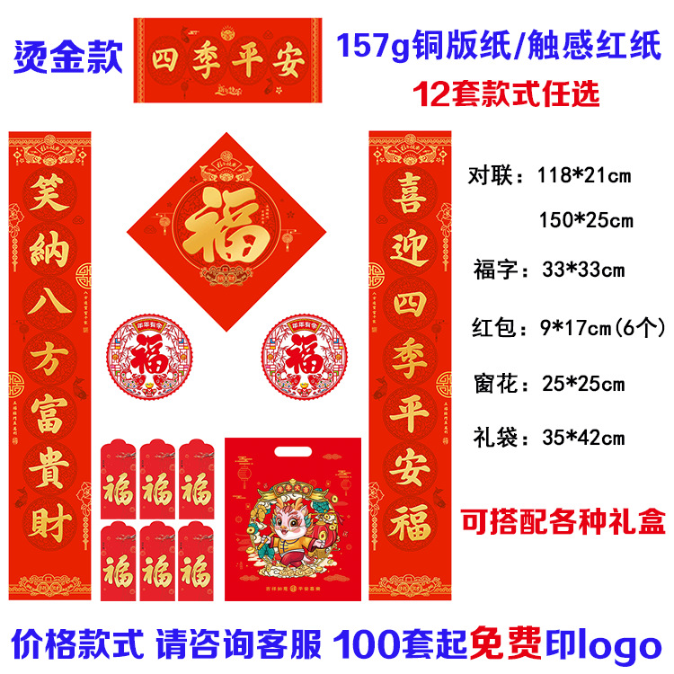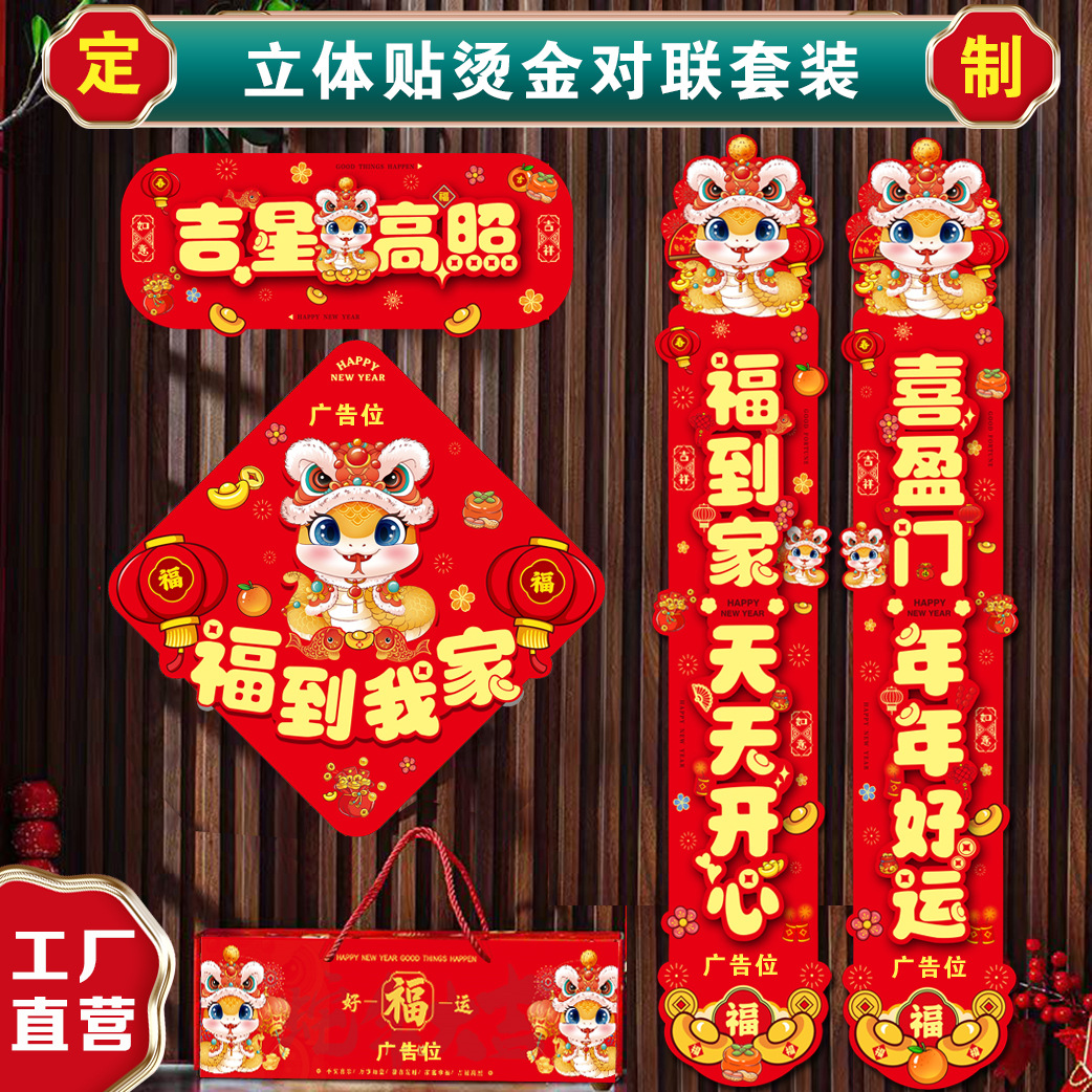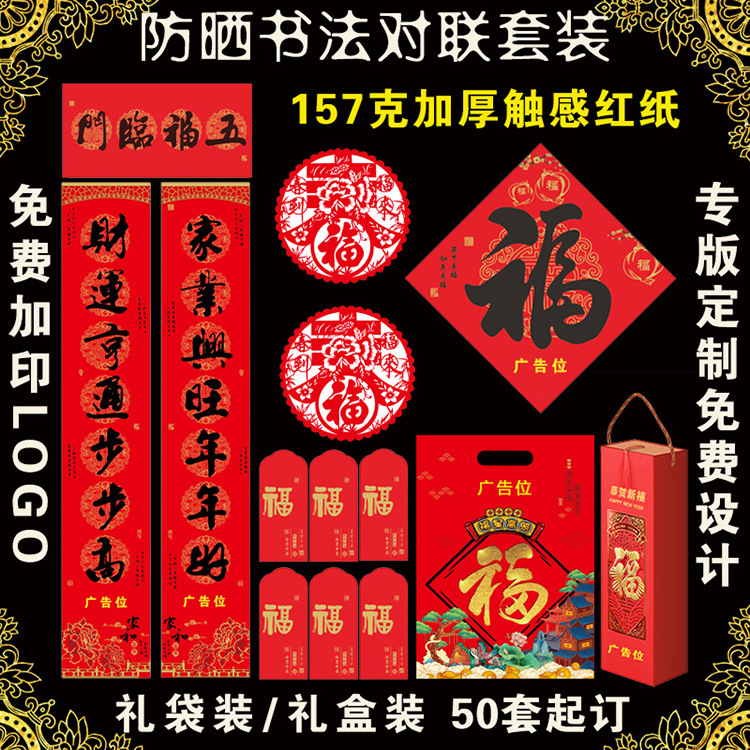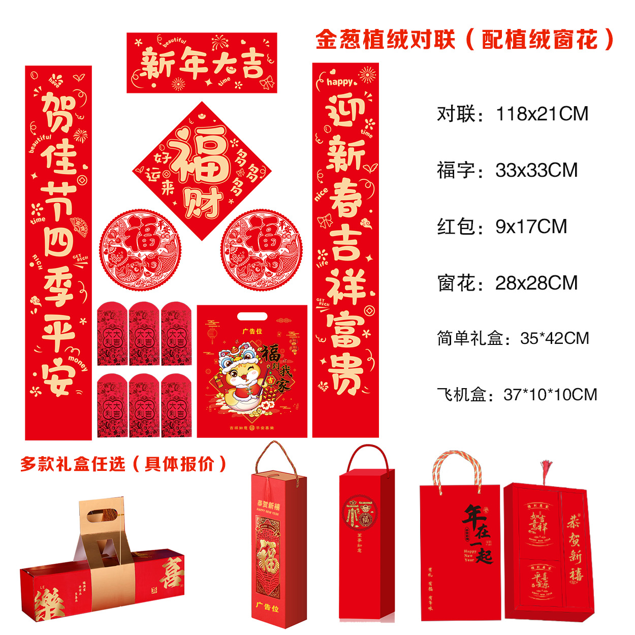 2026马年广告对联定制烫金植绒春联福大礼包企业礼盒订做logo专版