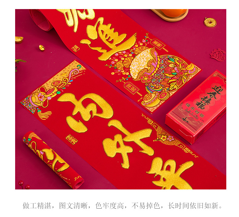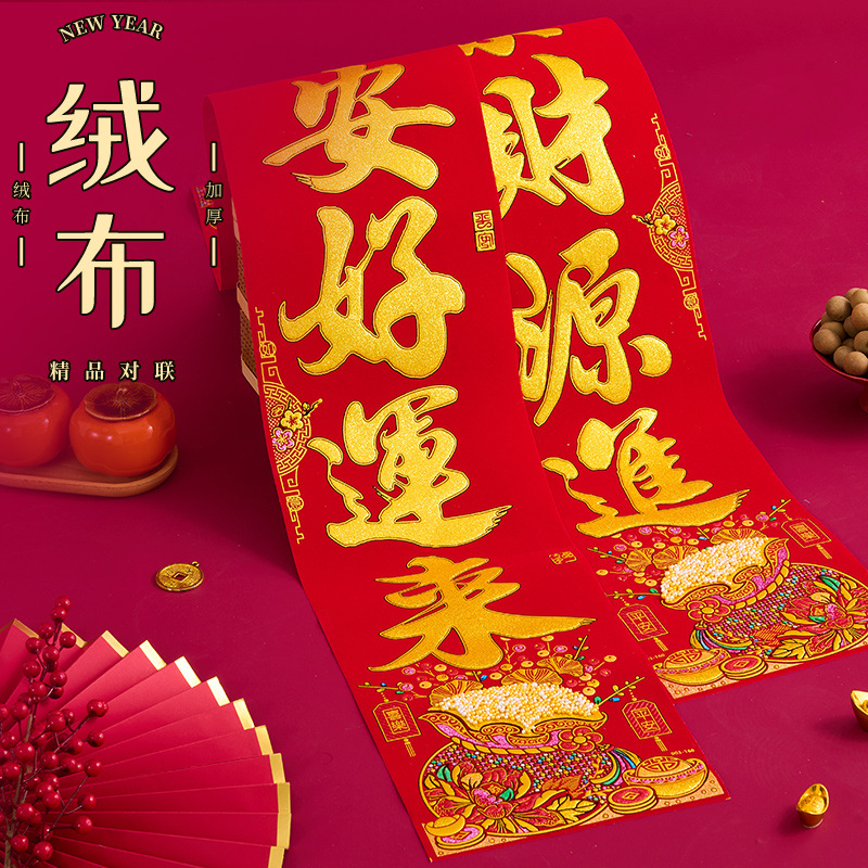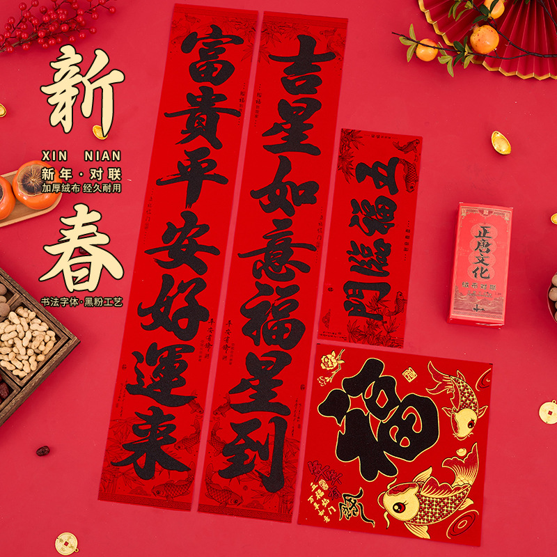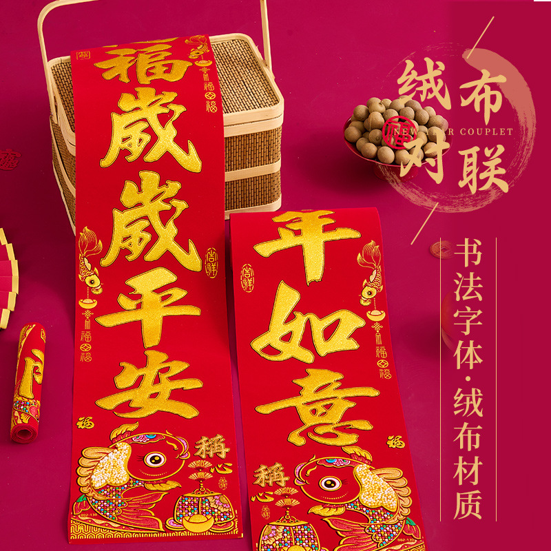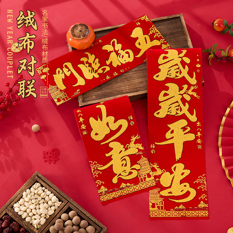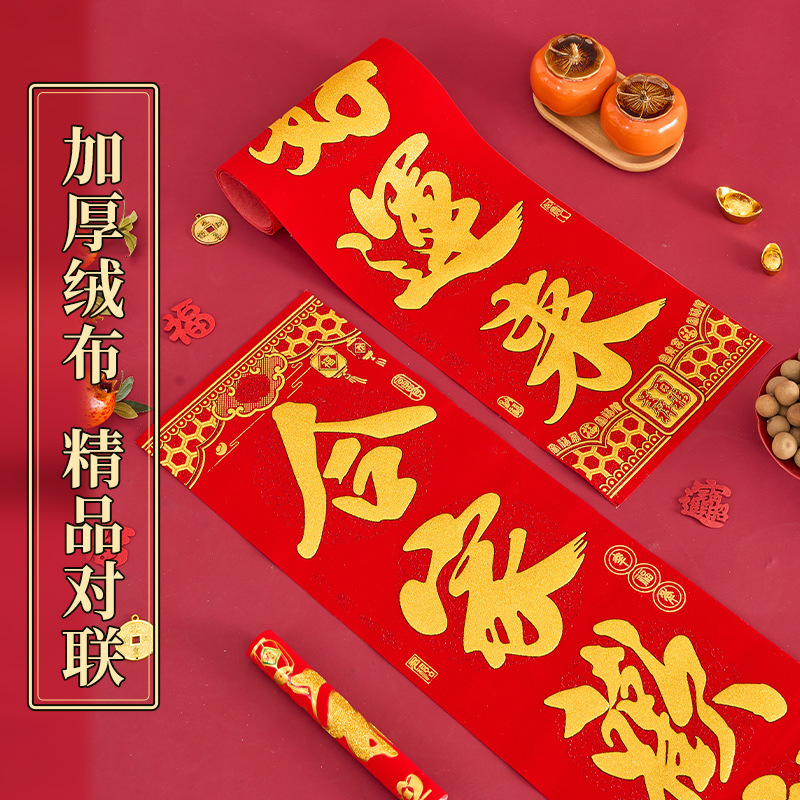 正唐马年新春对联2026新款绒布门联春节大门装饰家用门贴植绒春联