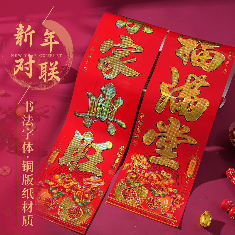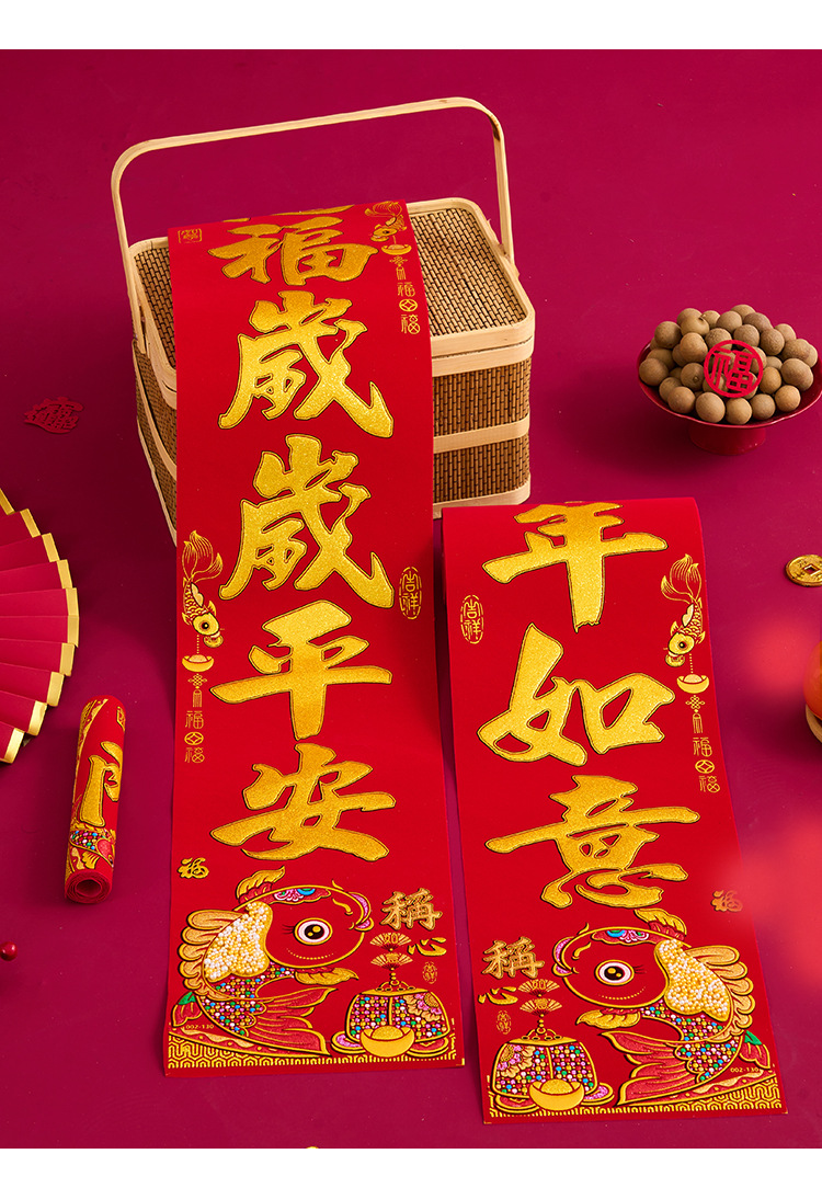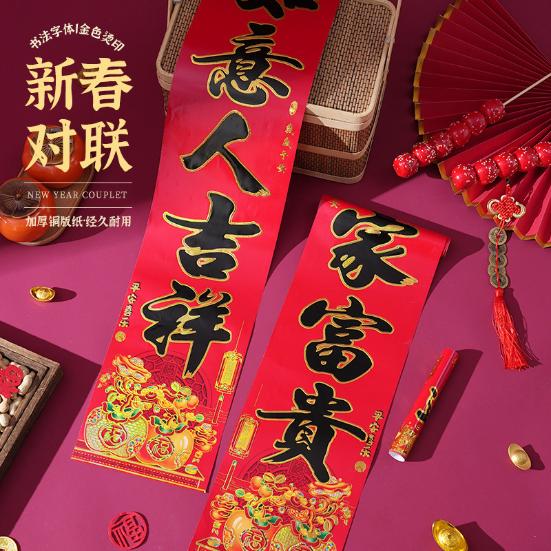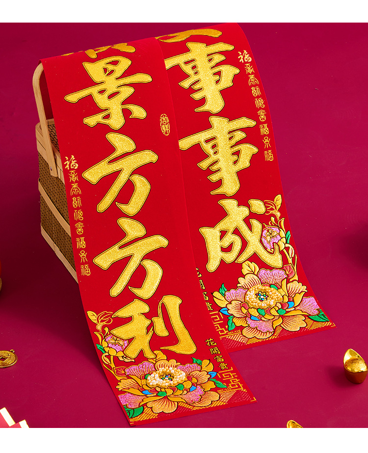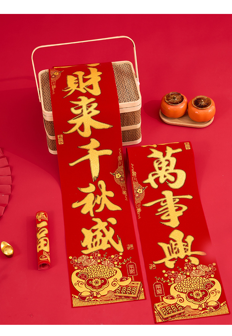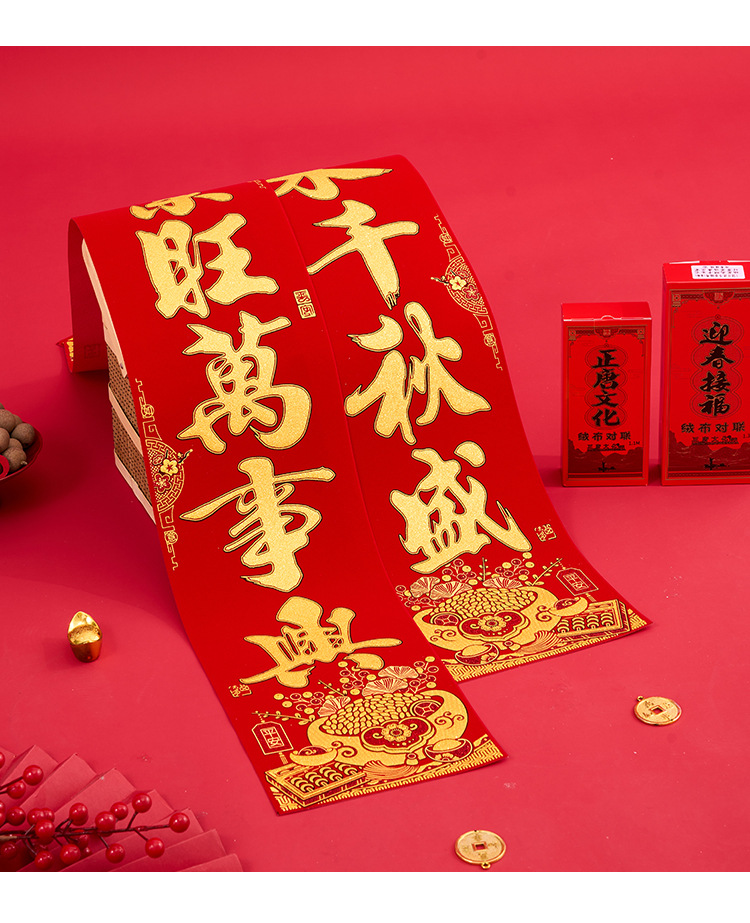 正唐马年新春对联2026新款绒布门联春节大门装饰家用门贴植绒春联