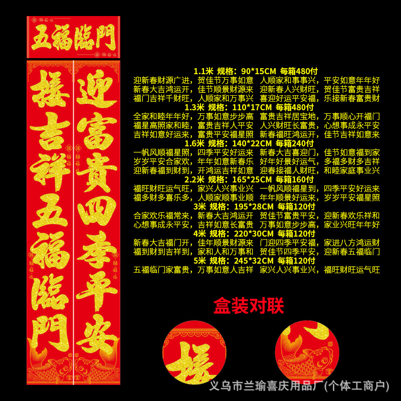 2026马年新款春节对联批货植绒金粉盒装对联大门春联年货厂家批发