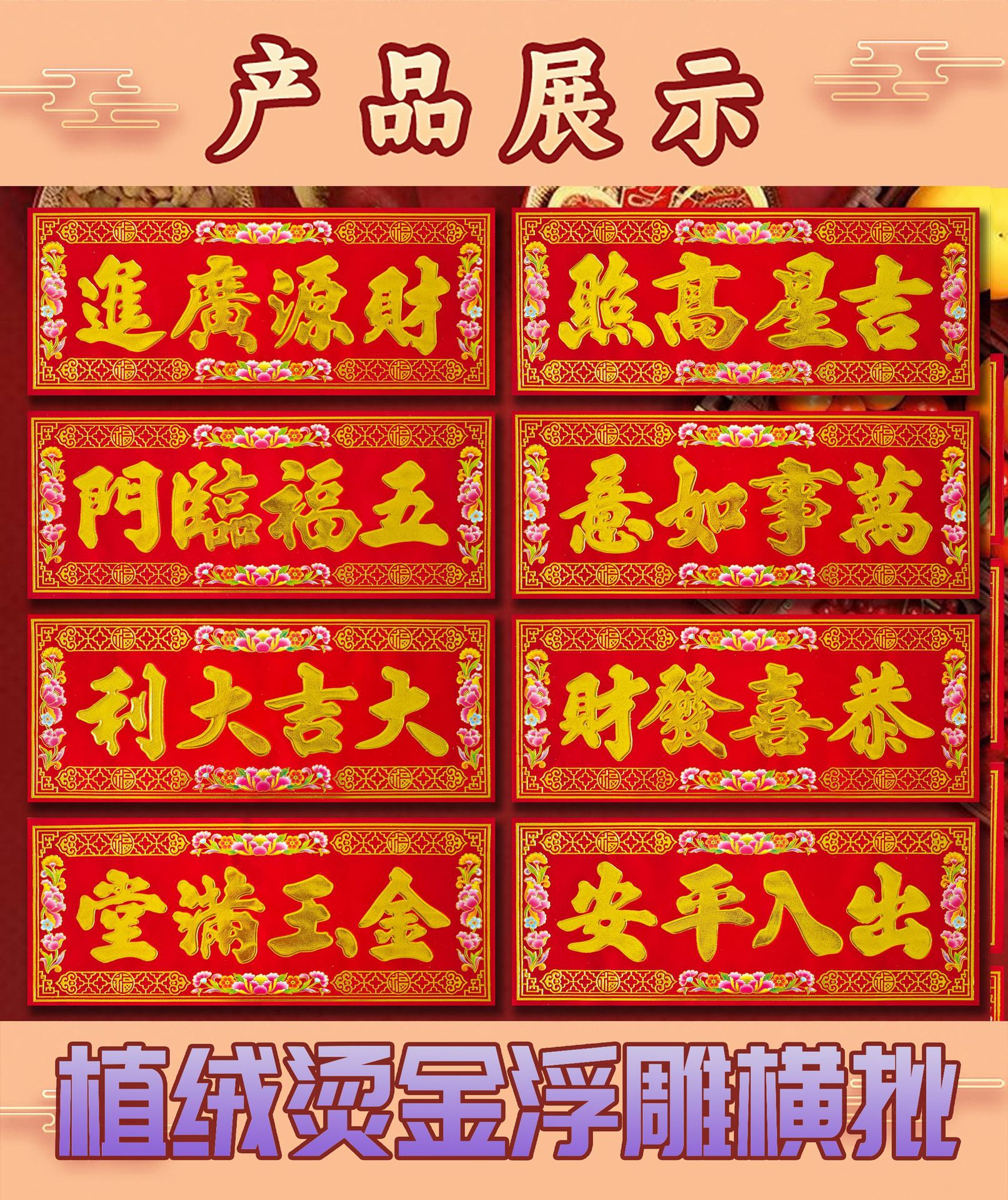 | 小号浮雕植绒横批(48X20cm) | USD $0.17 | 4900 piece available |
