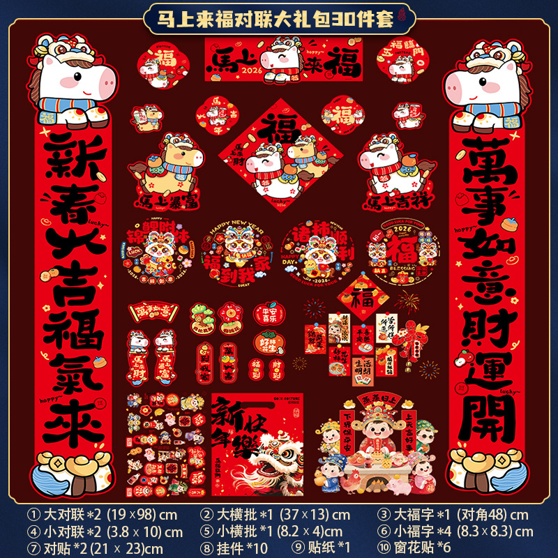 2026春节对联大礼包春联套装马年新年家用门联福字贴大门装饰门贴