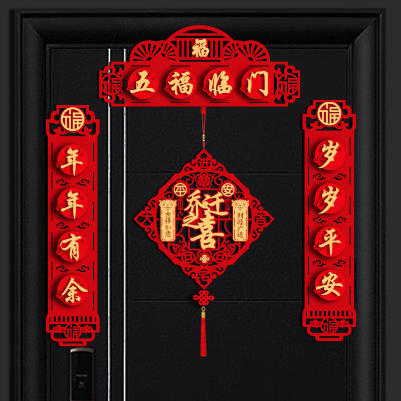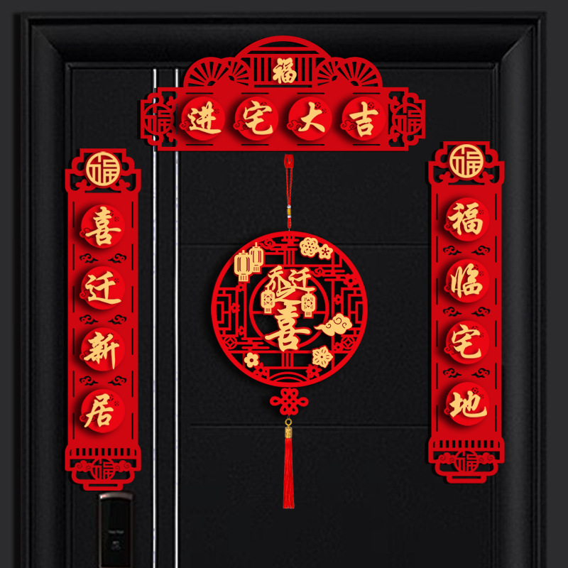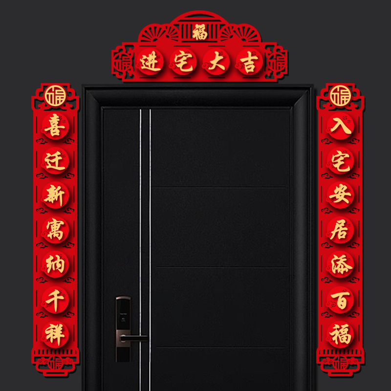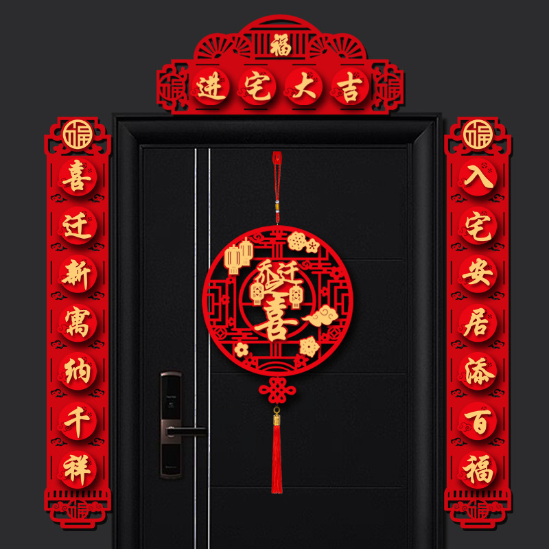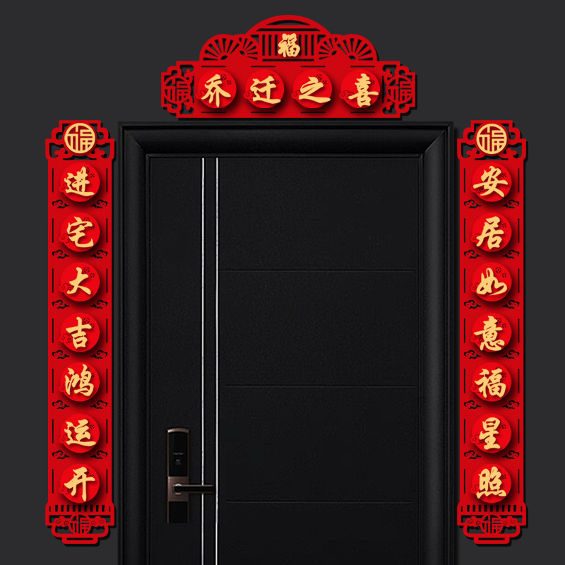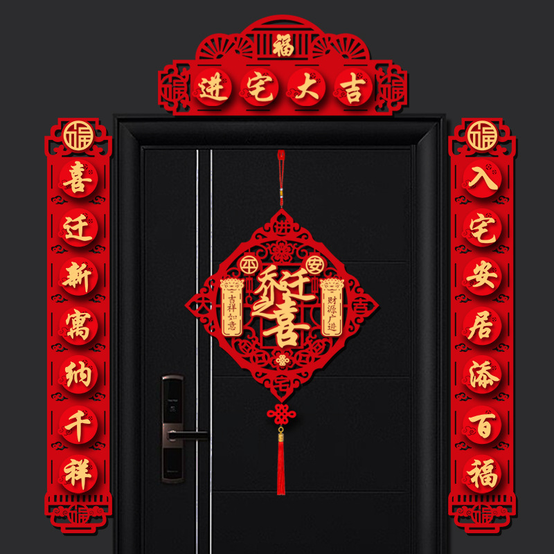 福字乔迁对联入宅新居入伙仪式搬家植绒立体门联新房大门福字挂件