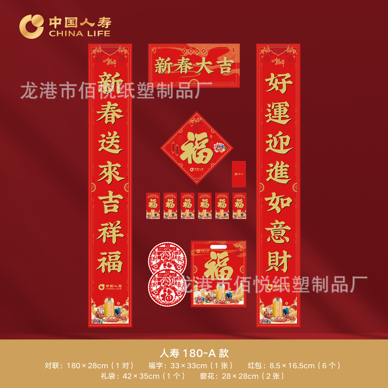 中国人寿保险对联春联2026马年福字红包6件套新年礼品新春对联