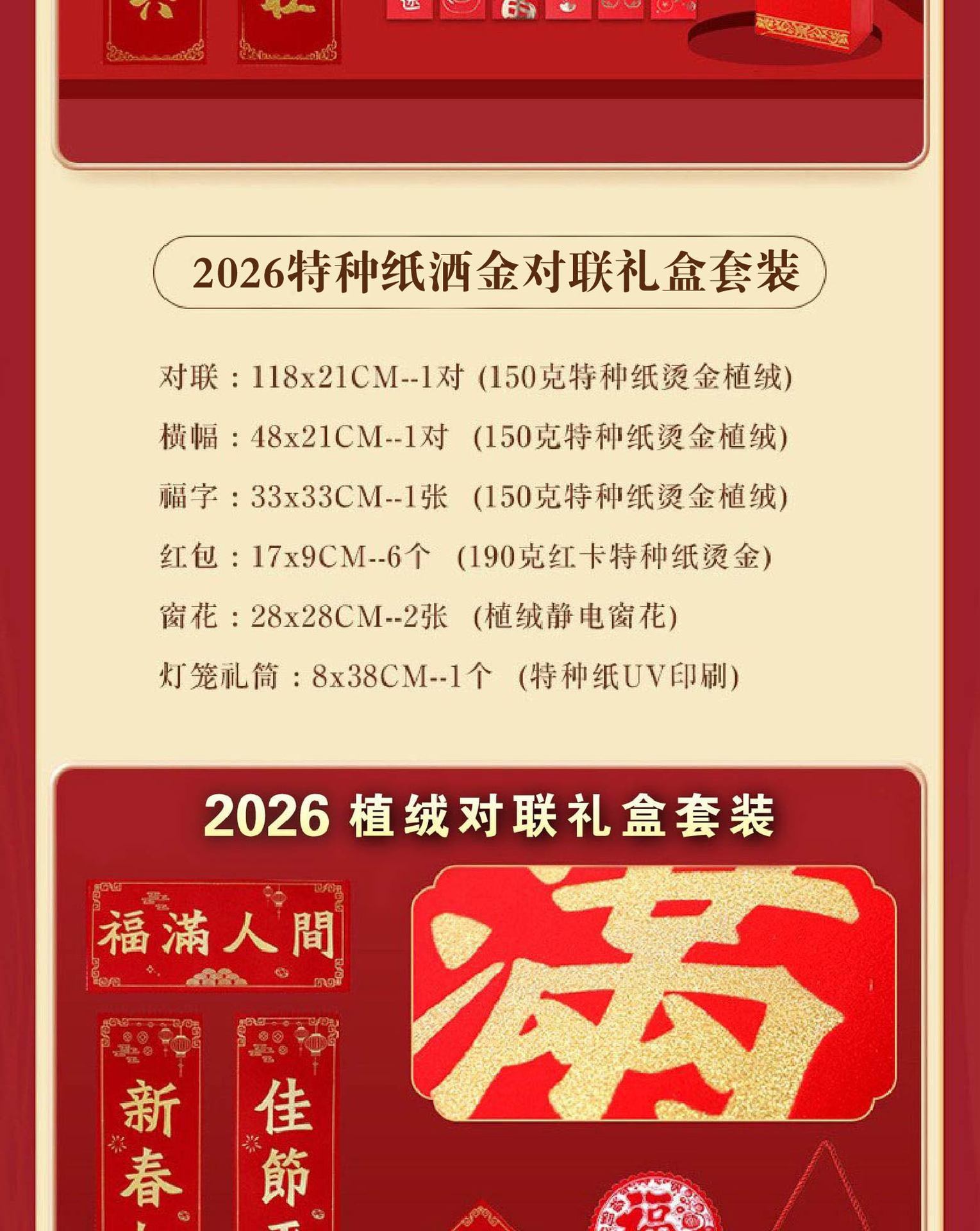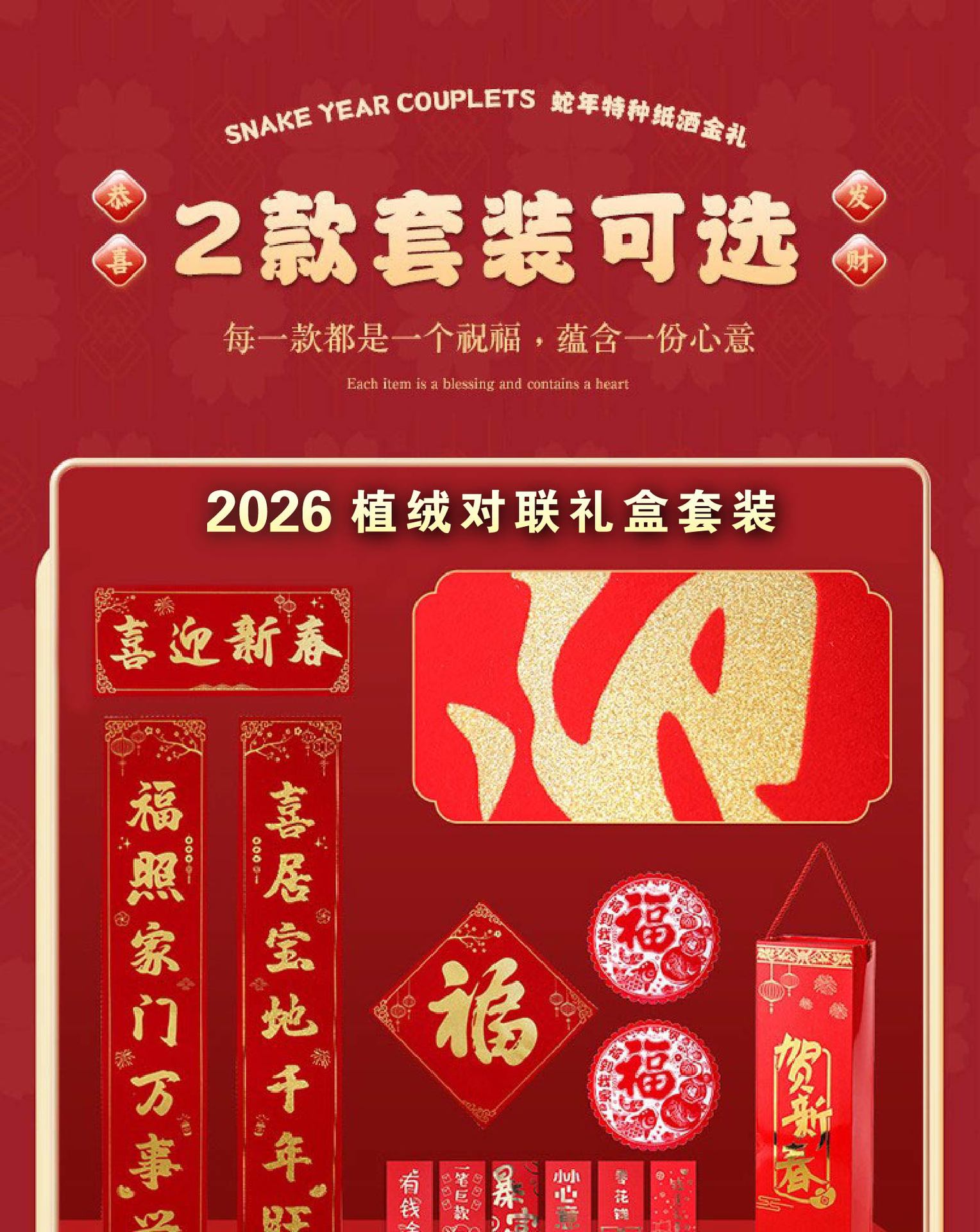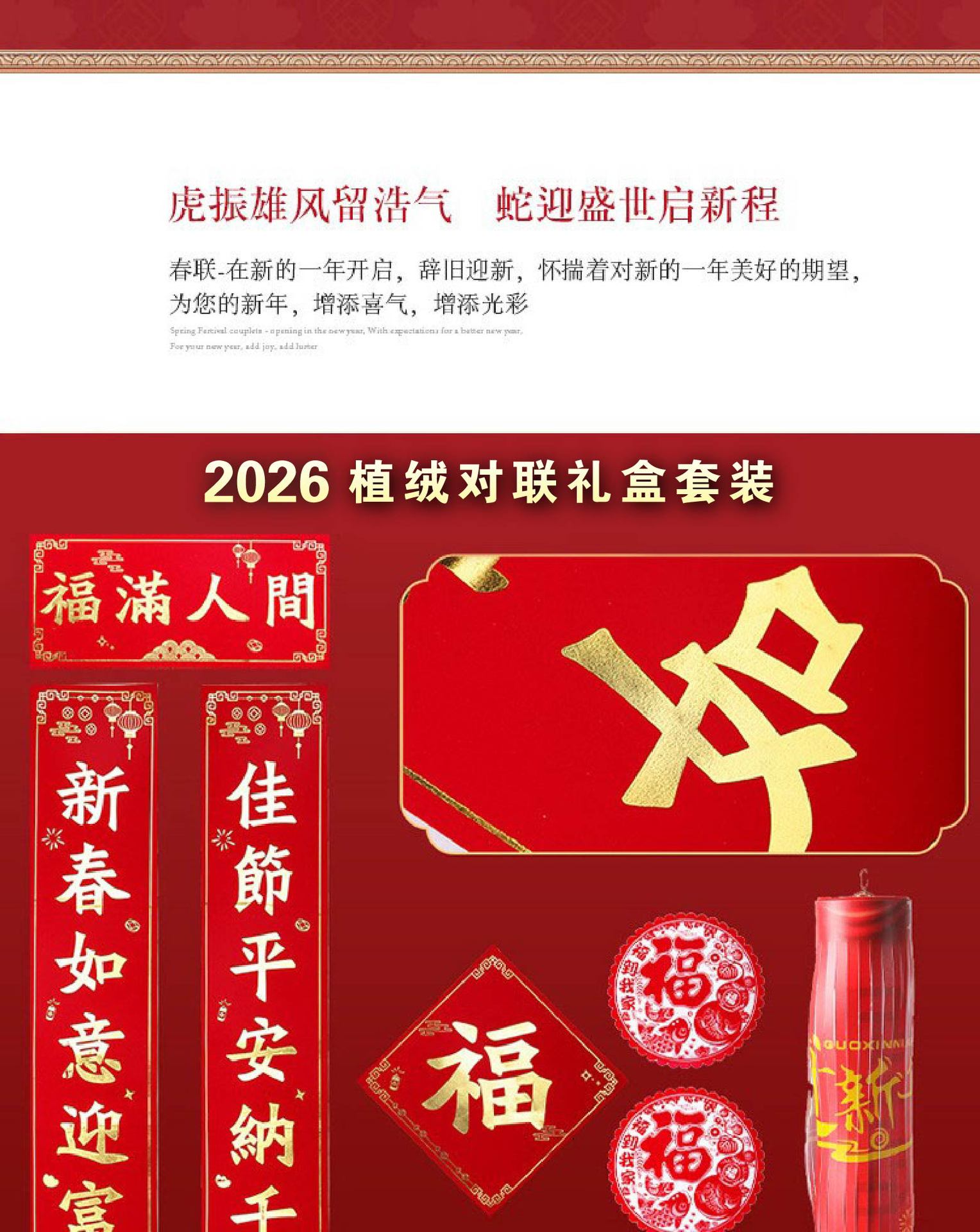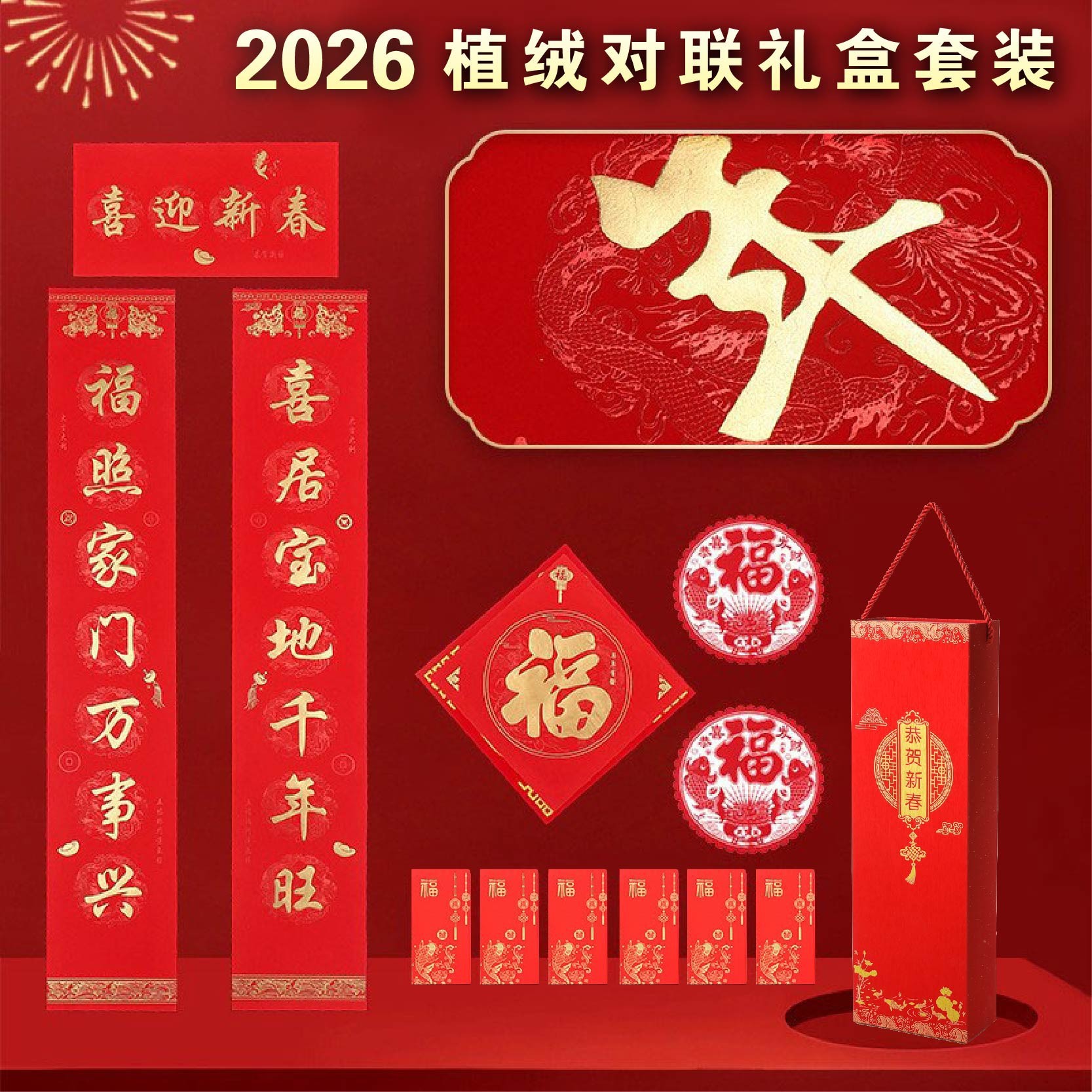 春联2026特种纸洒金对联大礼包春节保险广告公司礼盒定制logo