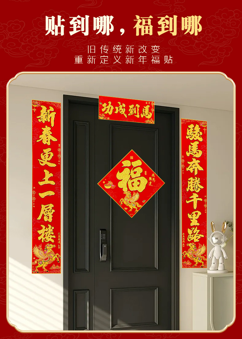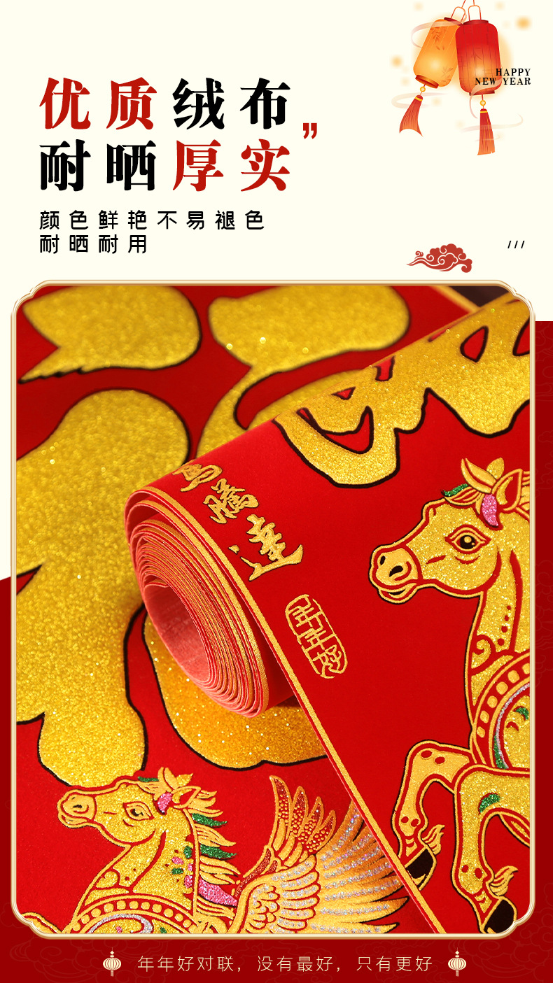 年年好马年对联门贴春节装饰新款绒布春联过年福子贴新年福字批发