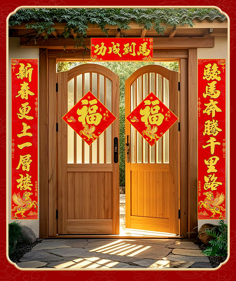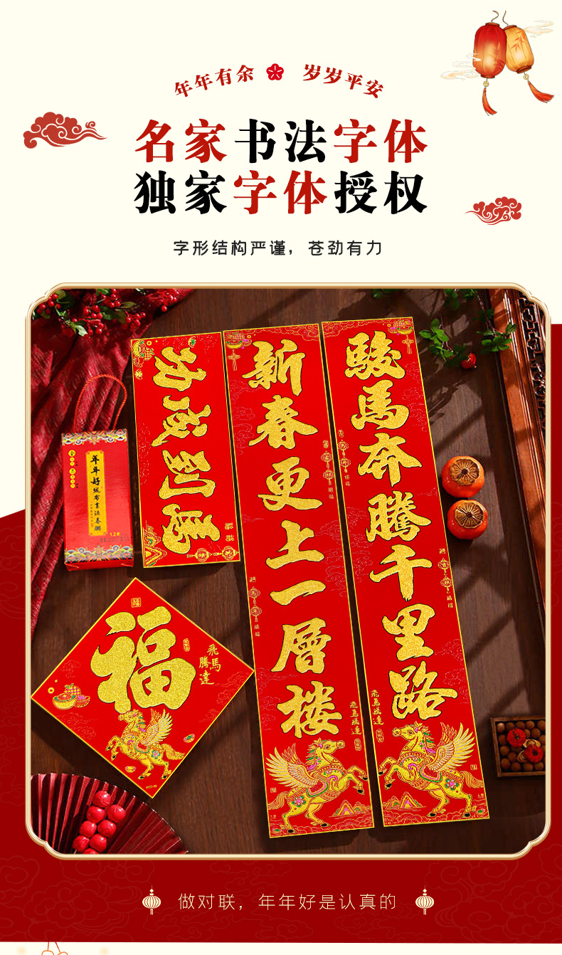 niannianhao year of horse couplet door sticker chinese new year decoration new flannel new year couplet new year fu zi stickers new year‘s fu character wholesale