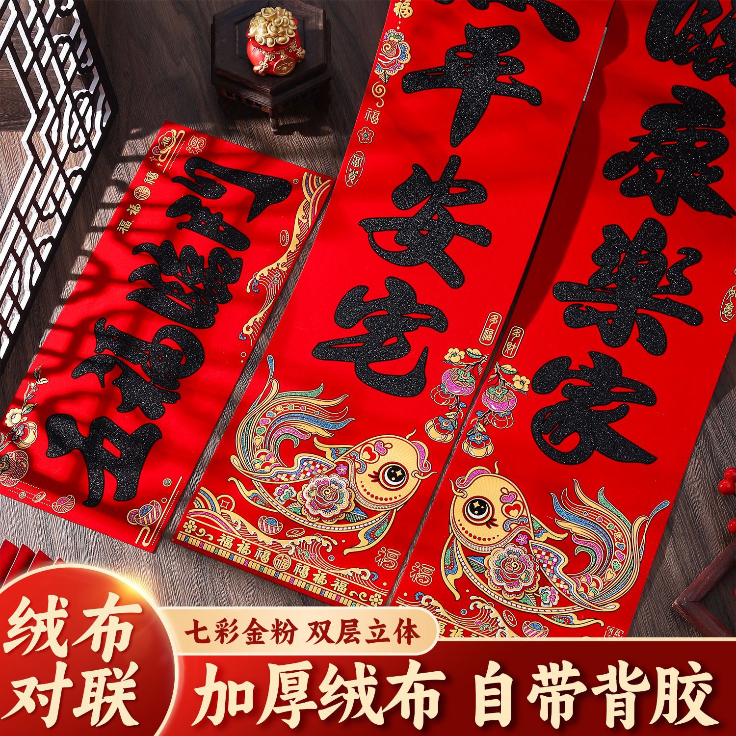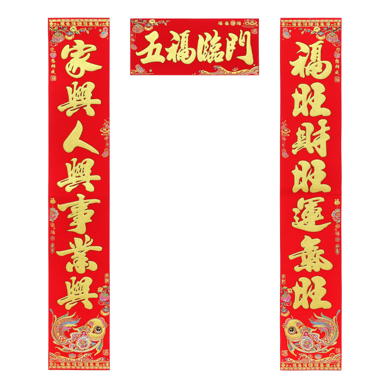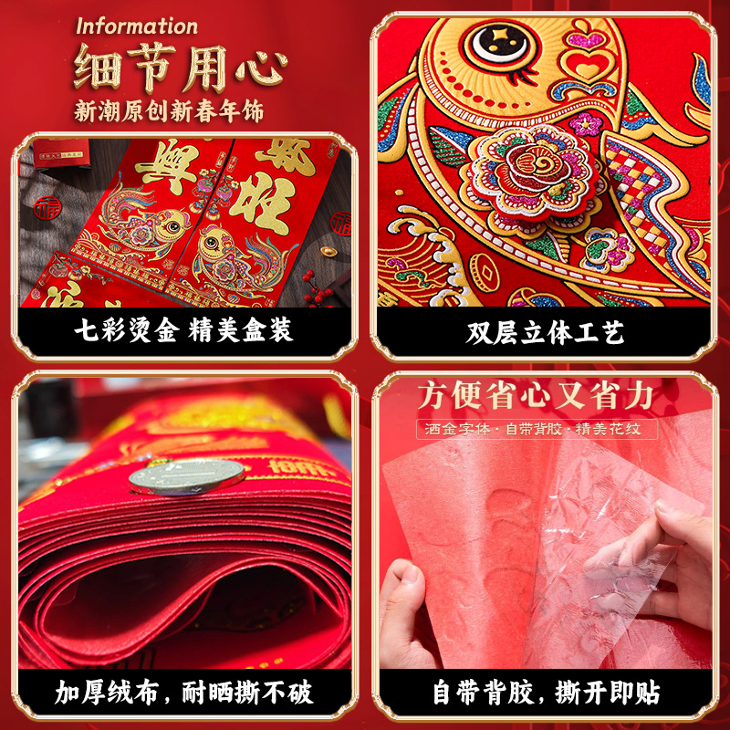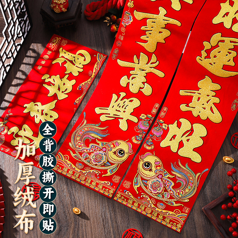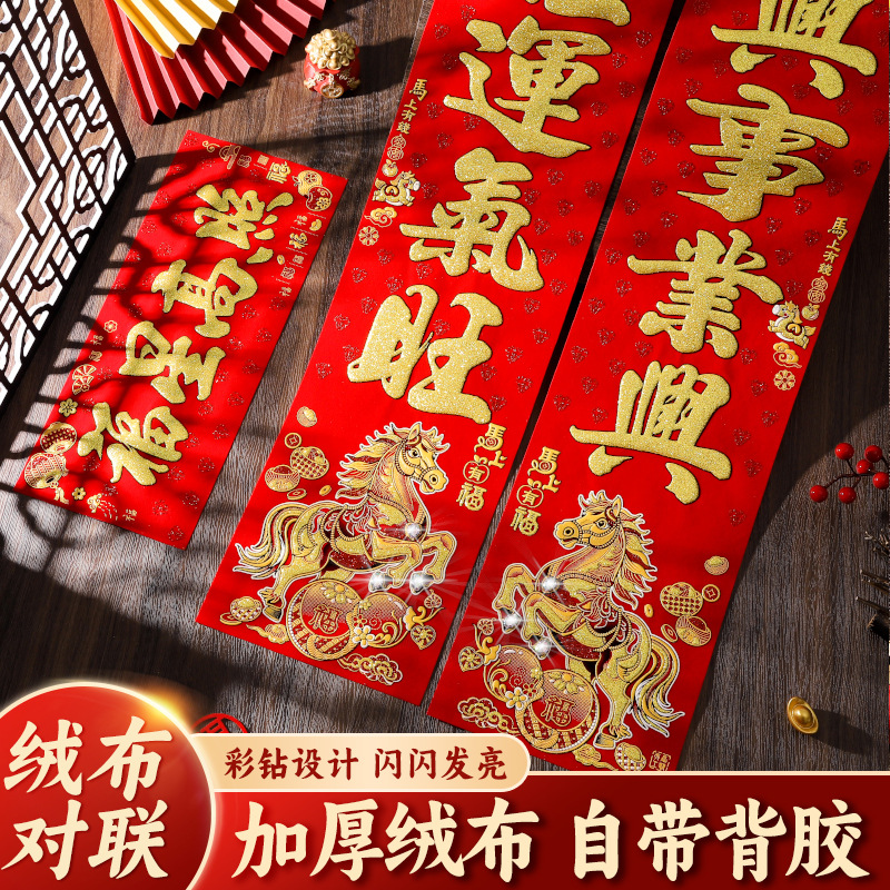 2026马年绒布对联全背胶门联新款春节新年春联批货植绒布新春批发