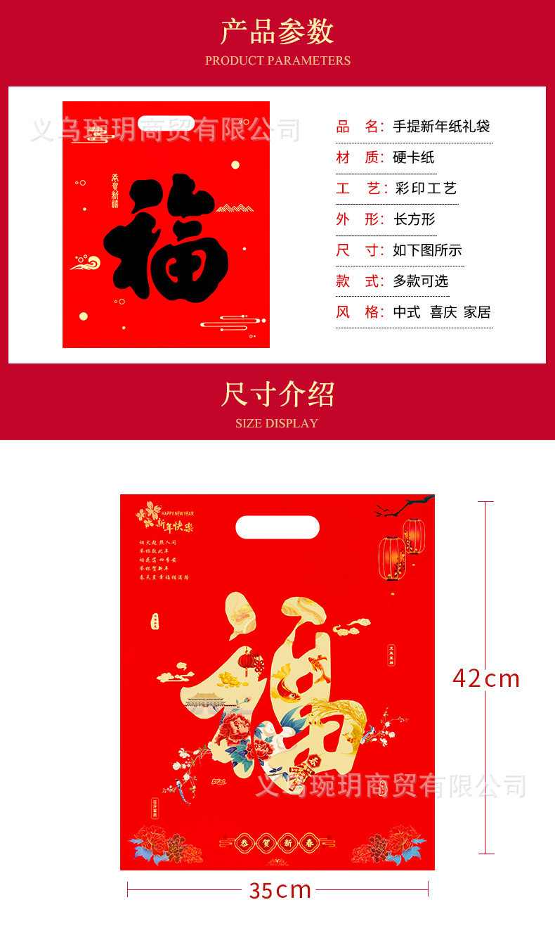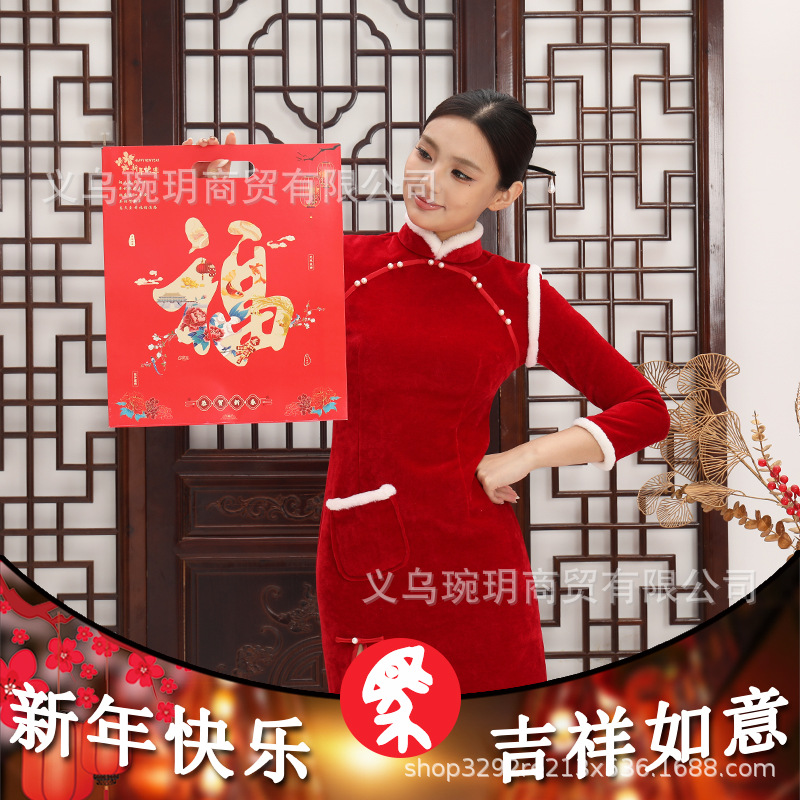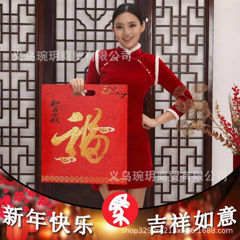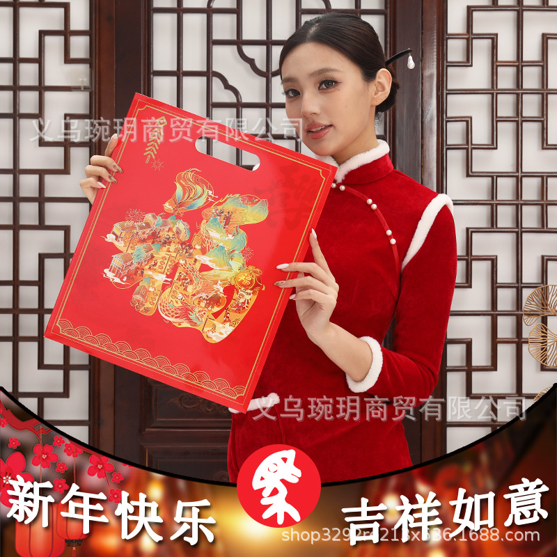 2026新年用品对联大礼包春联包装礼品袋子印刷手提硬卡纸礼袋批发