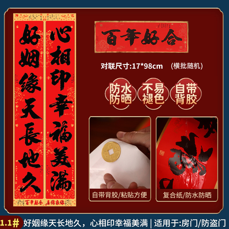 结婚对联男方大门喜字喜联婚礼婚庆用品大全女方装饰布置出嫁婚房