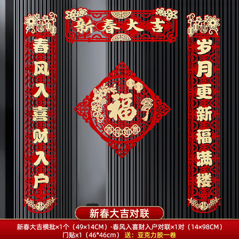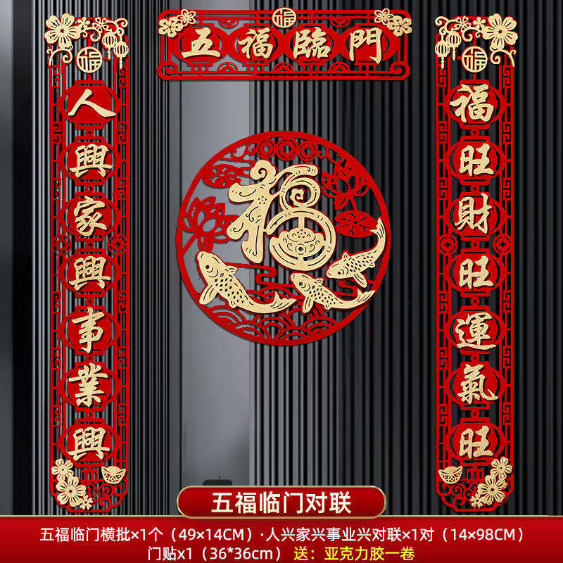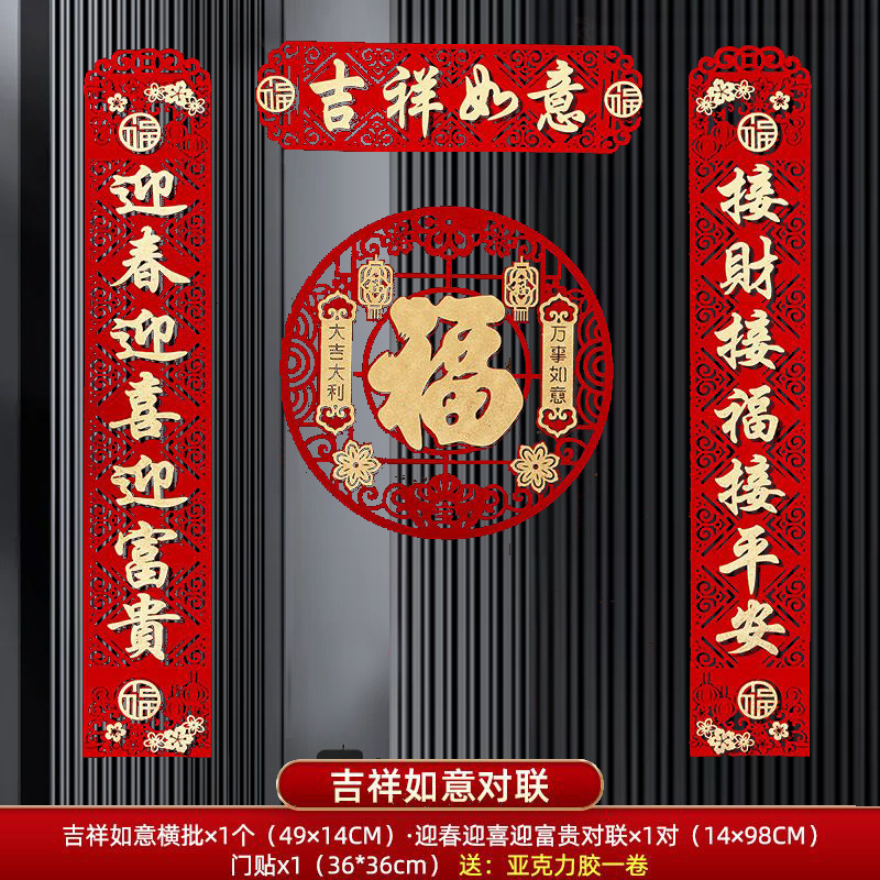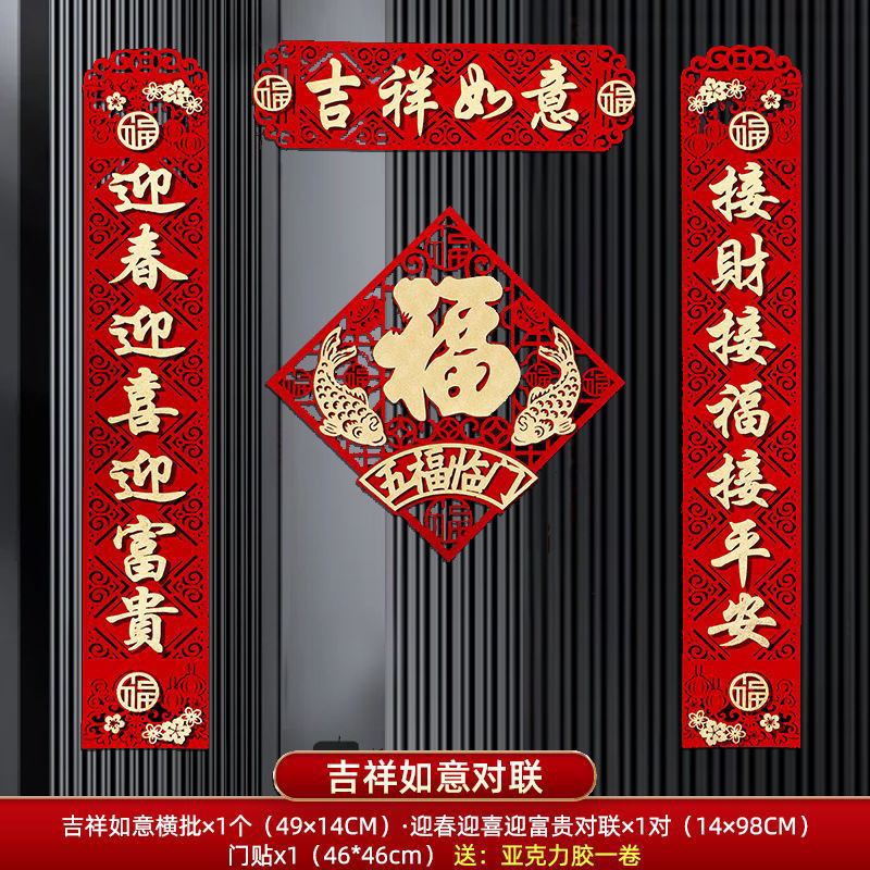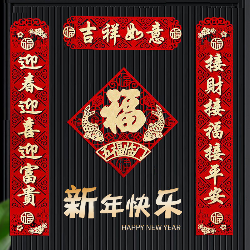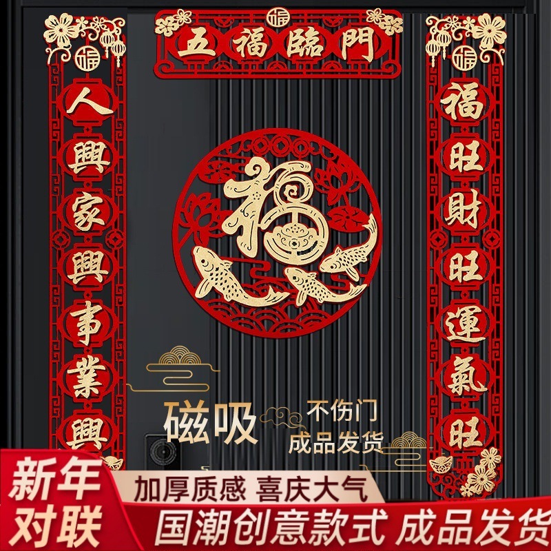 蛇年立体新年对联春联2025年新款磁吸过年入户门福字门贴绒布装饰
