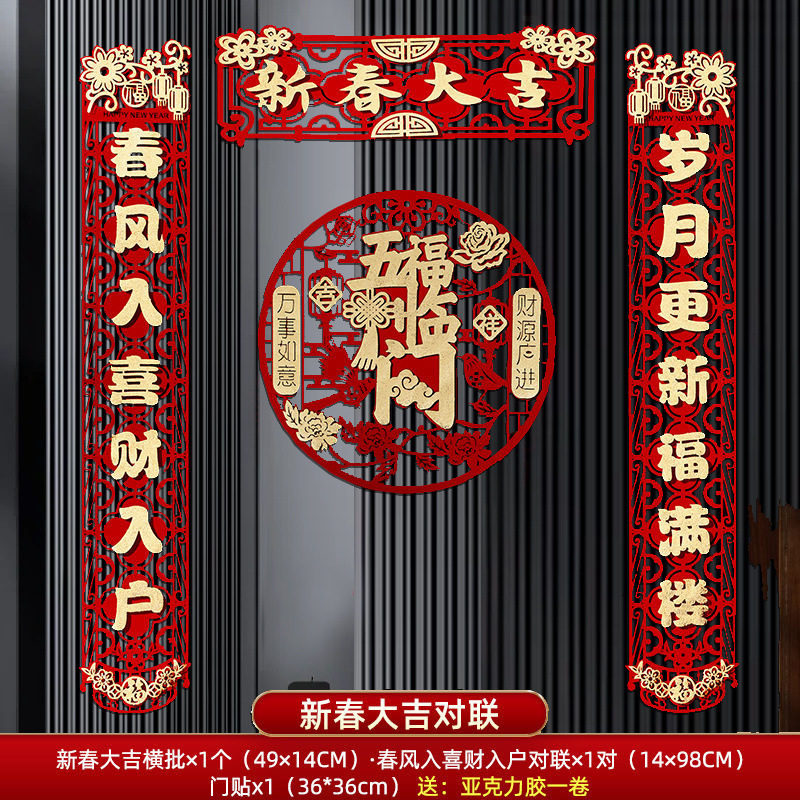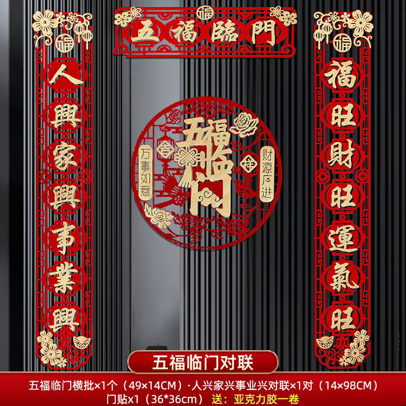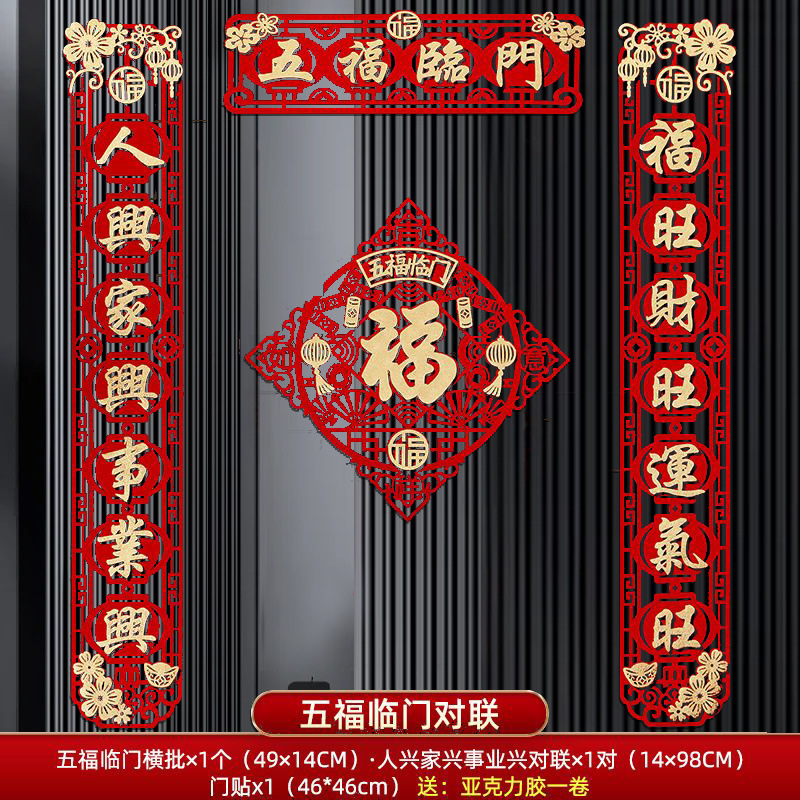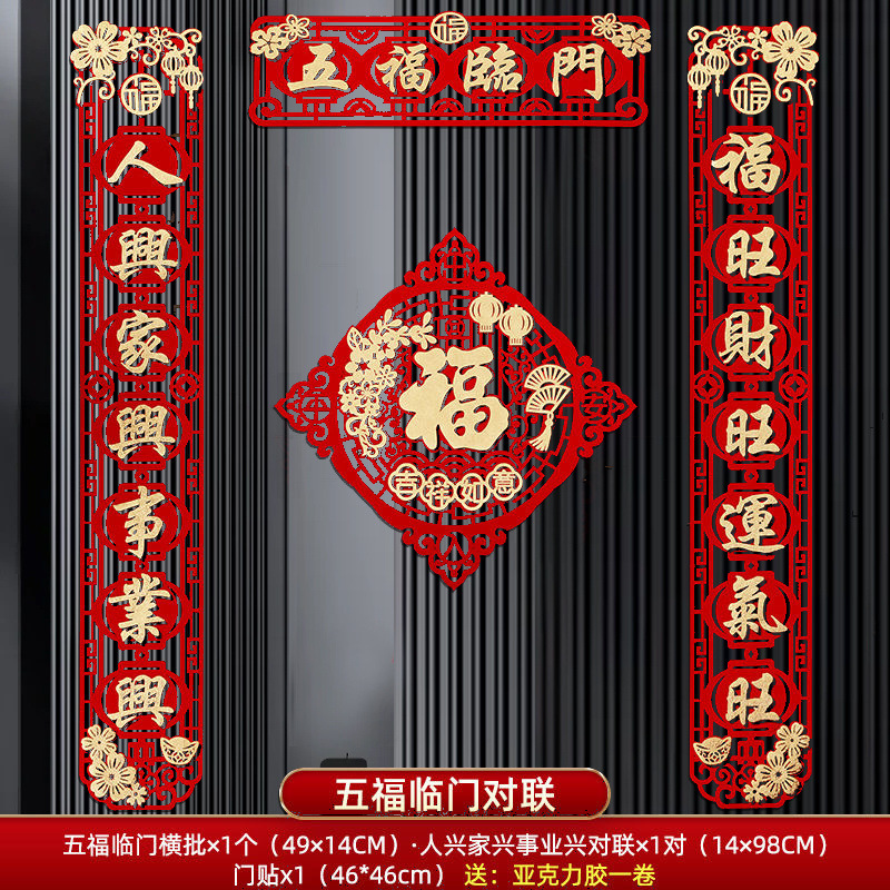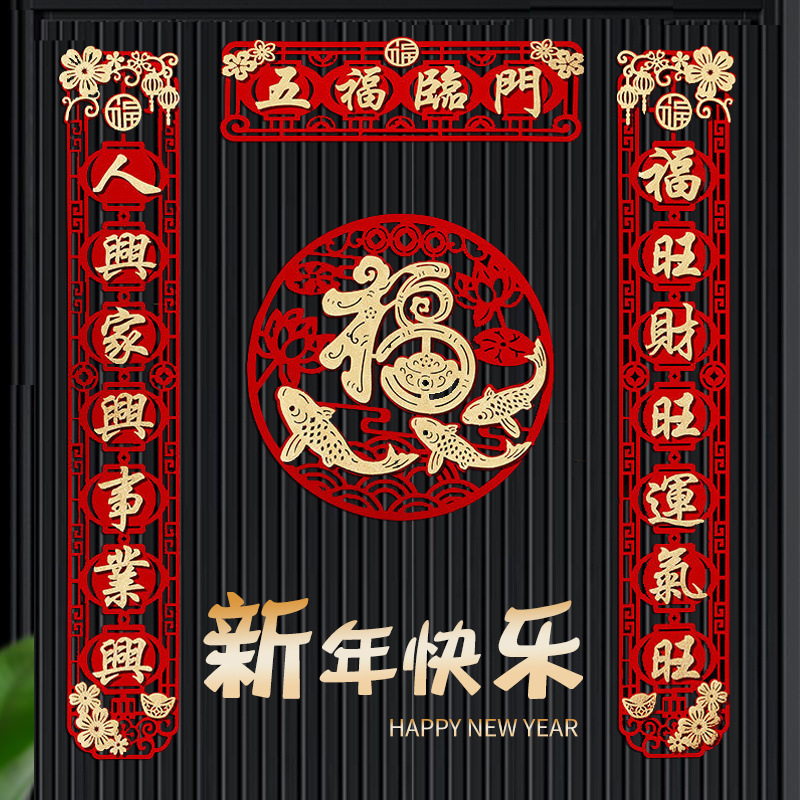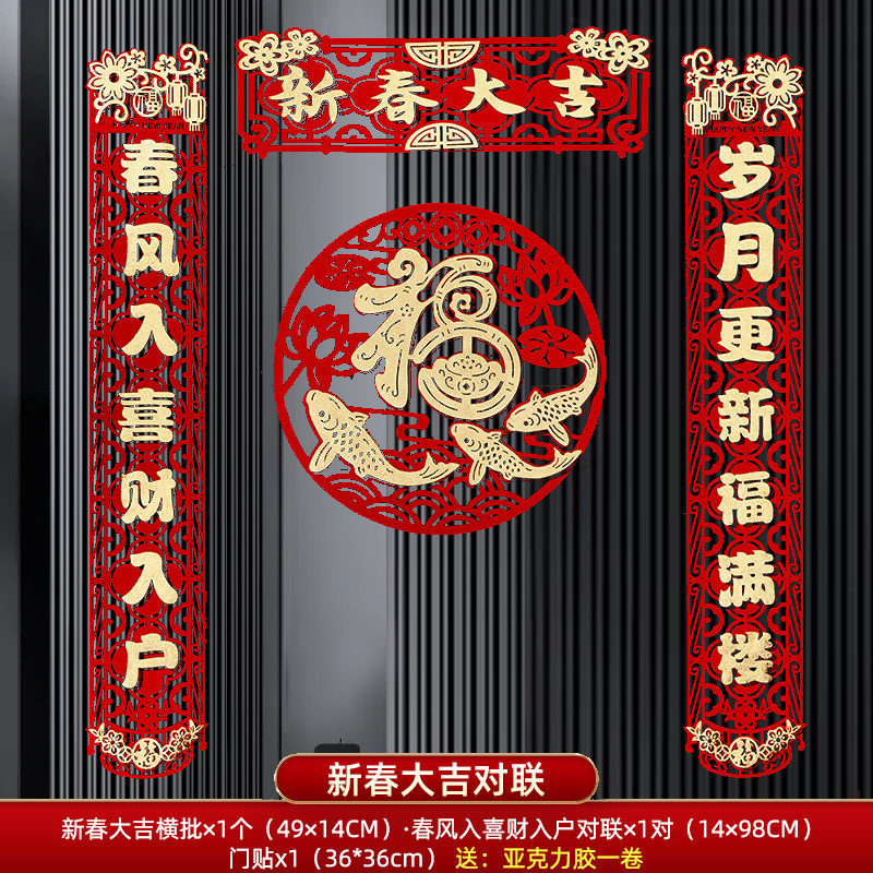 蛇年立体新年对联春联2025年新款磁吸过年入户门福字门贴绒布装饰