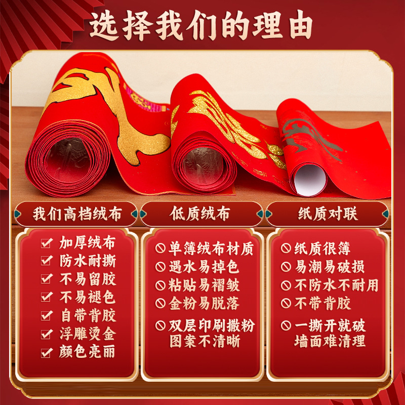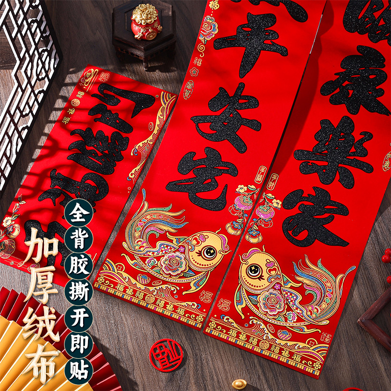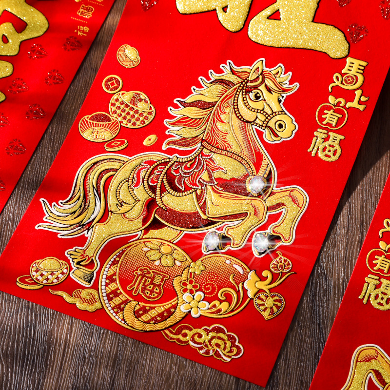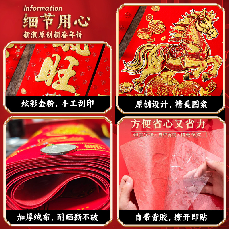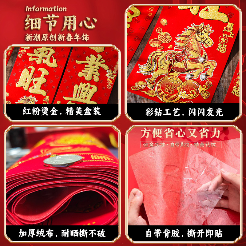 马年新款带钻生肖绒布对联全背胶加厚植绒布春节新年春联批货批发