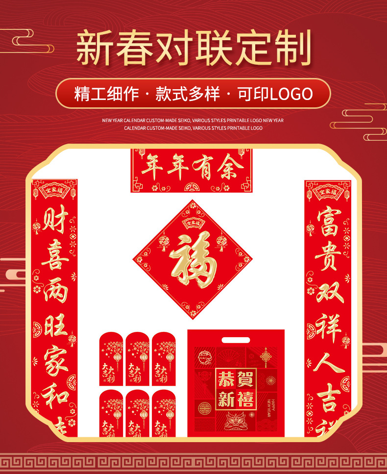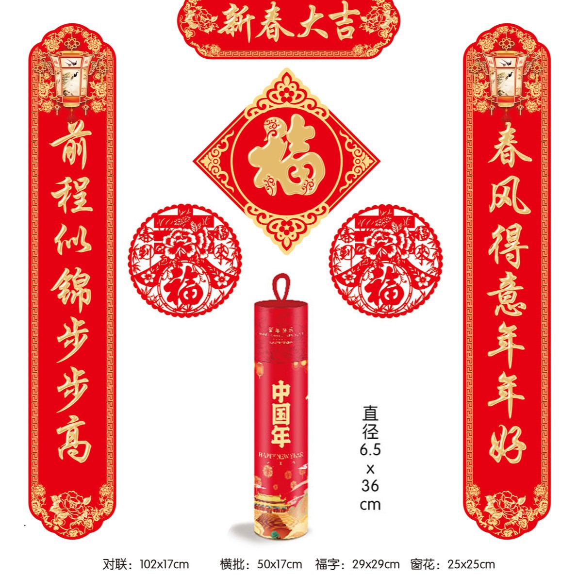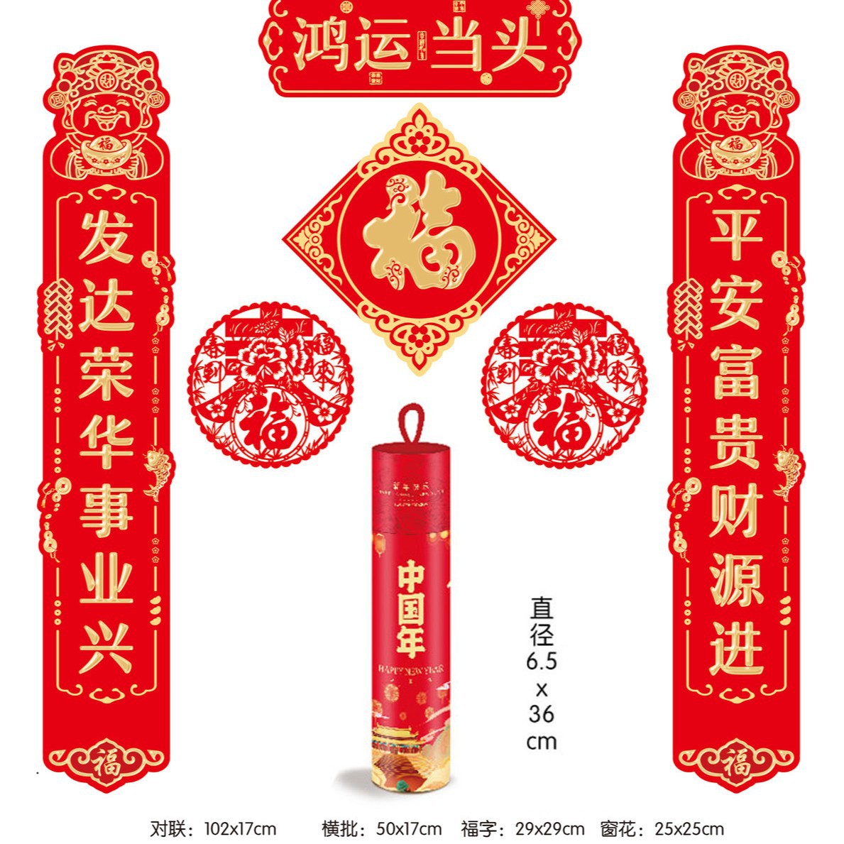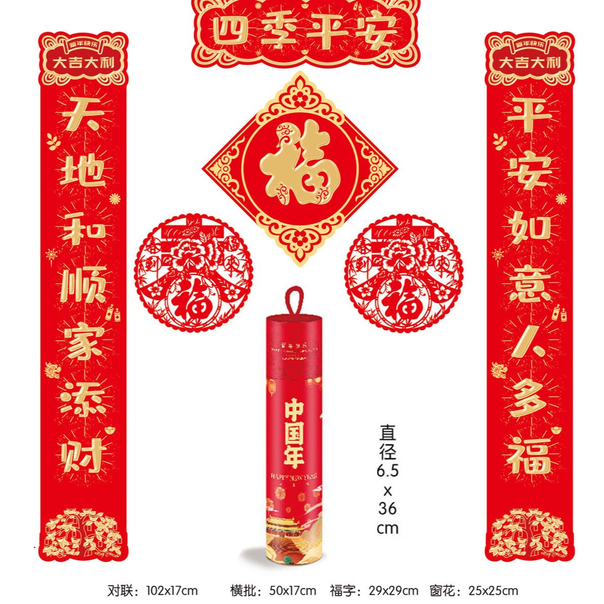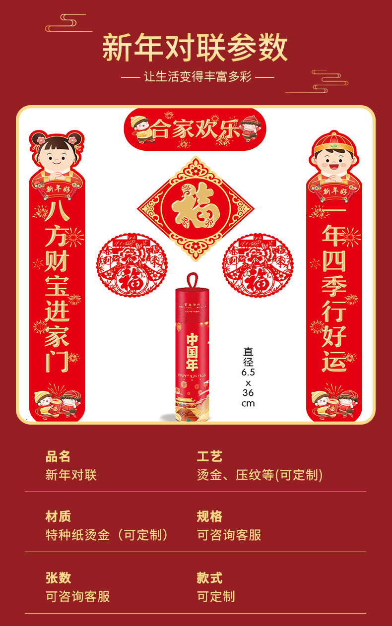 新春新居特种纸烫金对联大礼包批发异形触感烫金广告对联筒装制定