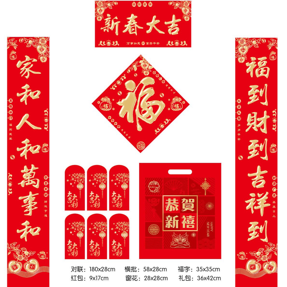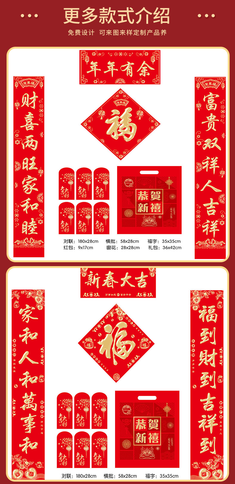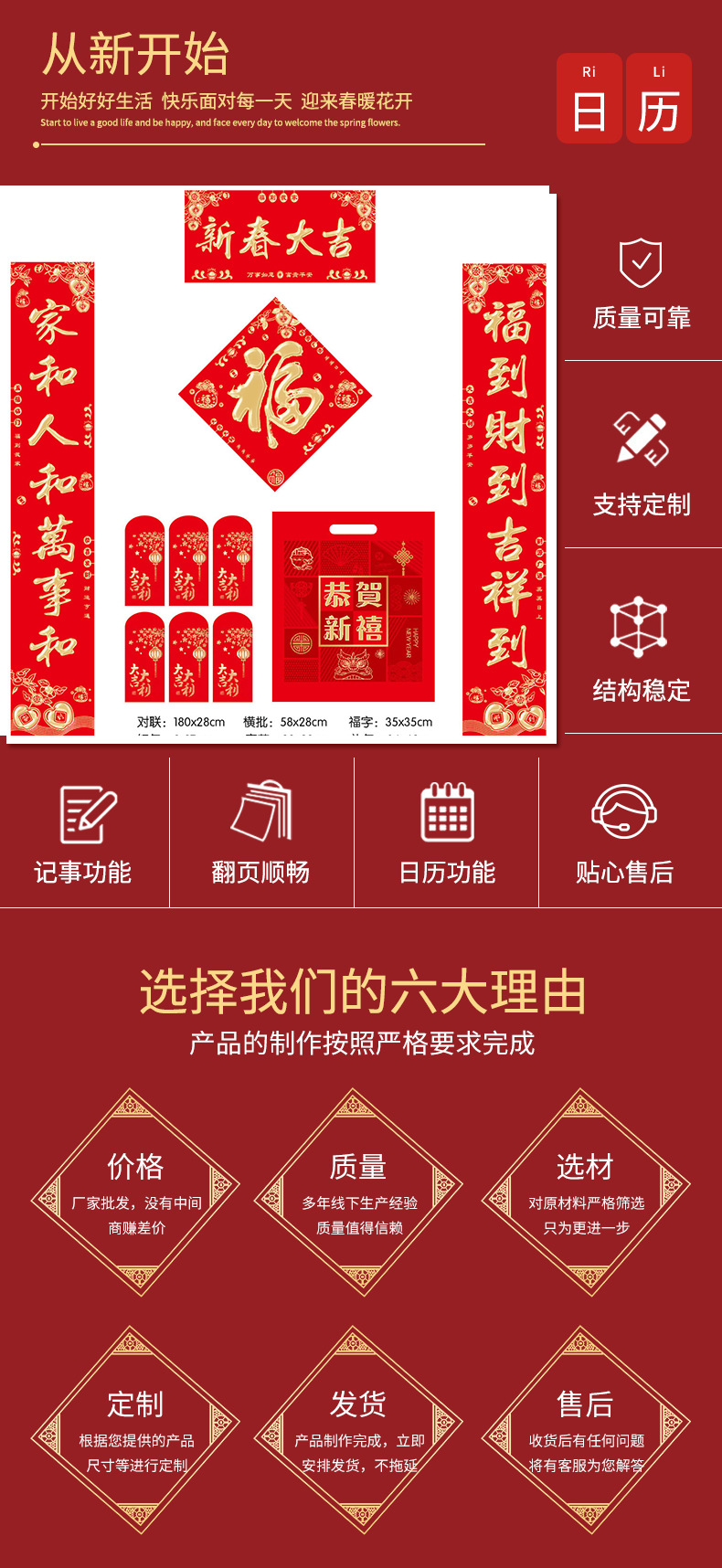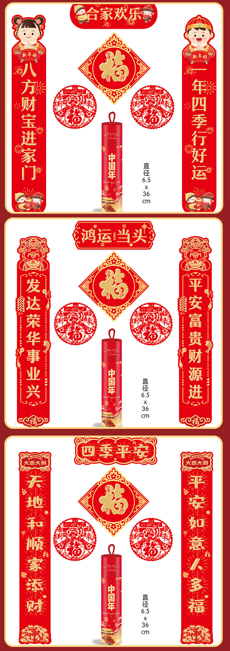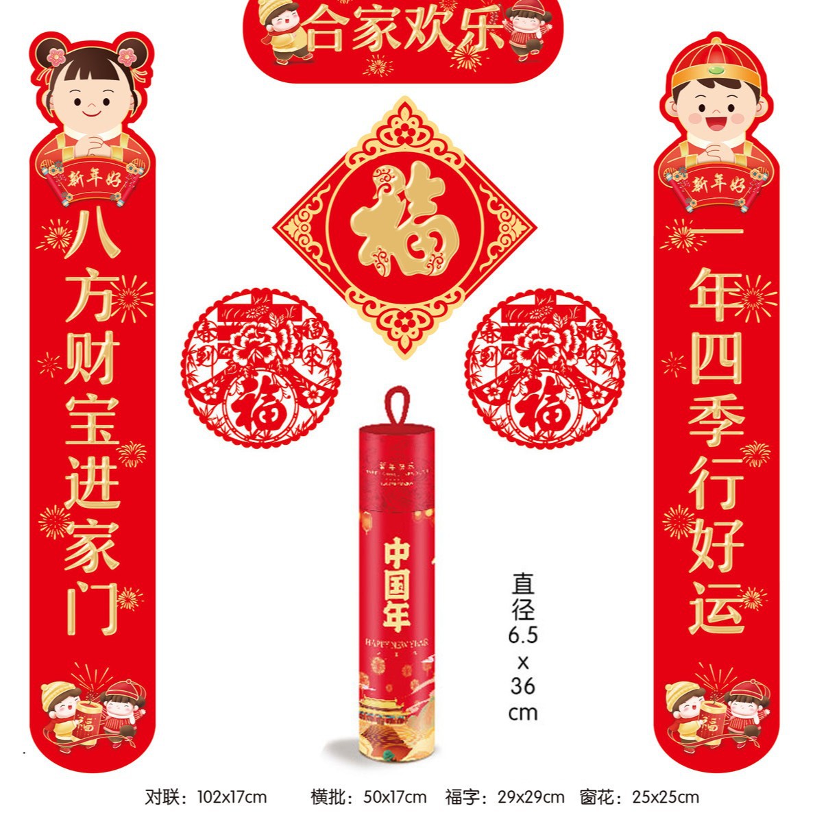 新春新居特种纸烫金对联大礼包批发异形触感烫金广告对联筒装制定