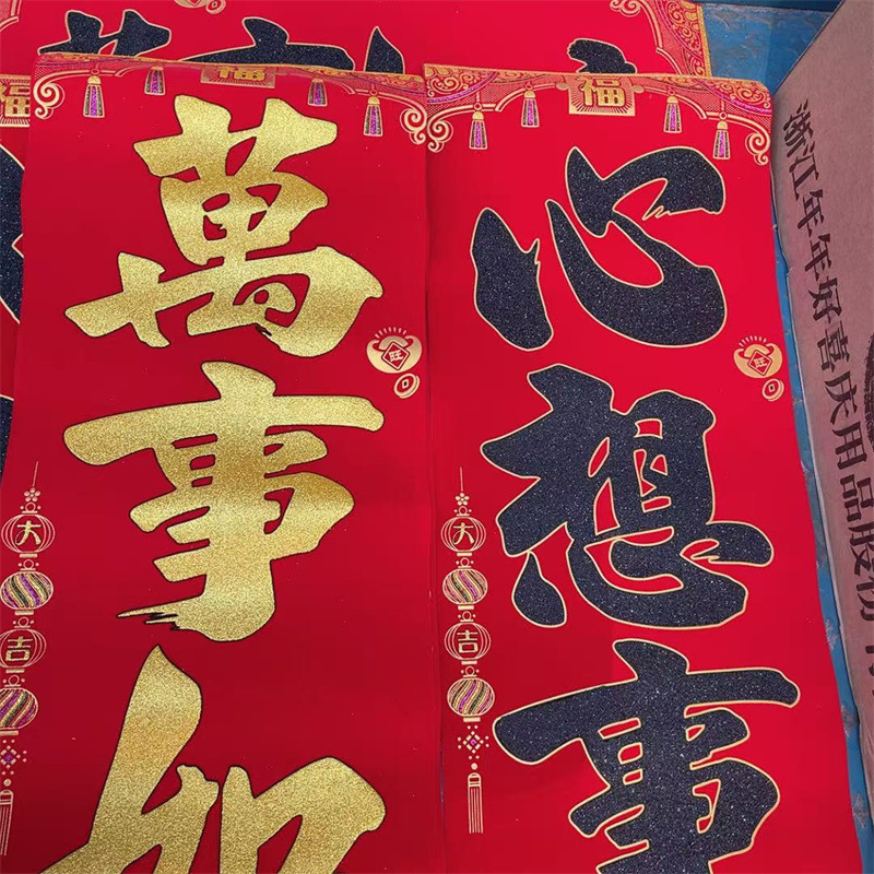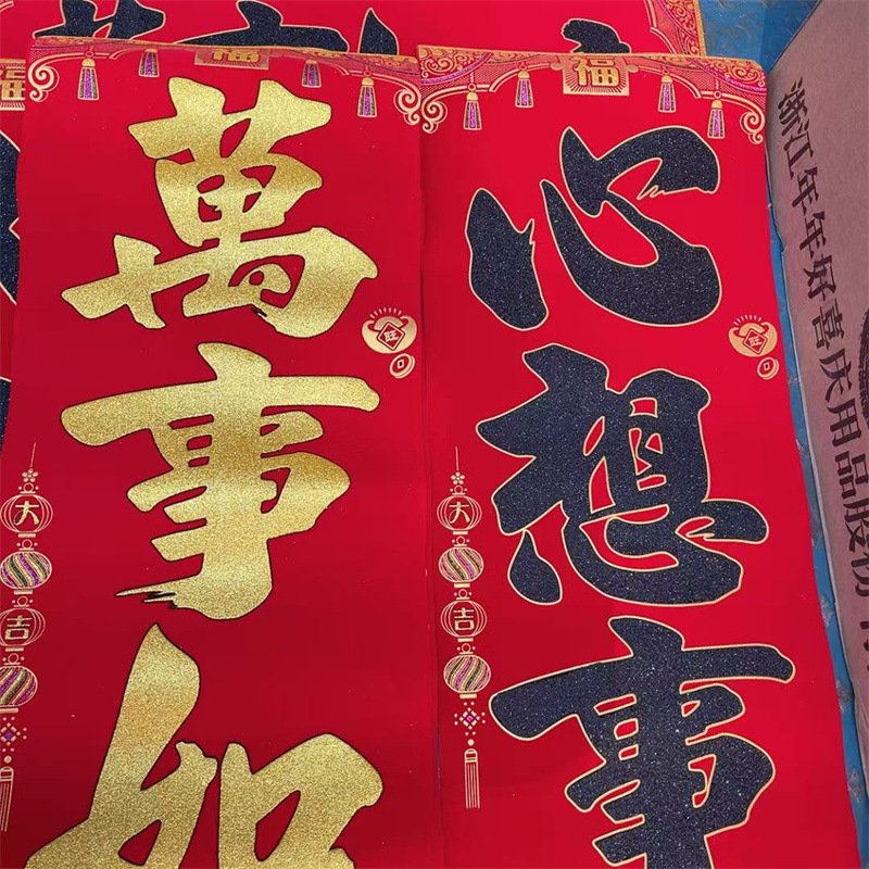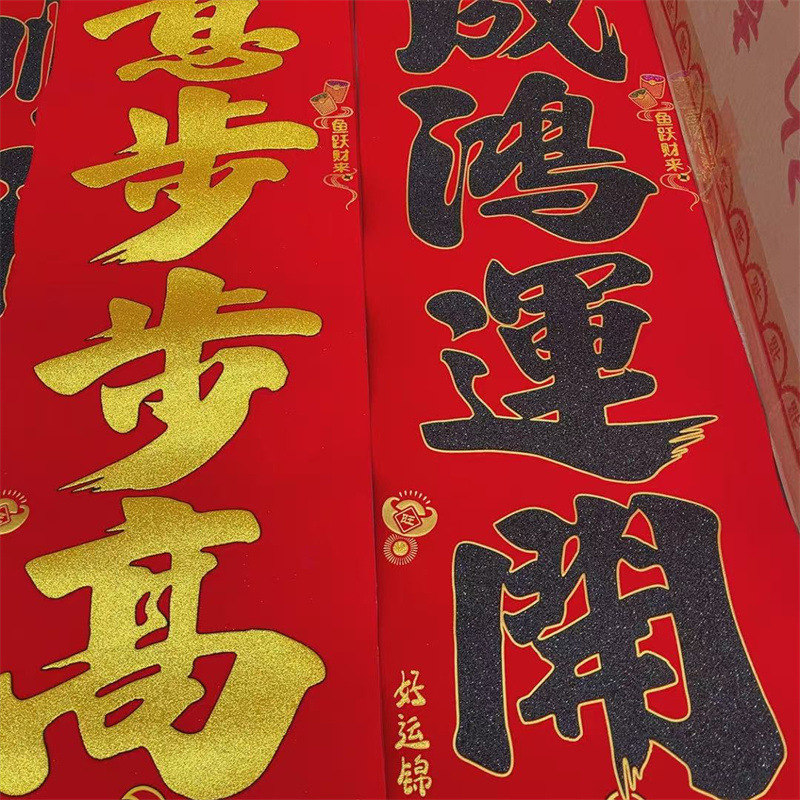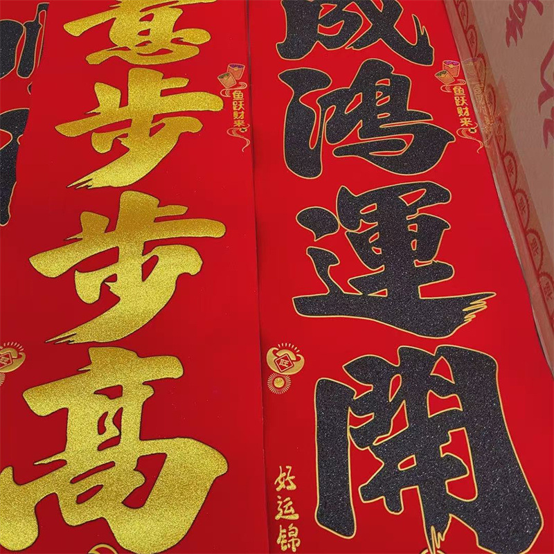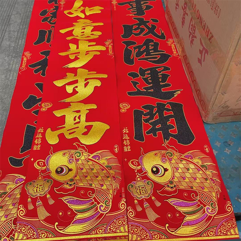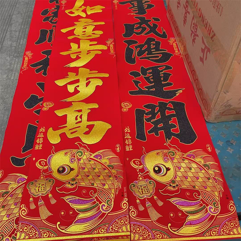 hongnianwang flannel couplet full adhesive self-adhesive spray gold powder black powder foam boxed fish new year couplet spring festival with adhesive tape