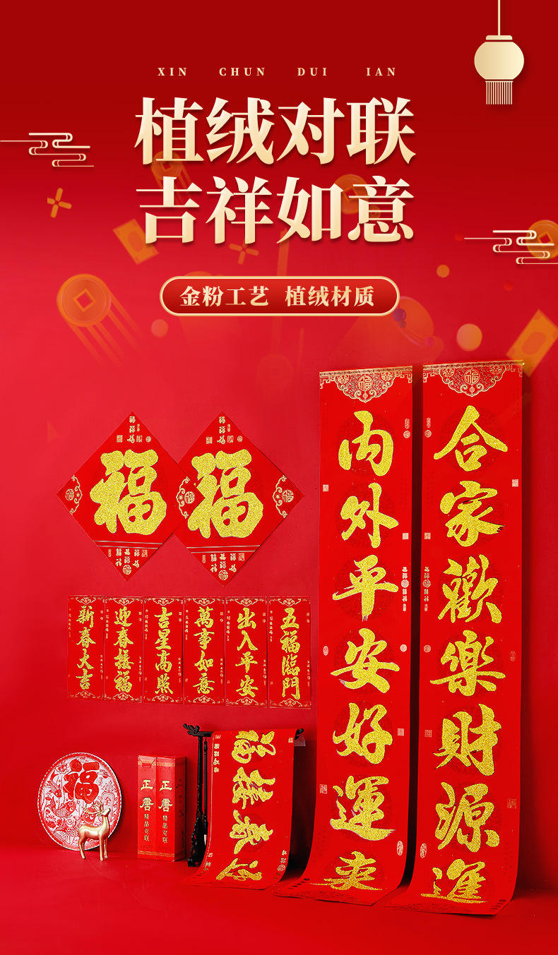 spring couplets 2026 new year‘s new home flocking gilding door decorations arrangement door sticker gatepost couplet new year goods