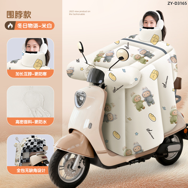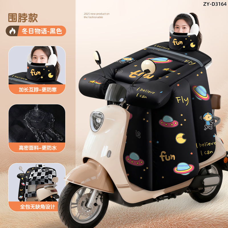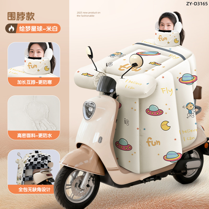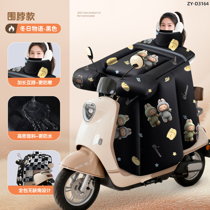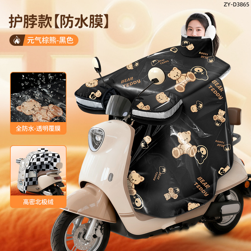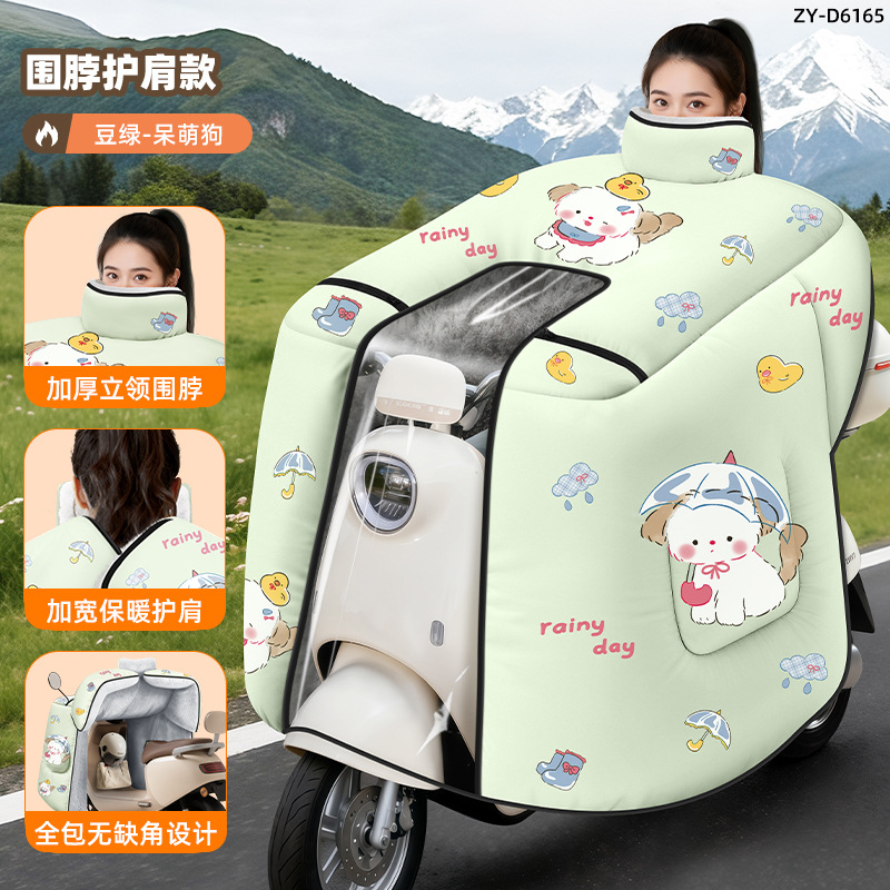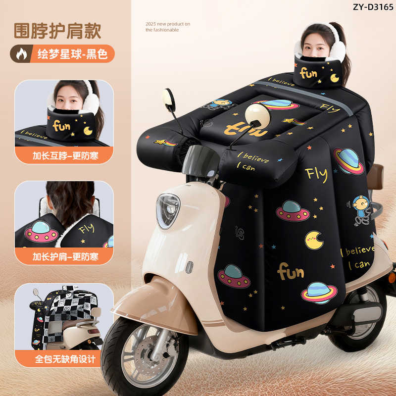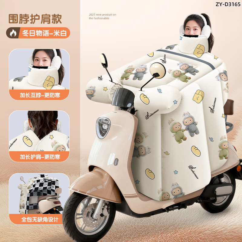 防风电动车冬季新款挡风被正雨法兰绒围脖护肩加大加厚电瓶摩托车