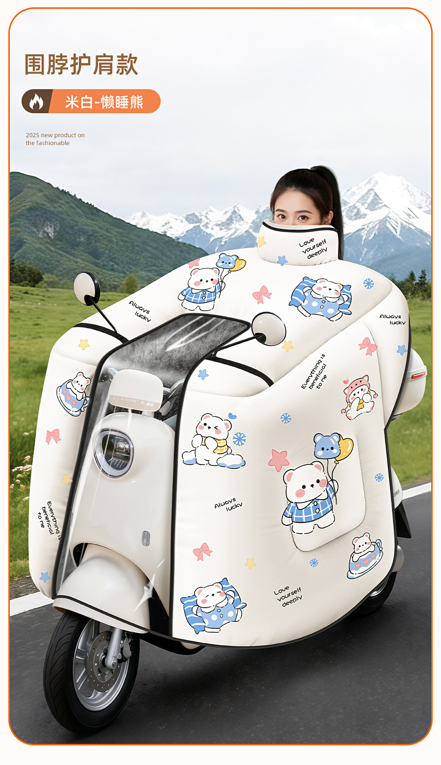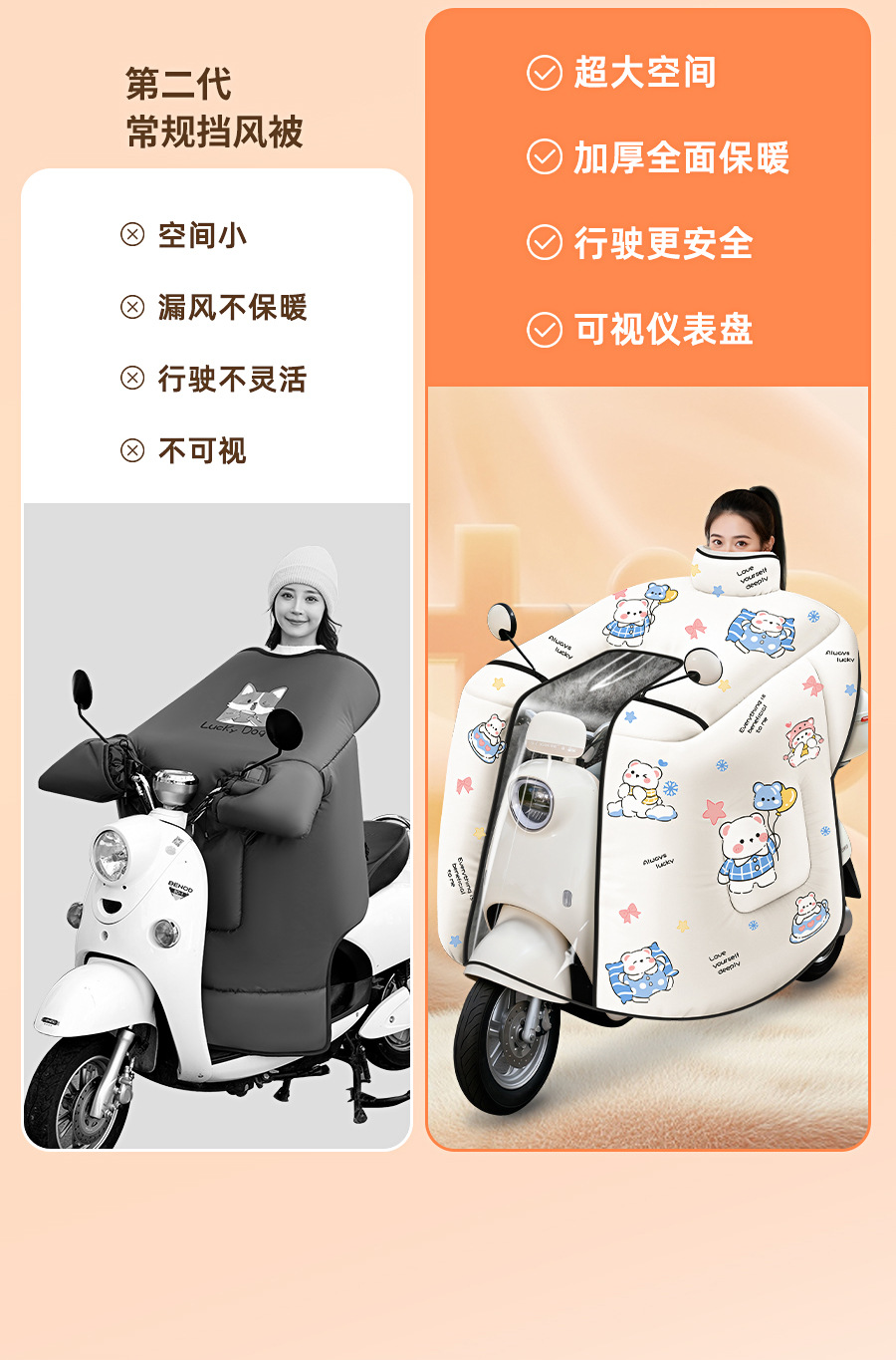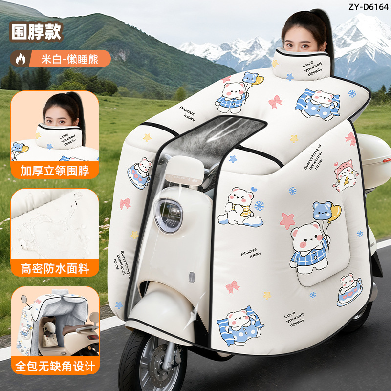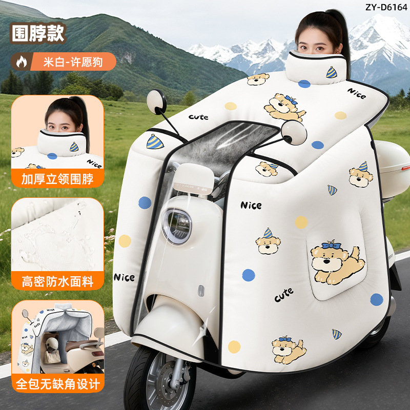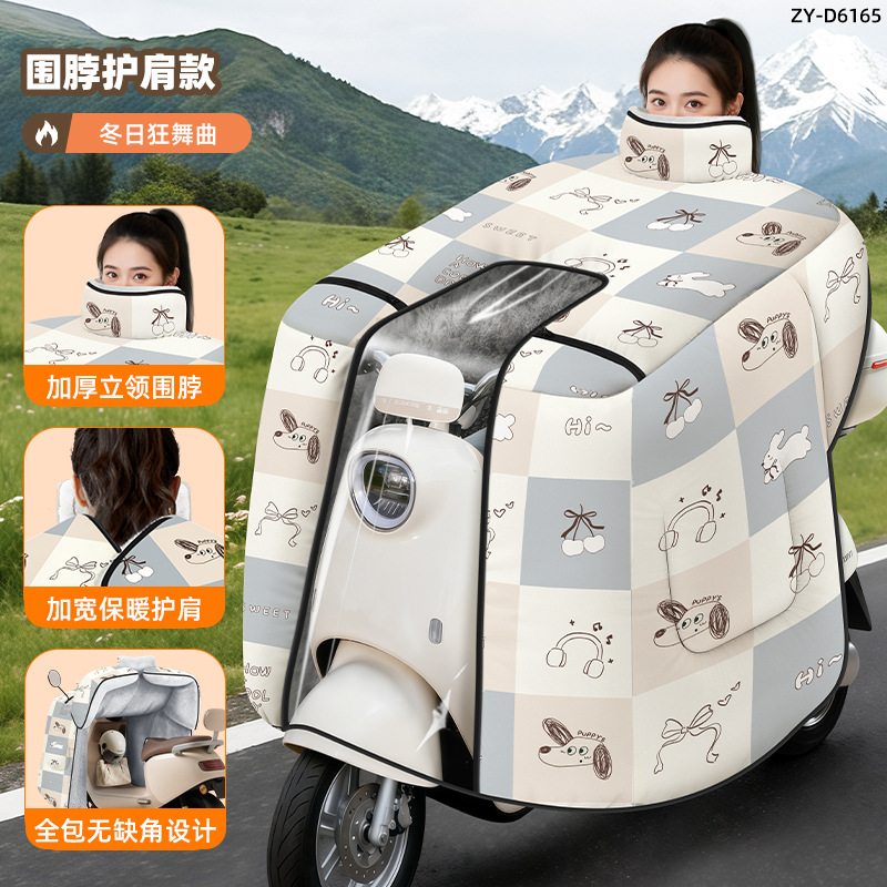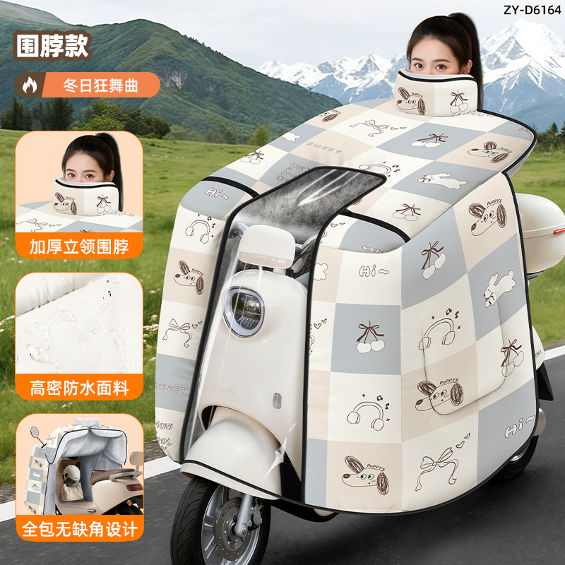 防风电动车冬季新款挡风被正雨法兰绒围脖护肩加大加厚电瓶摩托车