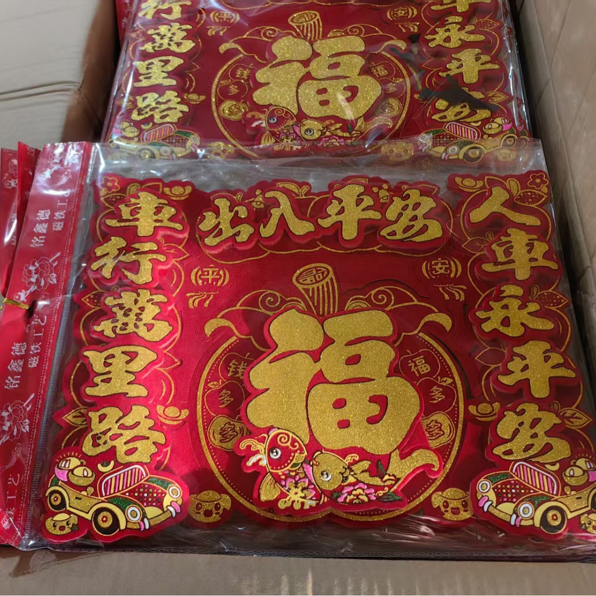 汽车对联2026新款植绒磁吸车对联磁铁车贴福字春节用品新年车饰批