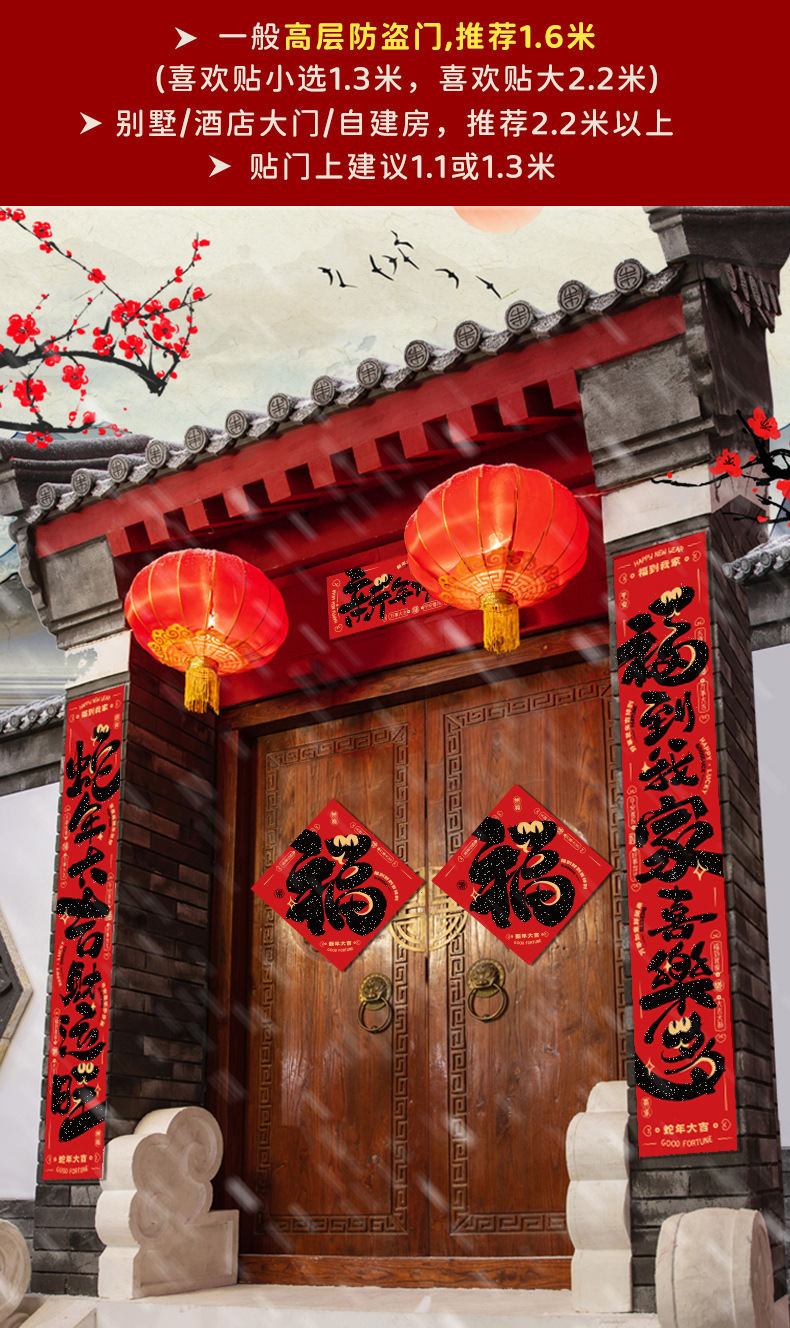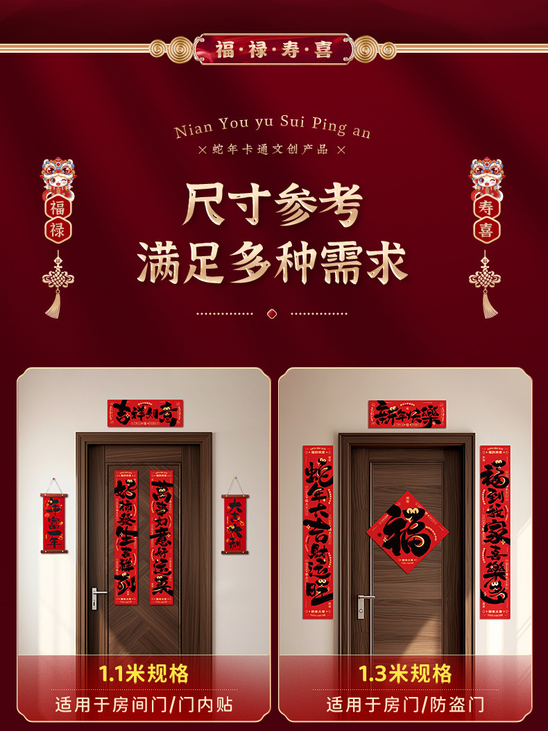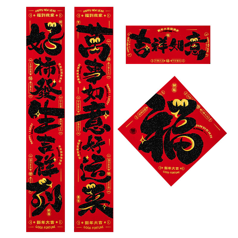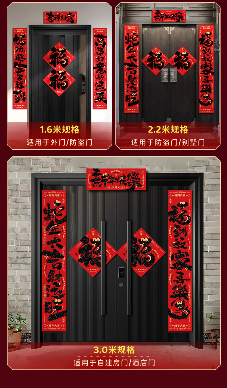 新款蛇年书法对联2025春节过年福字家用防水年货门贴装饰布置用品